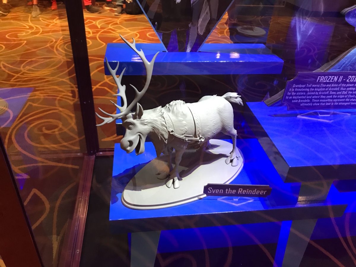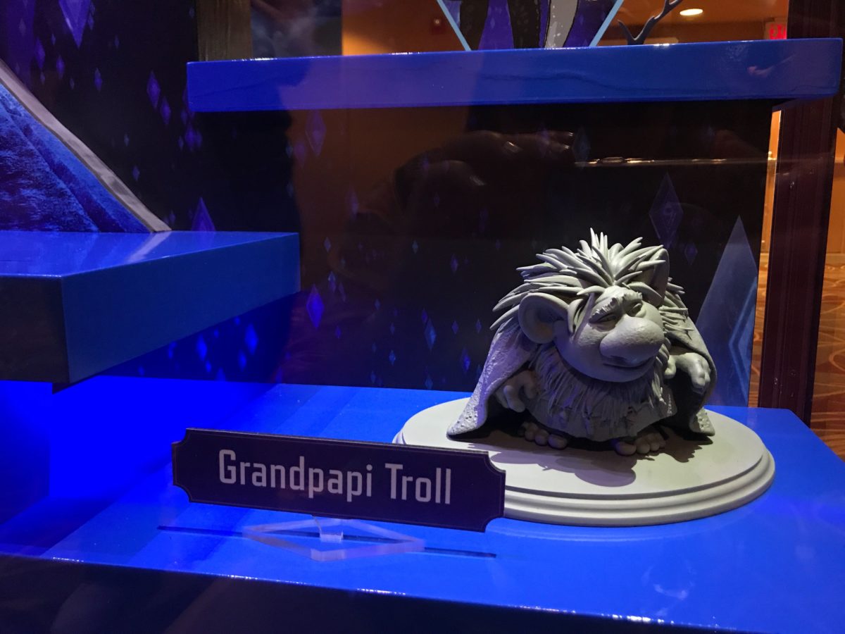 While live-action films usually get costume displays here, since it’s a computer animated film, we get a look at these cool character maquettes, which allow animators to visualize and test scenes with characters. They’re also used as reference during character design. Here we see Grandpapi Troll.