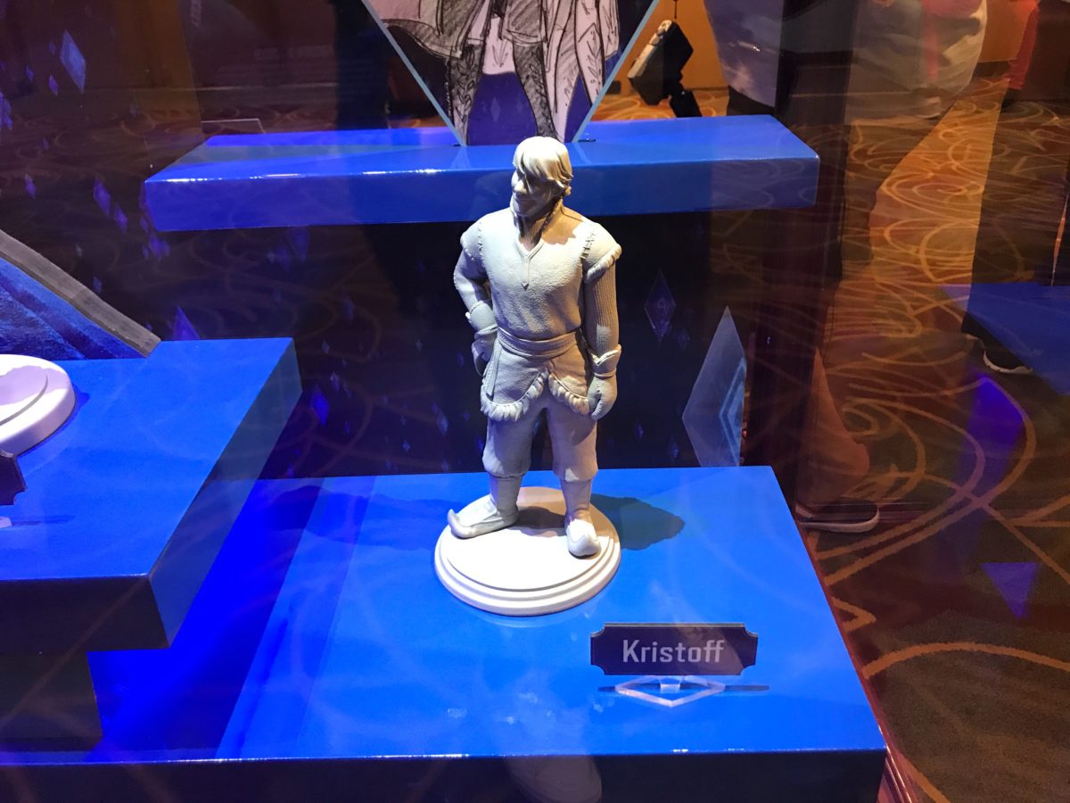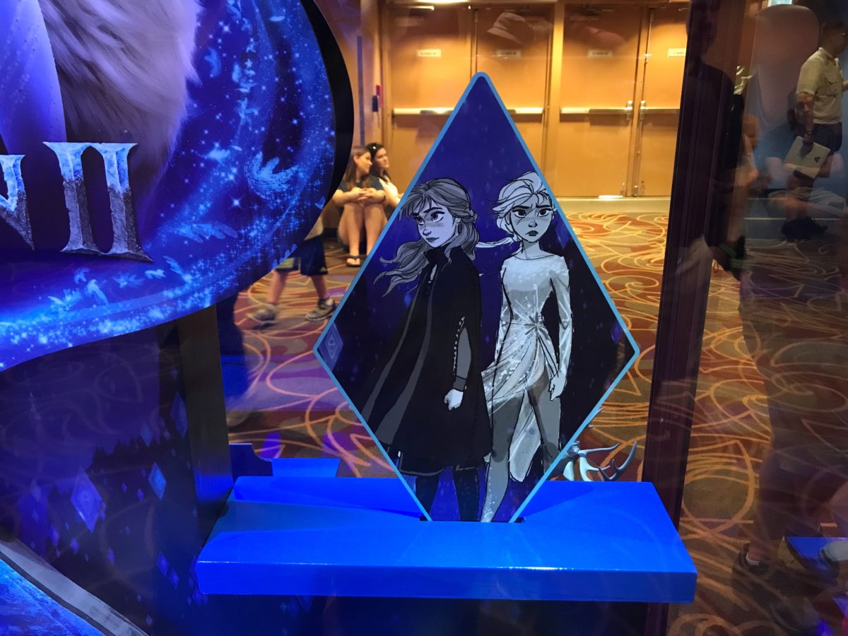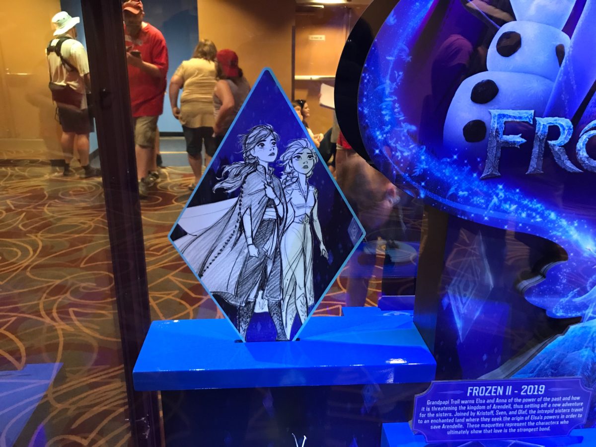The display features a stunning printed cutout version of the poster, with early character sketches for the sisters’ new look as seen in the movie.