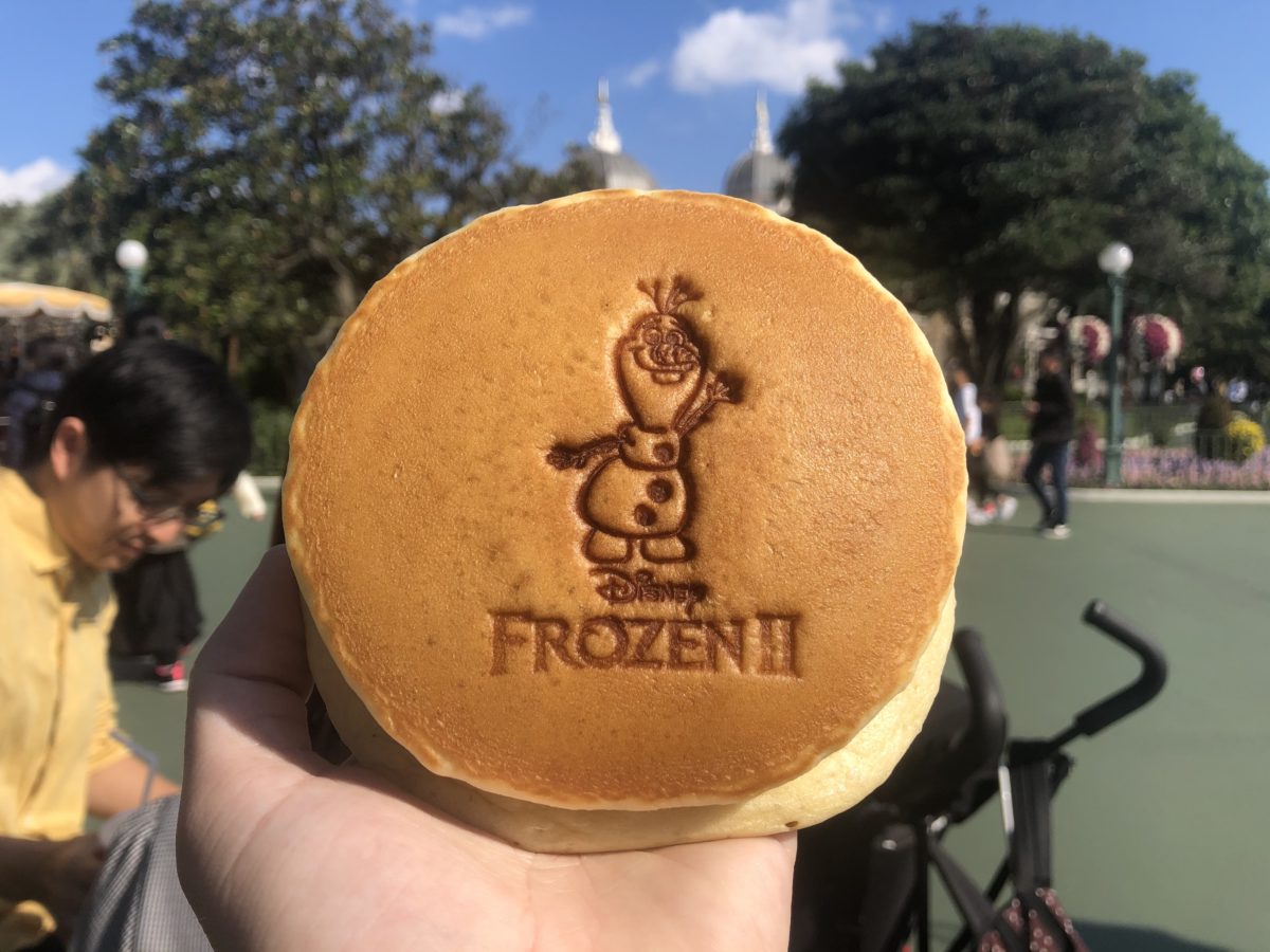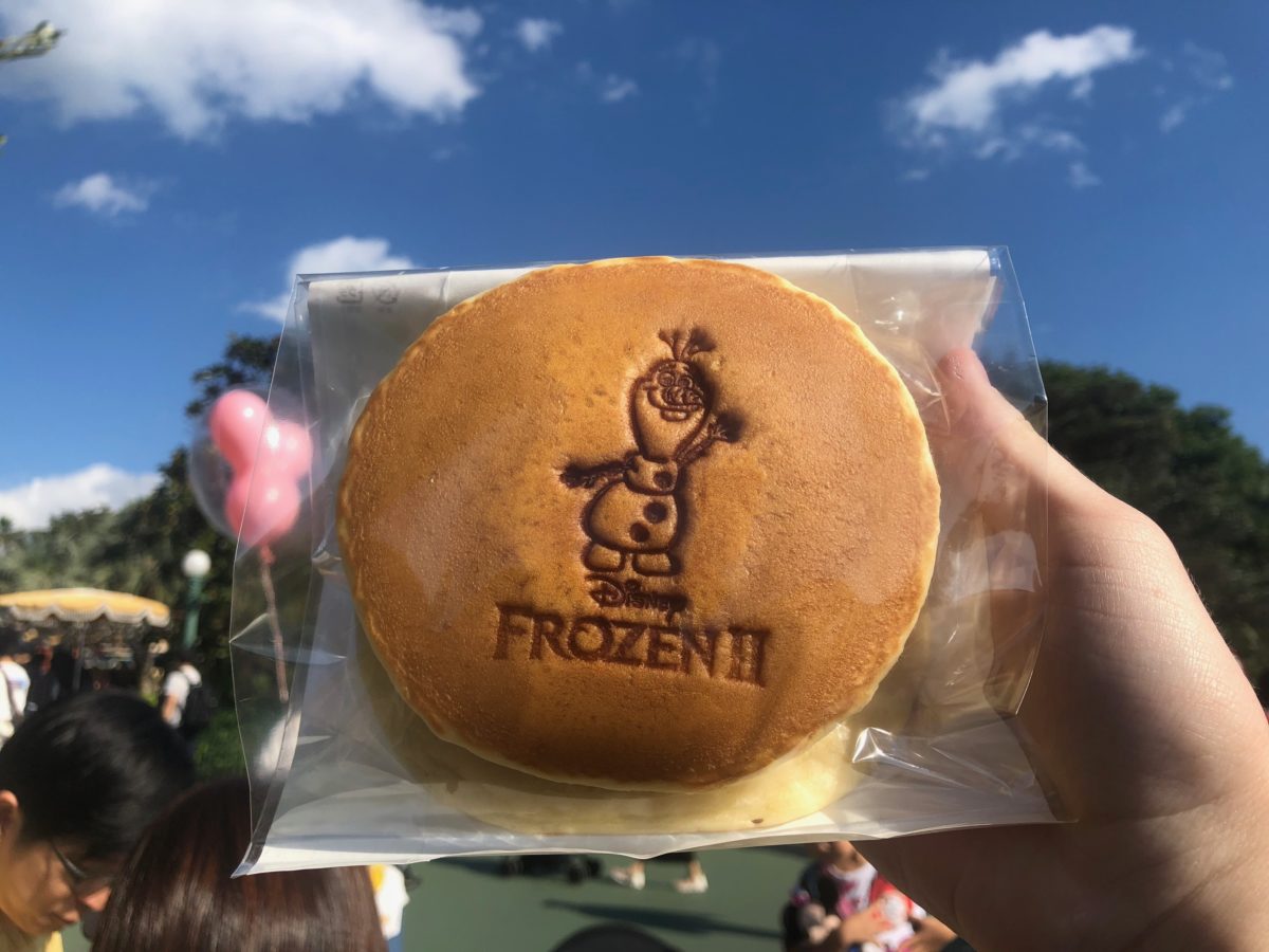 Frozen fever has struck yet again! Here in Japan, Frozen, or as it’s known here, Ana to Yuki no Jo-ou, was a mass sensation. The film grossed over $230 million in Japan alone, and is the third-highest grossing film in Japanese cinema! As such, the hype for Frozen II is pretty substantial, and Tokyo Disney Resort is catering with a special Frozen mini-event at Tokyo Disneyland. Through January 8th, the Food Booths and Magical Market at Tokyo Disneyland are serving this adorable Olaf pancake sandwich! How’s the taste? Well, let’s try for ourselves!
