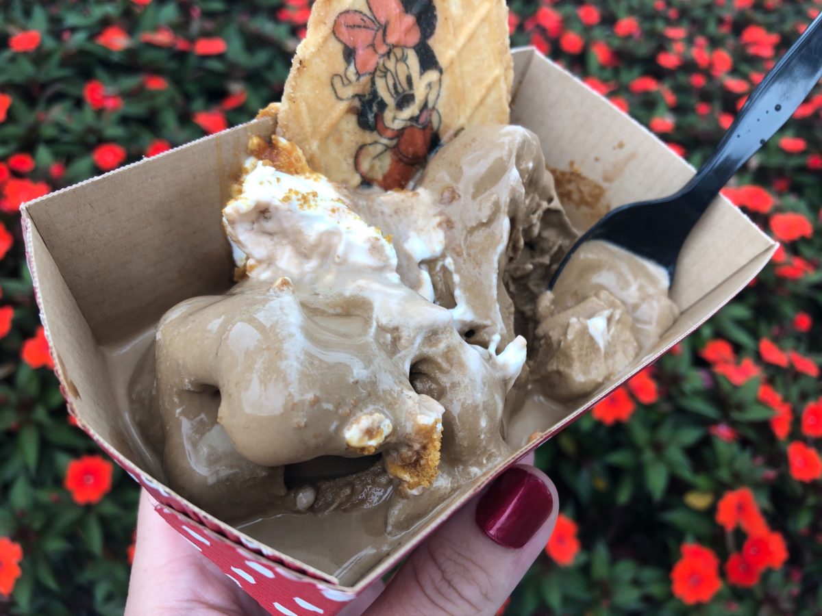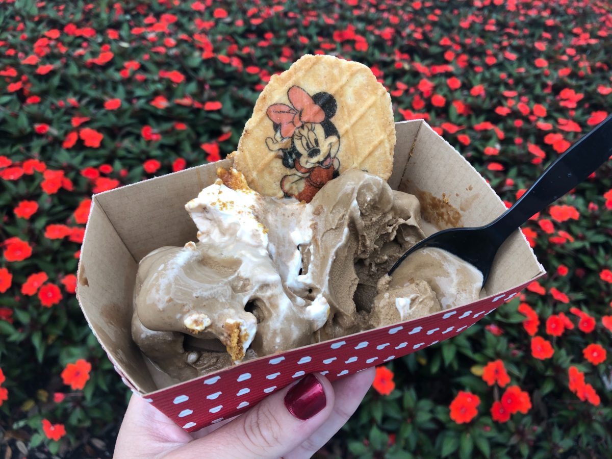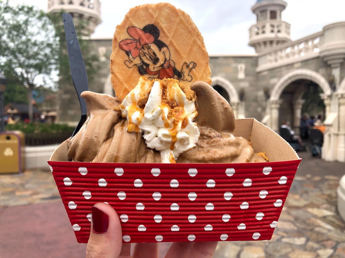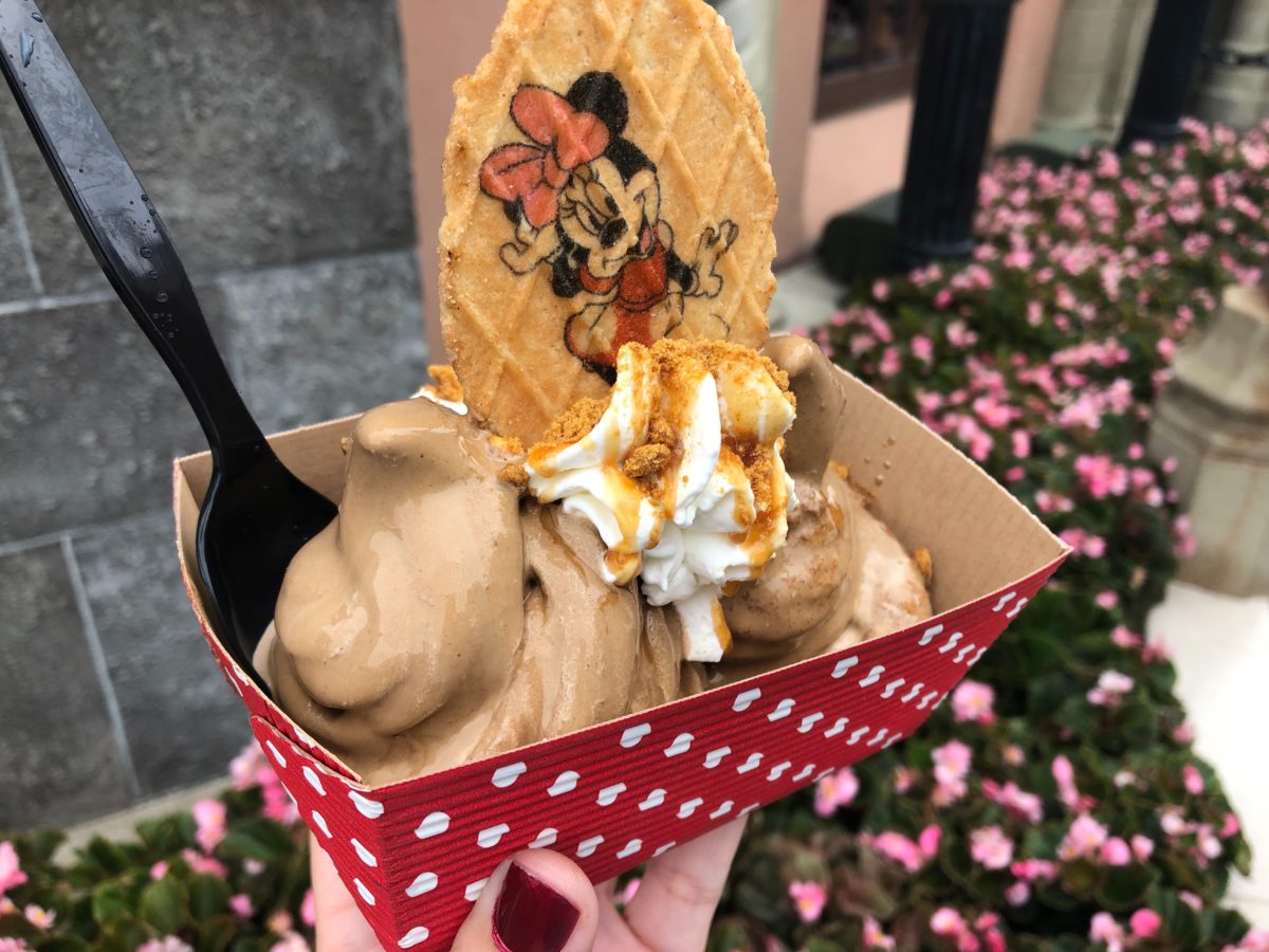 This Gingerbread Sundae, available for $6.49 at Storybook Treats in the Magic Kingdom is gingerbread soft-serve sundae topped with whipped cream, gingerbread pieces, and a Minnie Mouse waffle topper. I love gingerbread as much as the next personand this is beautifully presented. That being said, it all comes down to taste.