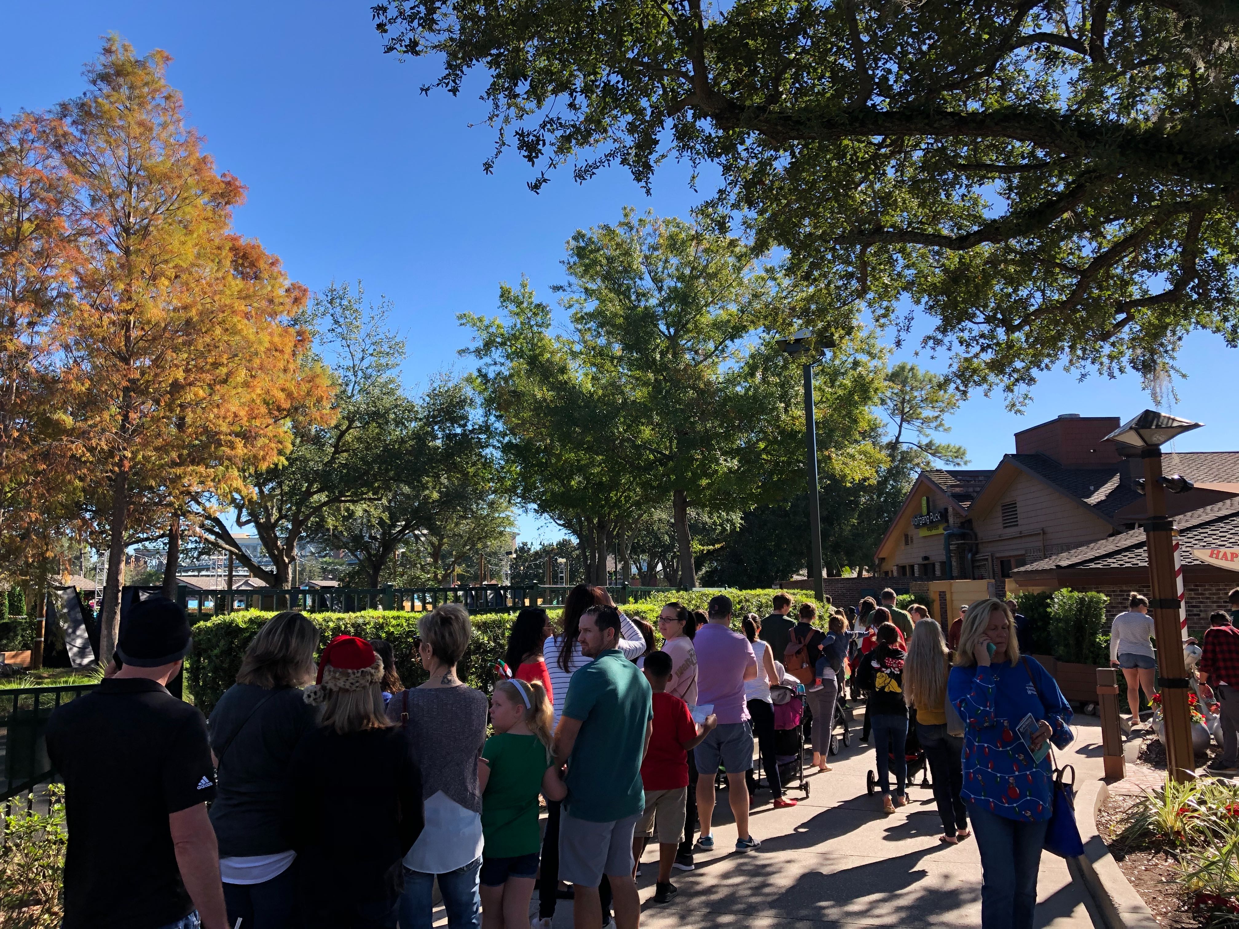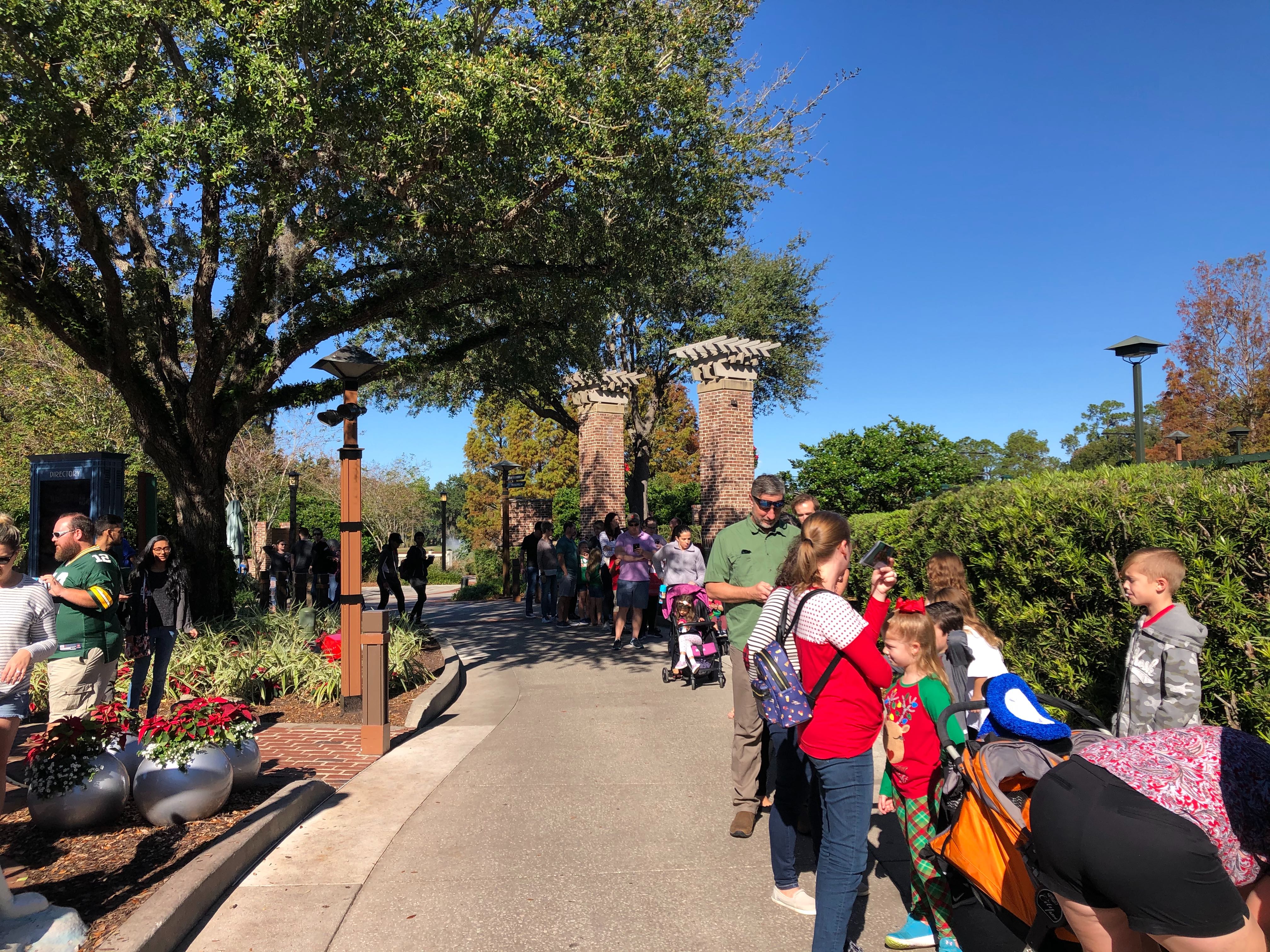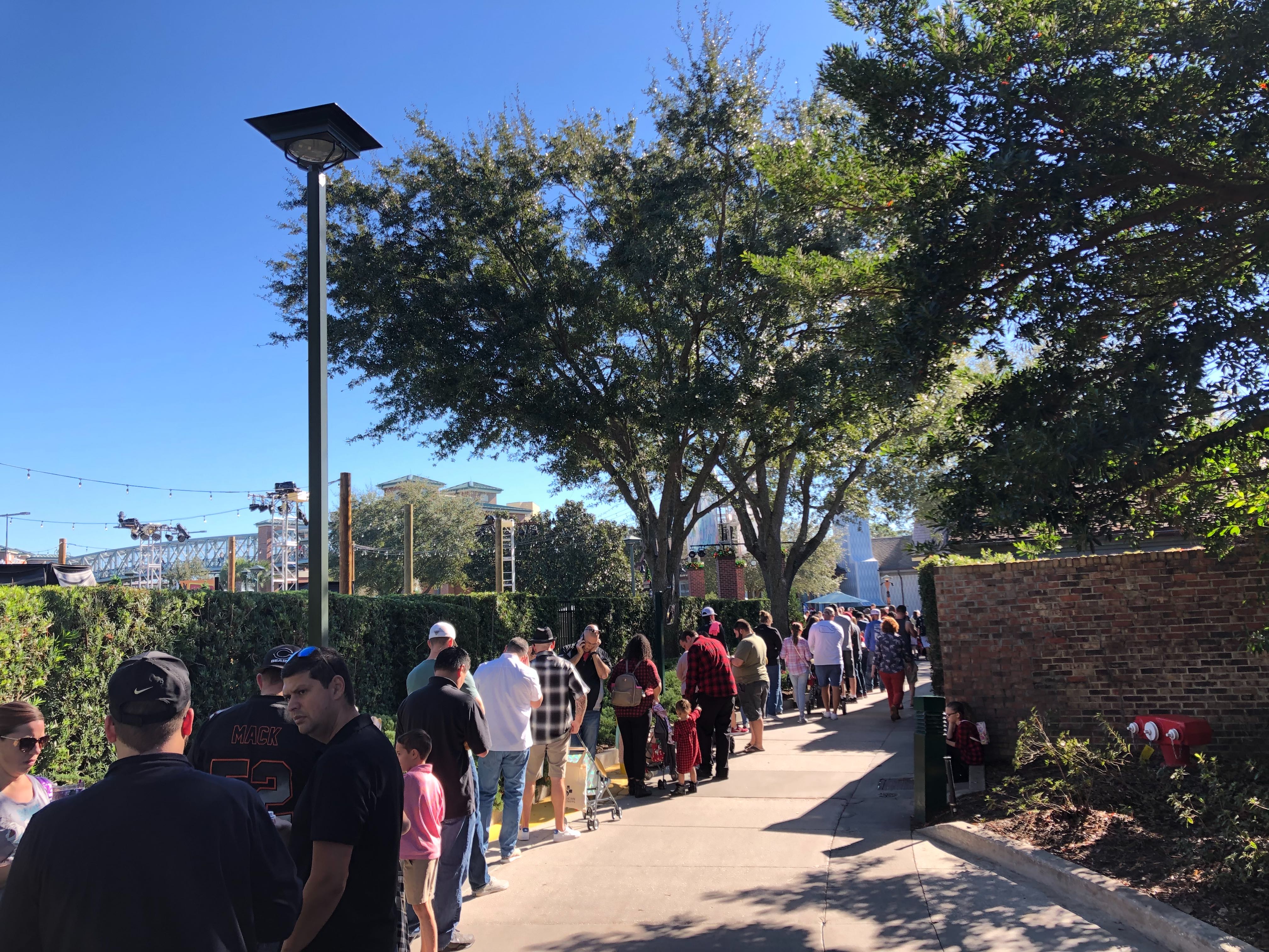 The lines for Santa at the Disney Springs Christmas Tree Trail were ridiculous. The line wrapped from the entrance of the trail all the way down to the exit of the trail. These guests were waiting to put their names on the virtual queue for Santa before the trail opened for the day. We hope you’ve been nice, if you wait that long!