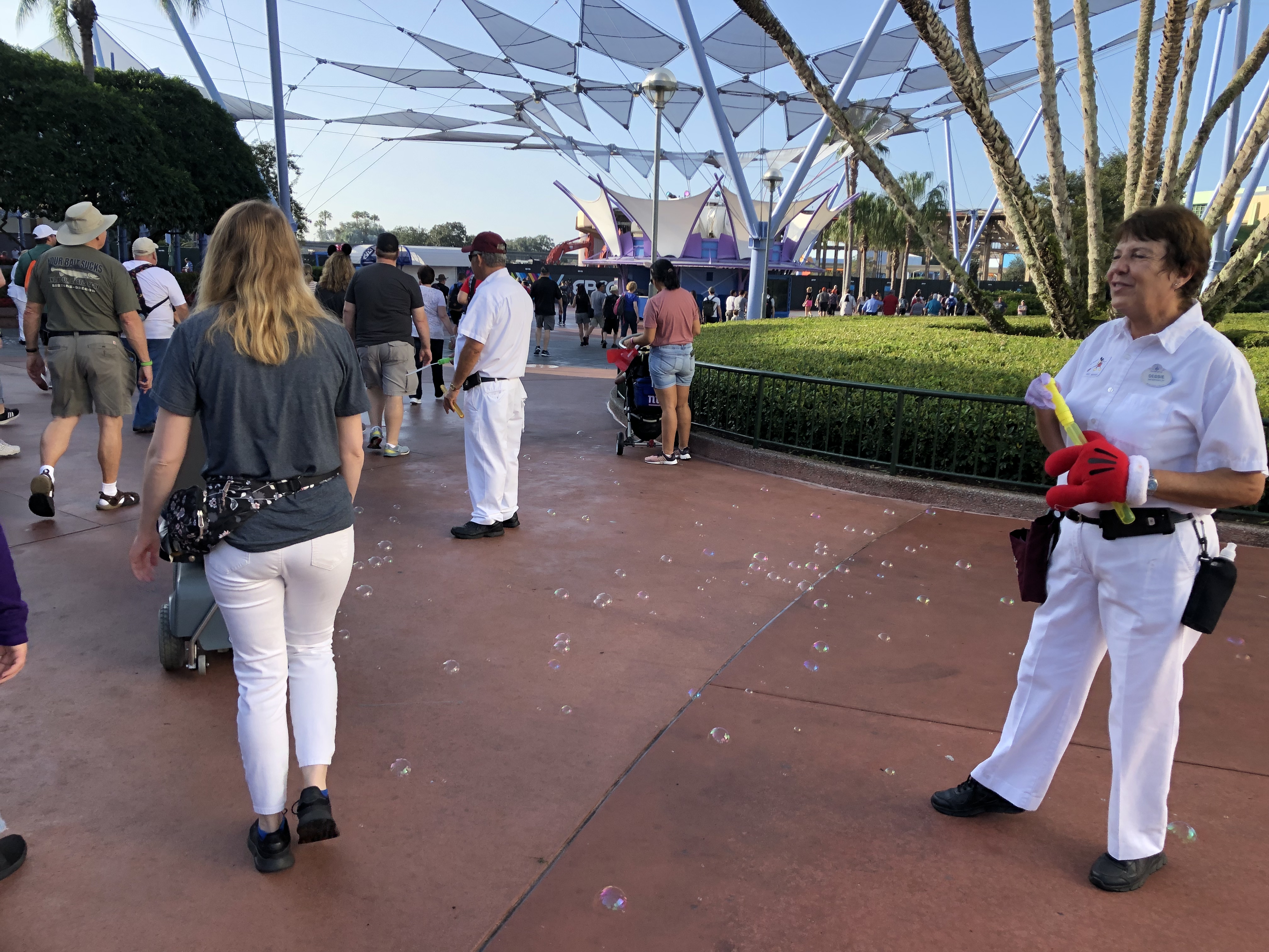 As we walked into the park, cast members on both sides of the walkway showered guests with bubbles.