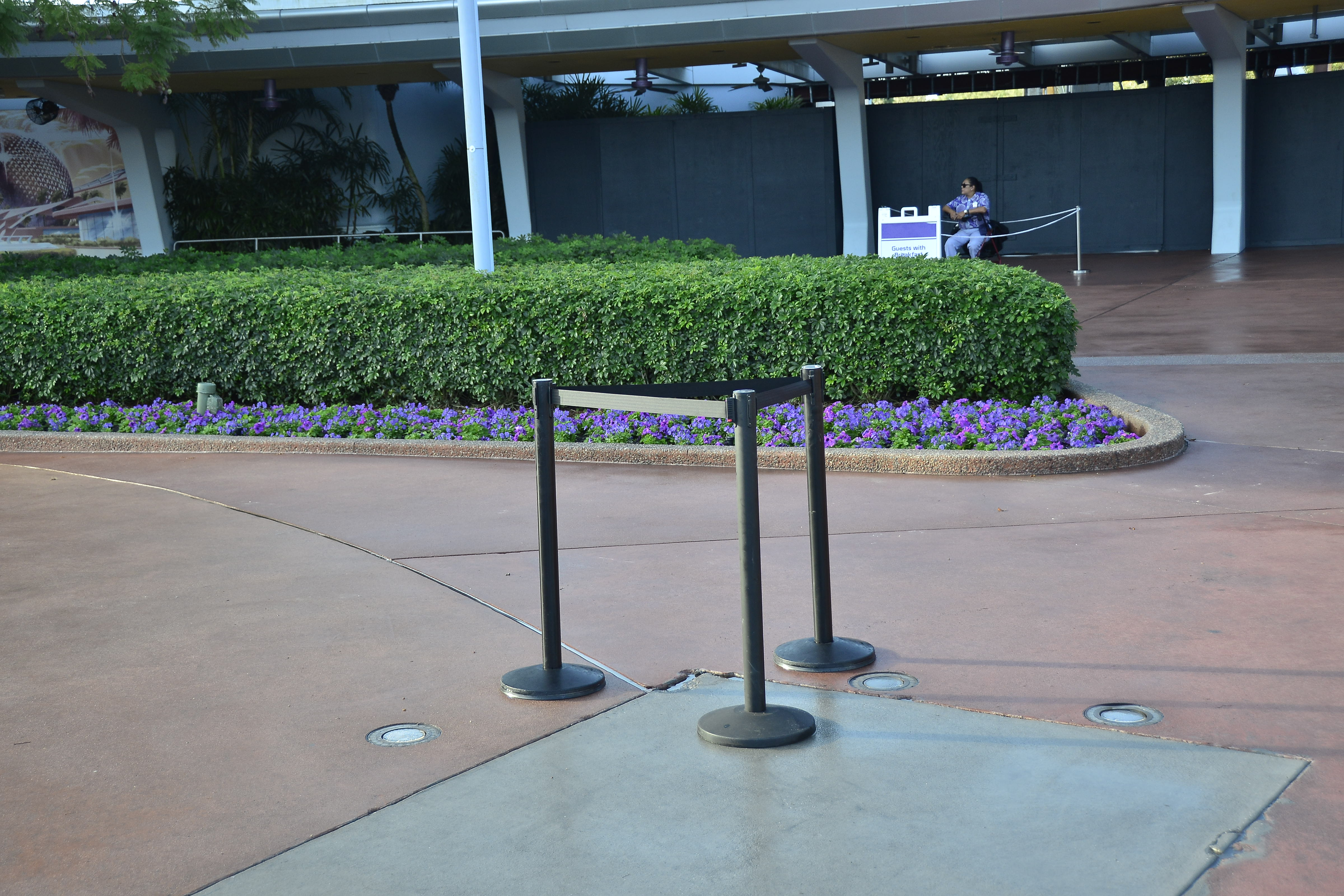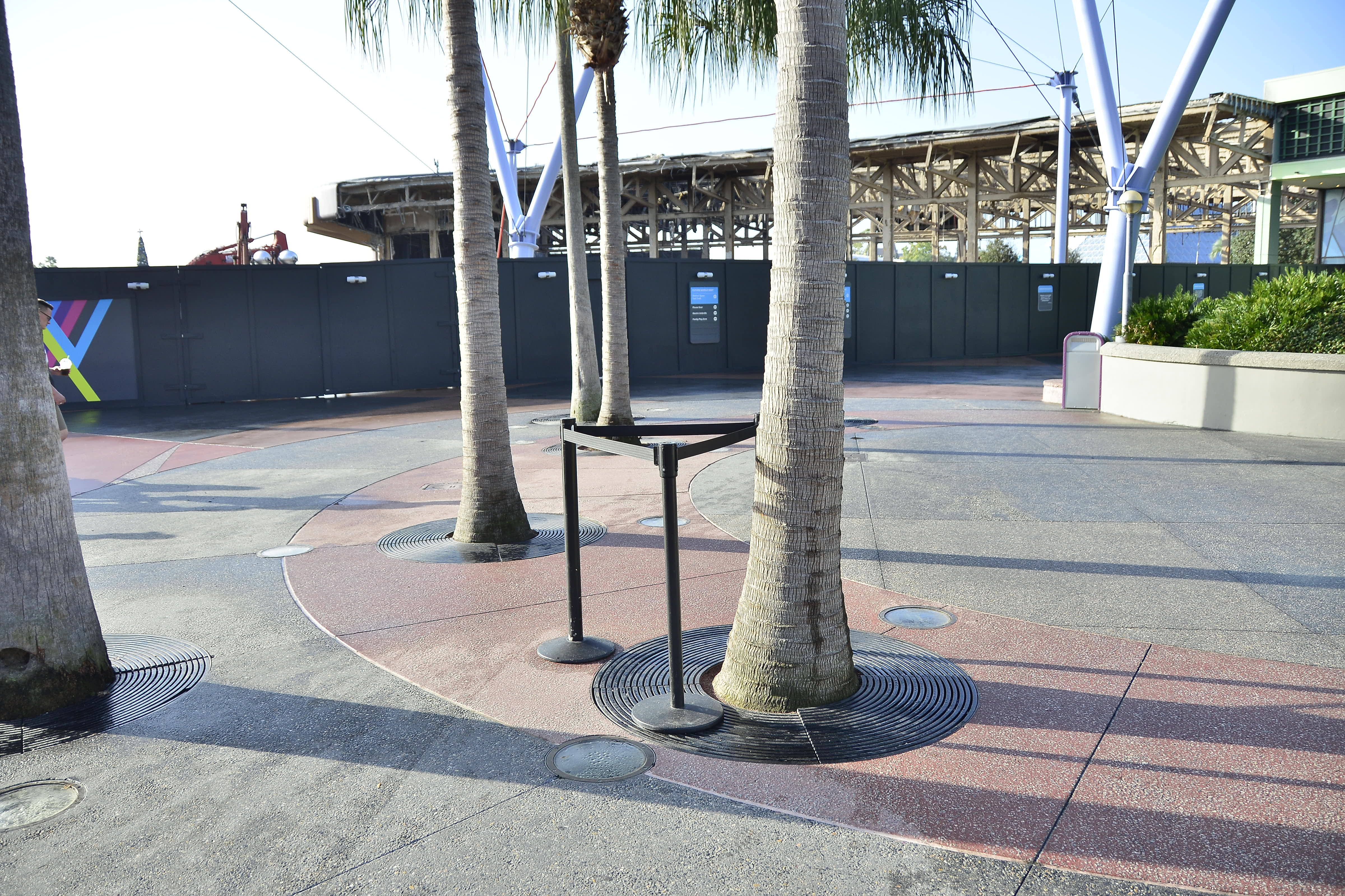 Over by the former Fountain of Nations site, ropes were keeping guests away from this metal grate around a palm tree. It had previously been covered with a wood piece.