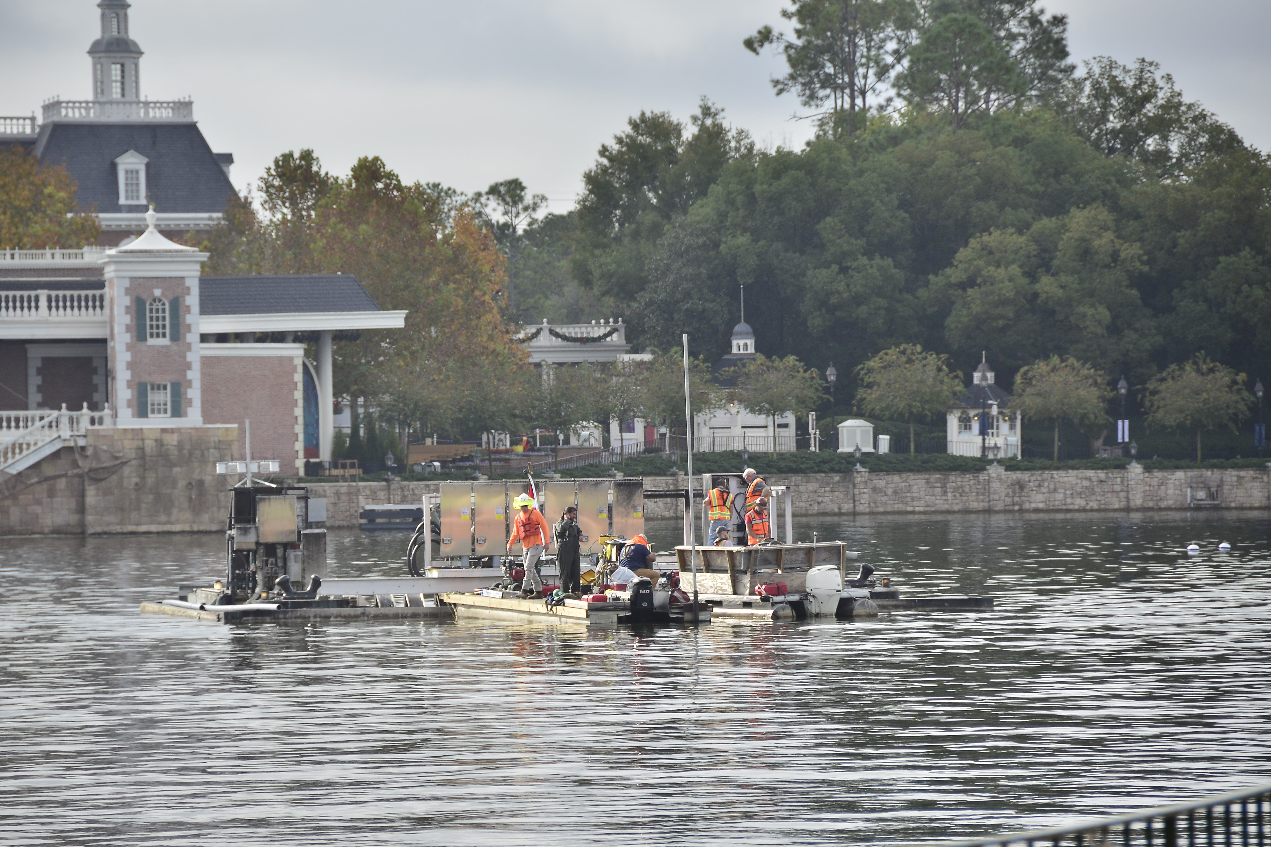 The EPCOT fireworks crew was getting the barges ready for tonight’s showing of EPCOT Forever.