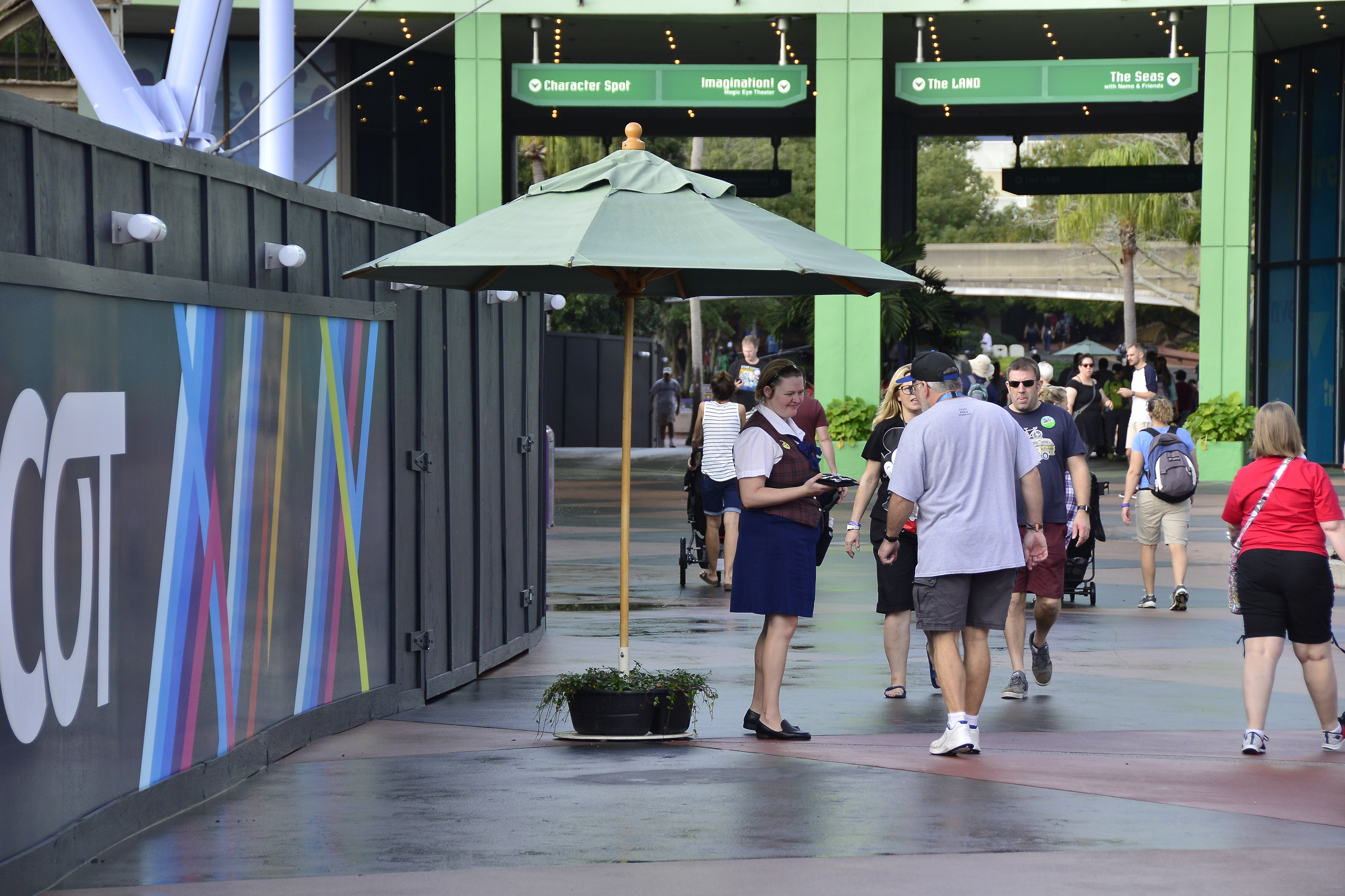 Several guest relations cast members were stationed along the construction walls to help guests with directions.