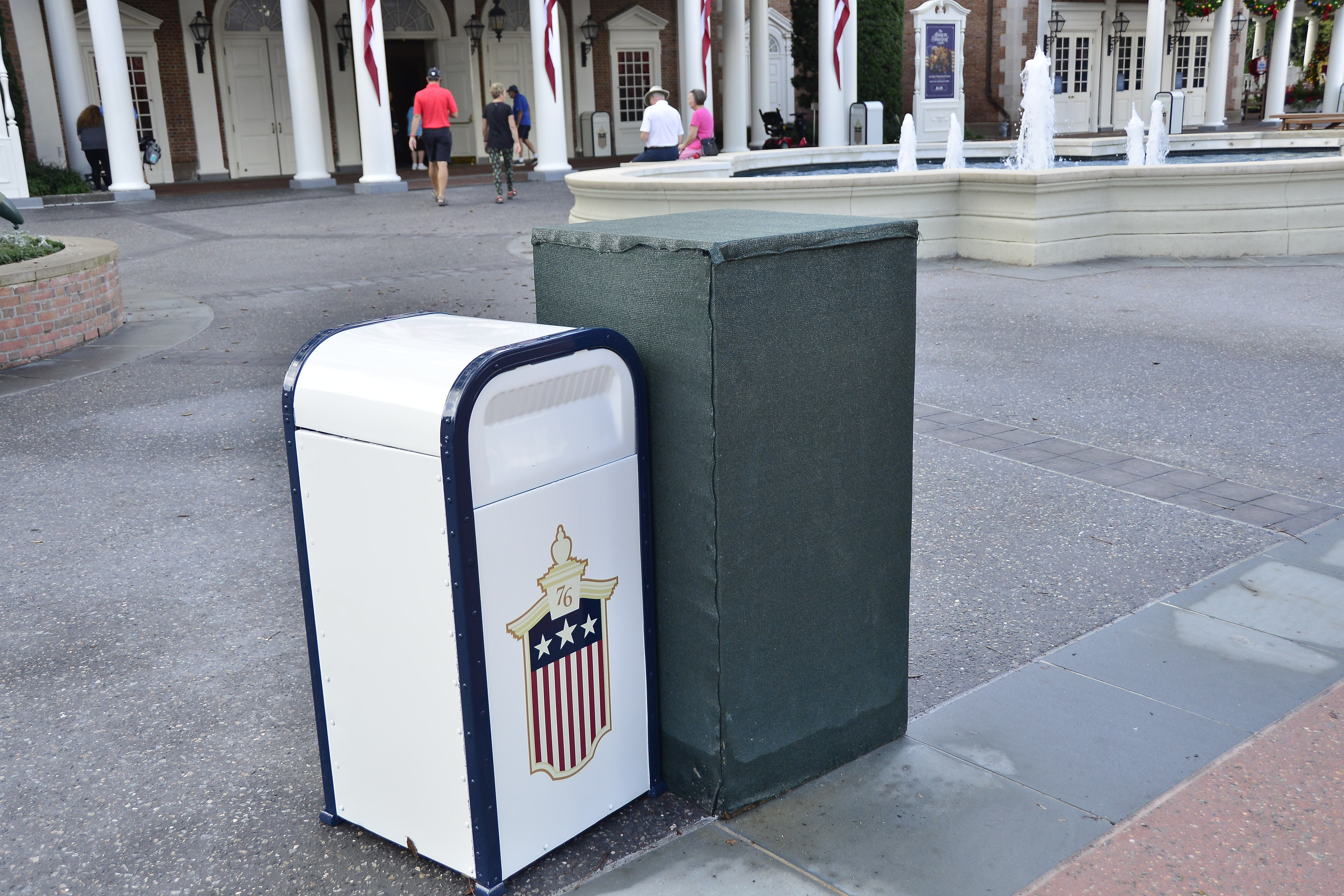 Just in front of the entry to the America pavilion, we noticed this mysterious green box structure next to a trash can. We aren’t sure what is underneath it, but time will tell.