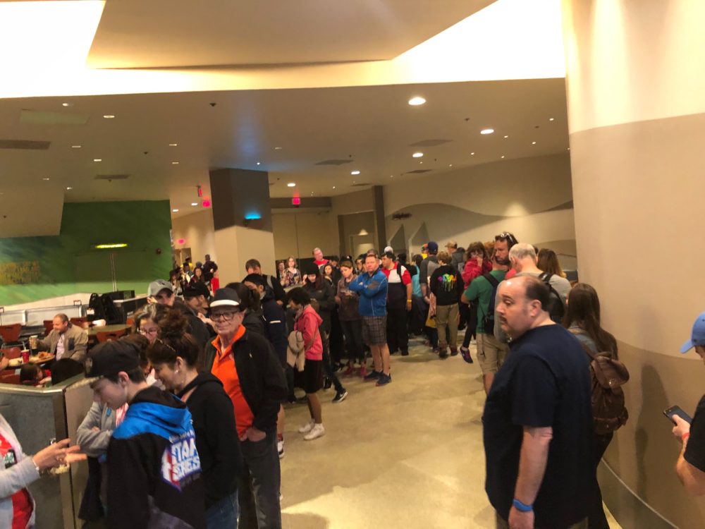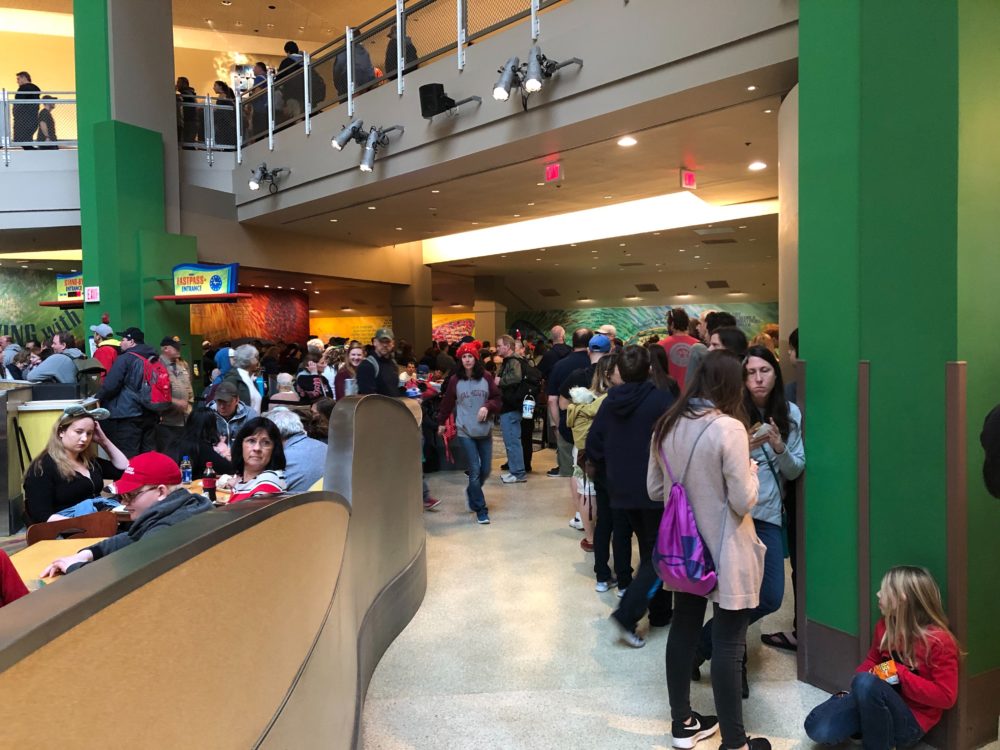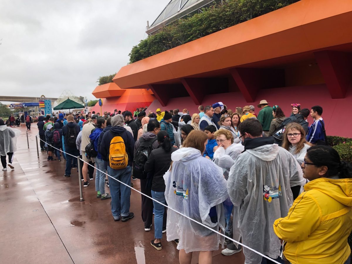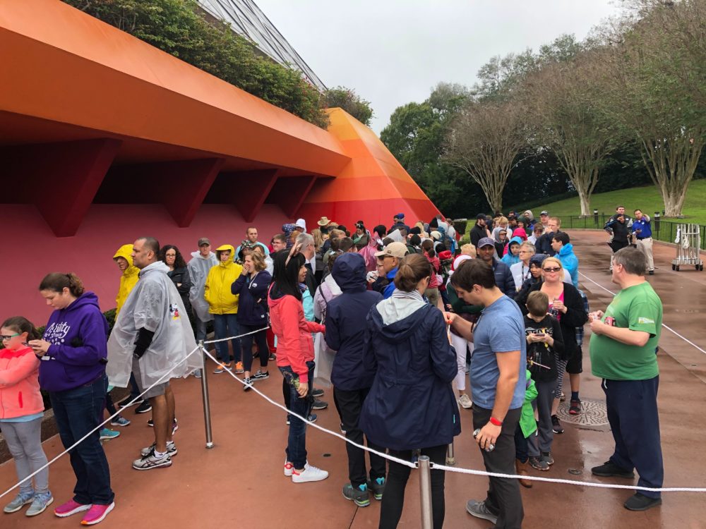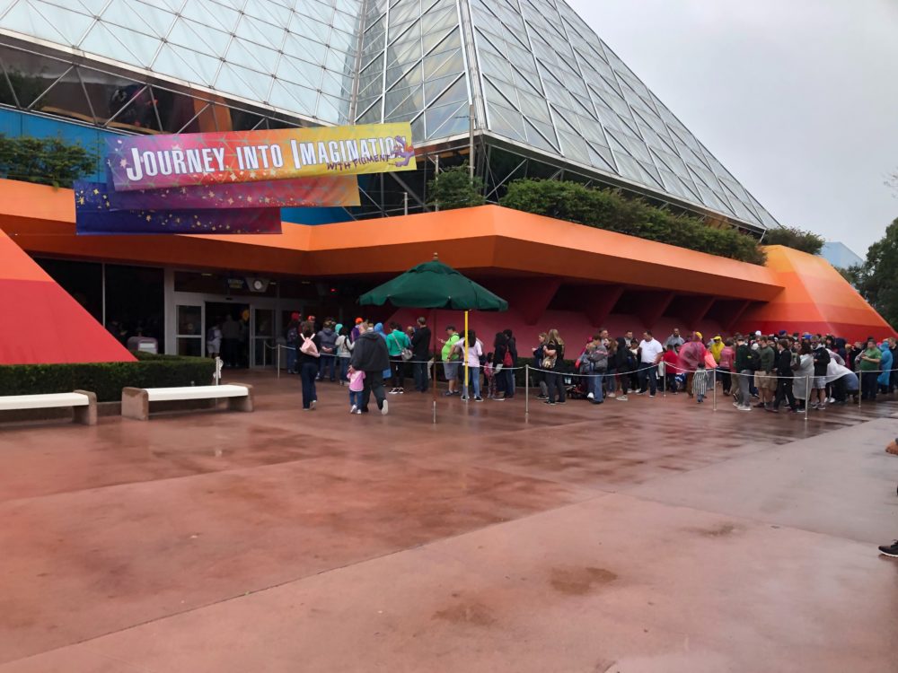 Well, maybe we spoke too soon about the crowds. Glad we got our caffeine, because we’re gonna need it today. Journey Into Imagination with Figment has a crazy queue that wraps back and forth outside the entrance.