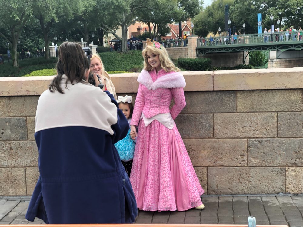 Aurora was out and greeting guests in her winter wardrobe.