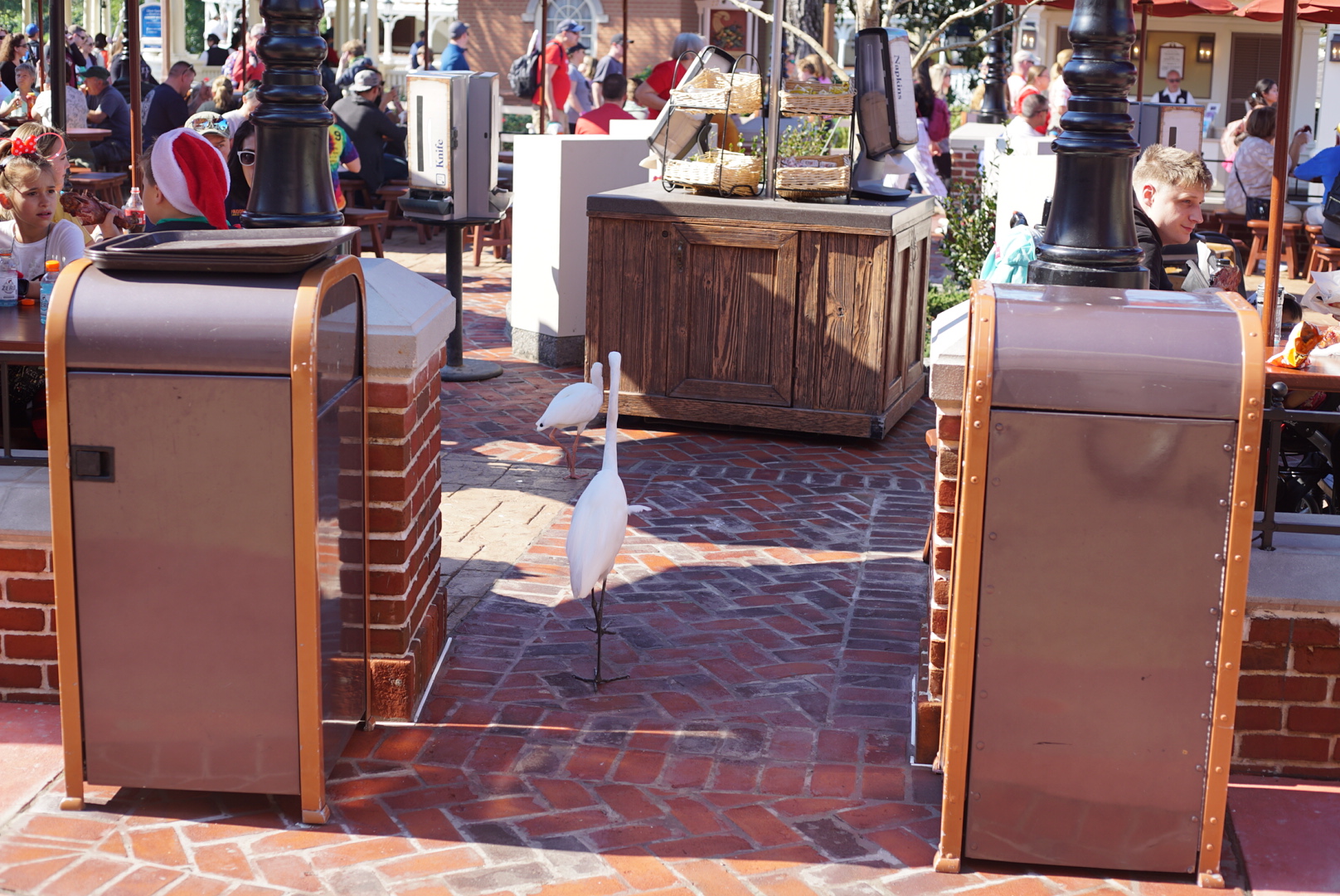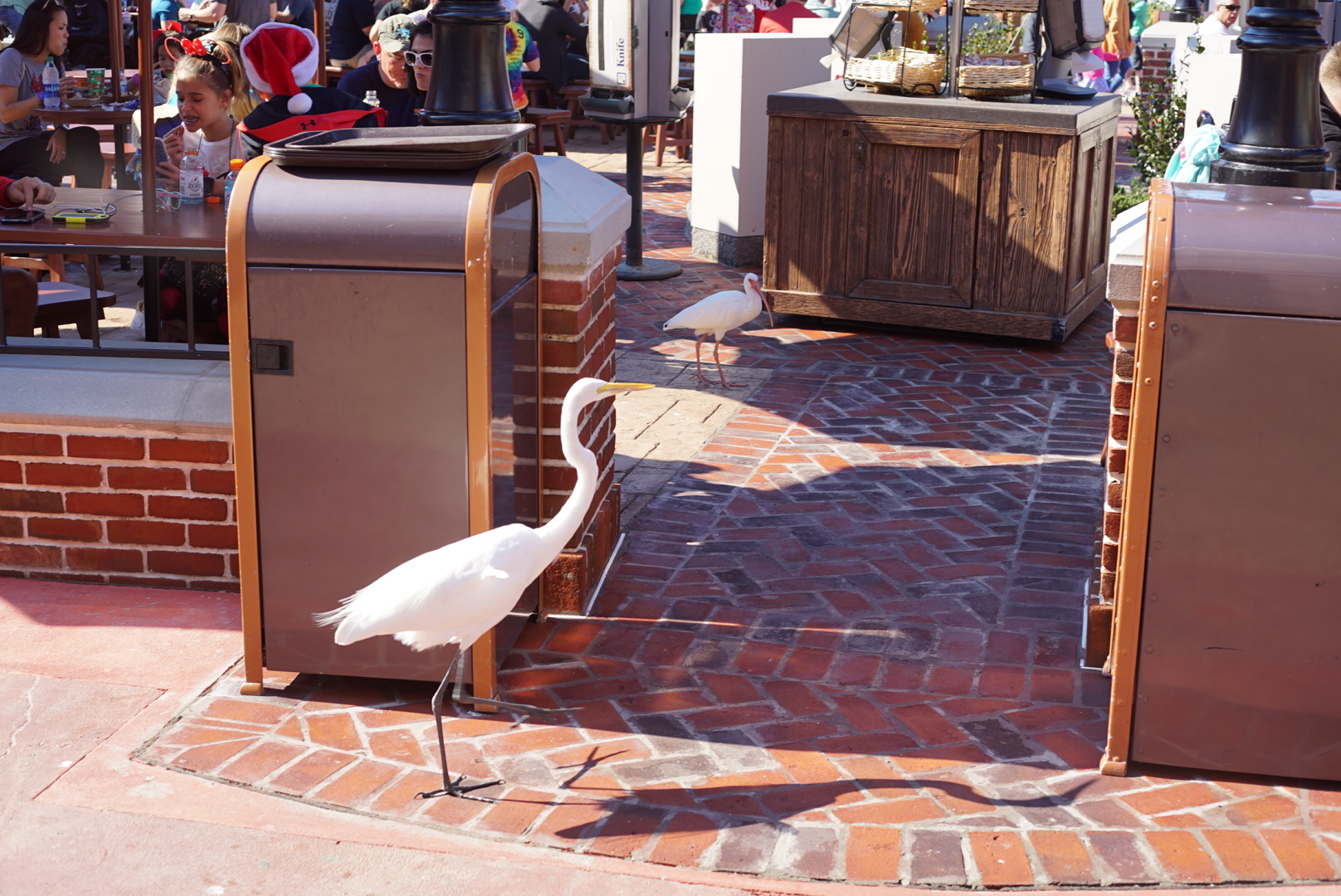 We’re not even at Animal Kingdom and we’re getting up close and personal with the wildlife. This great egret was confident enough to strut into the recently opened Liberty Square Market dining area and beg for table scraps.