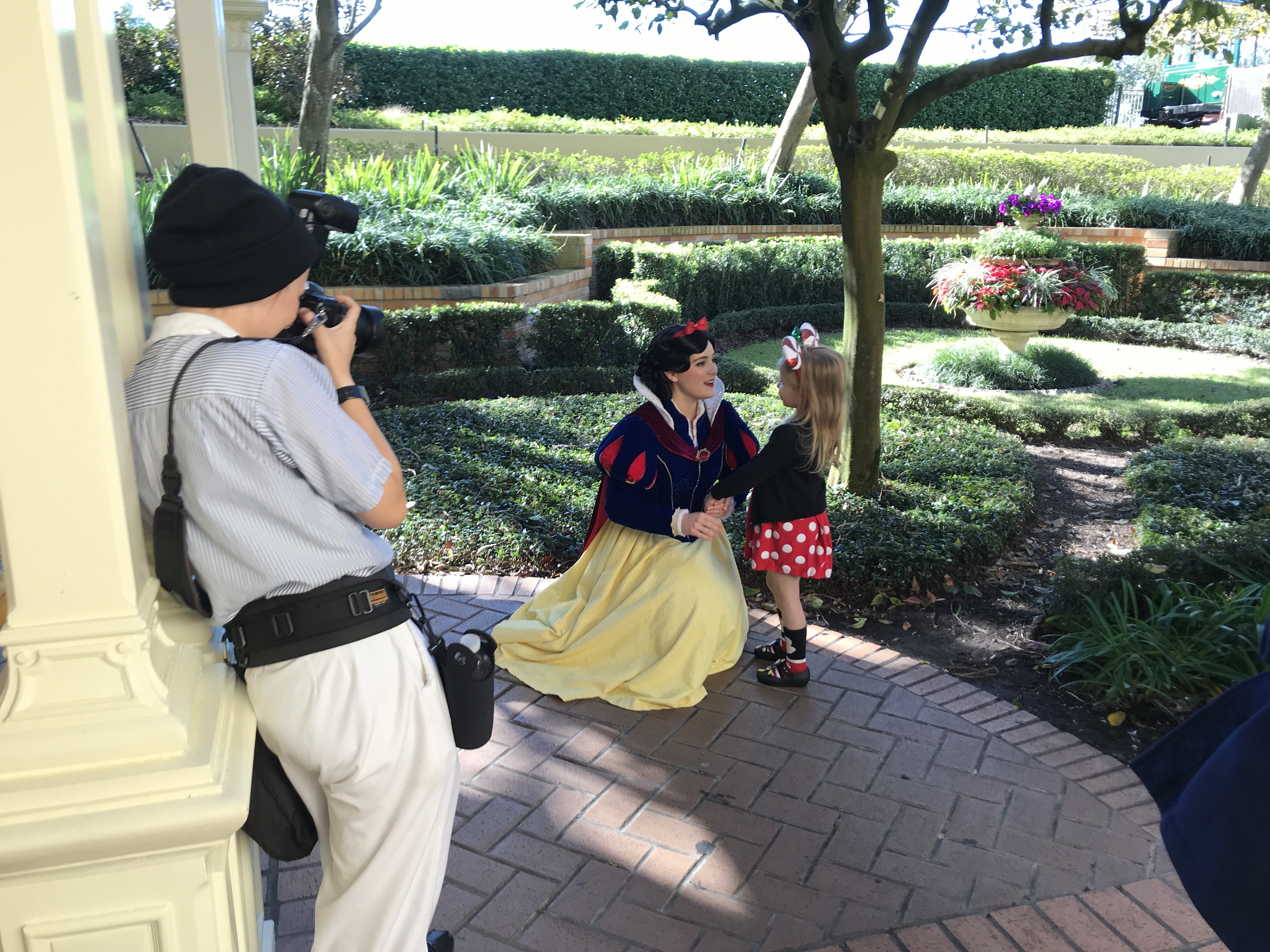 Snow White, in her winter attire, was greeting guests on the patio outside of Curtain Call.