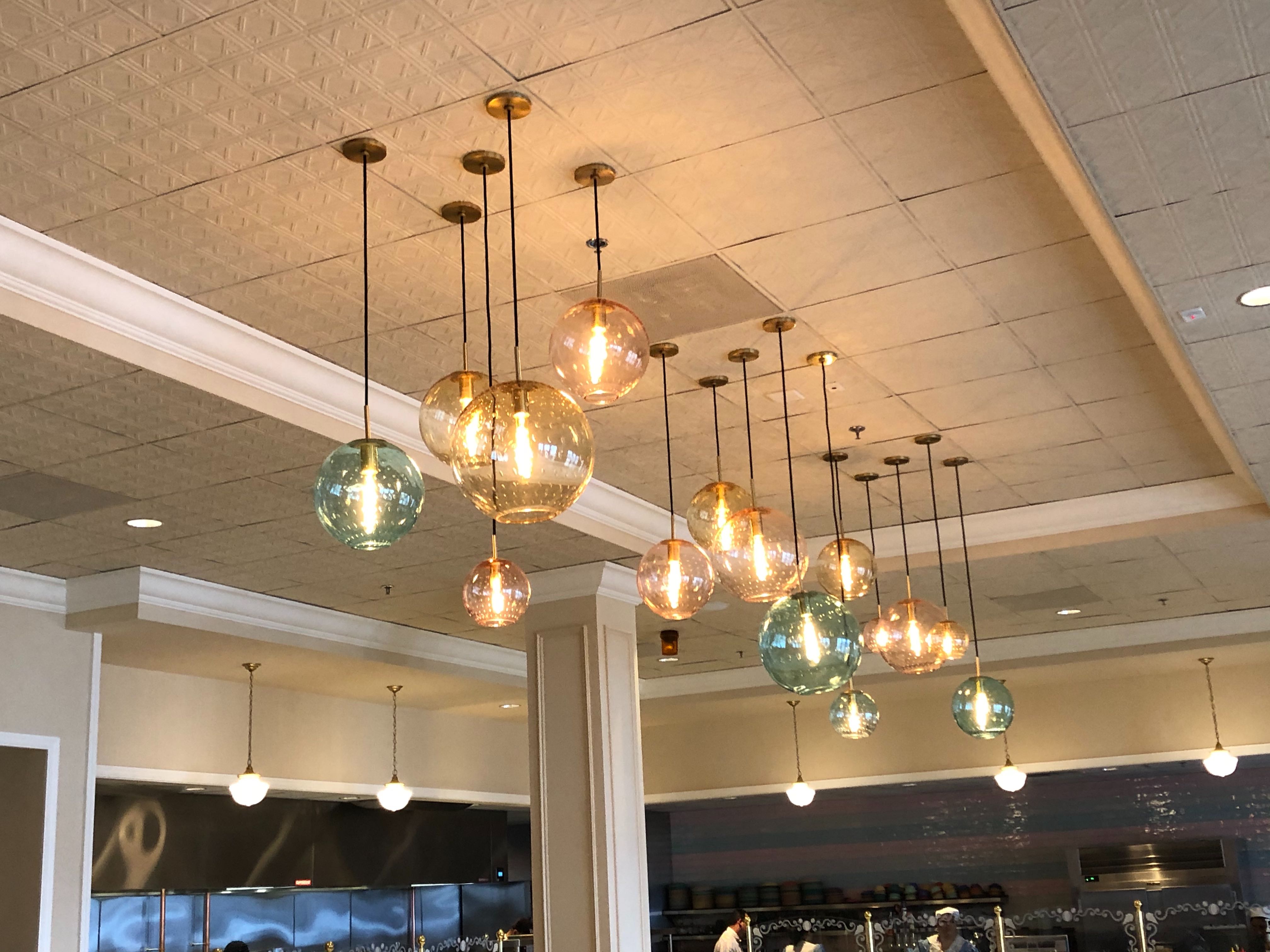 While the ice cream cone sconces may have not survived the refurbishment, new pastel globe lighting illuminates the space. Red sirens for Kitchen Sink shenanigans have also made a triumphant return.