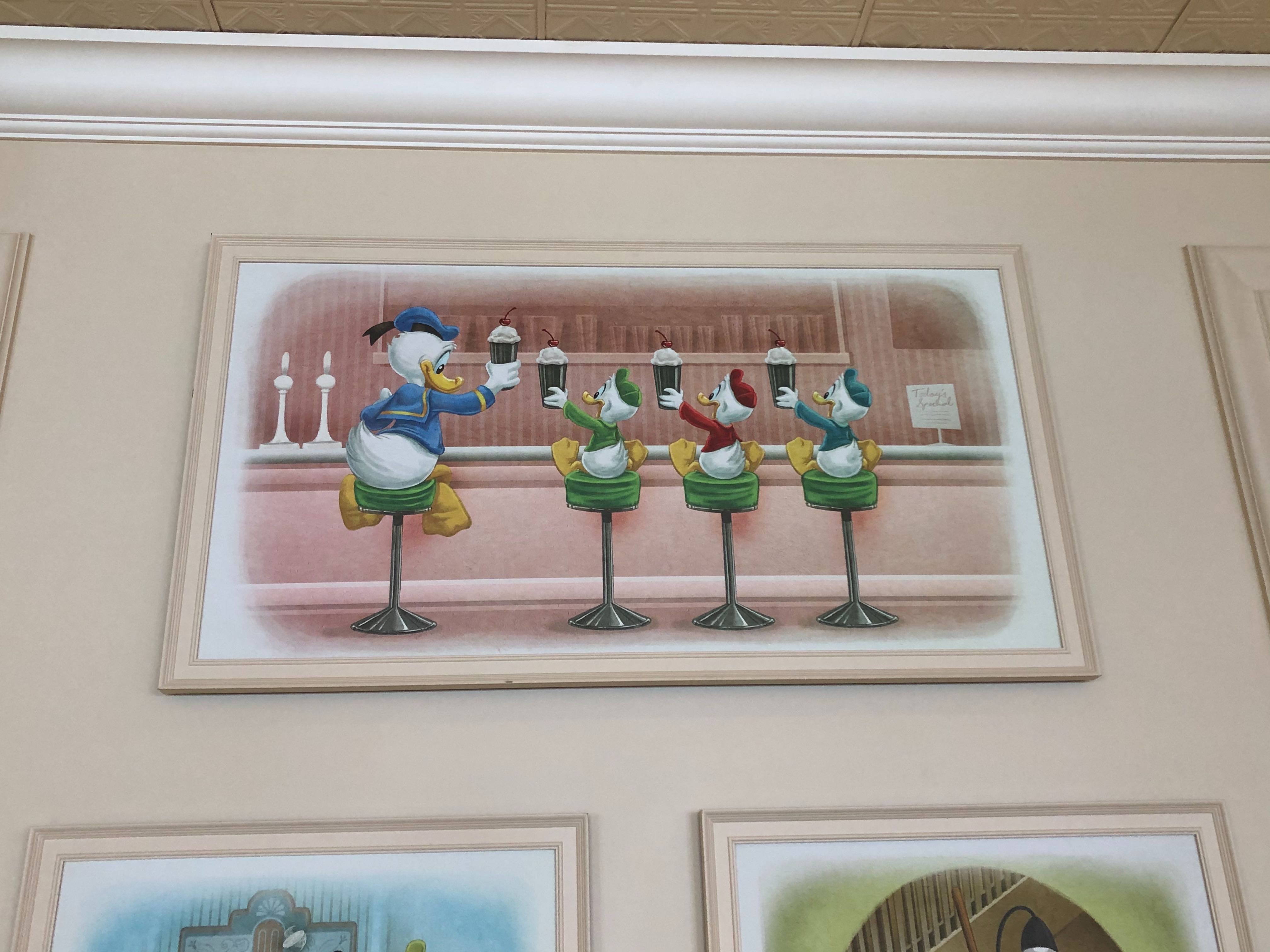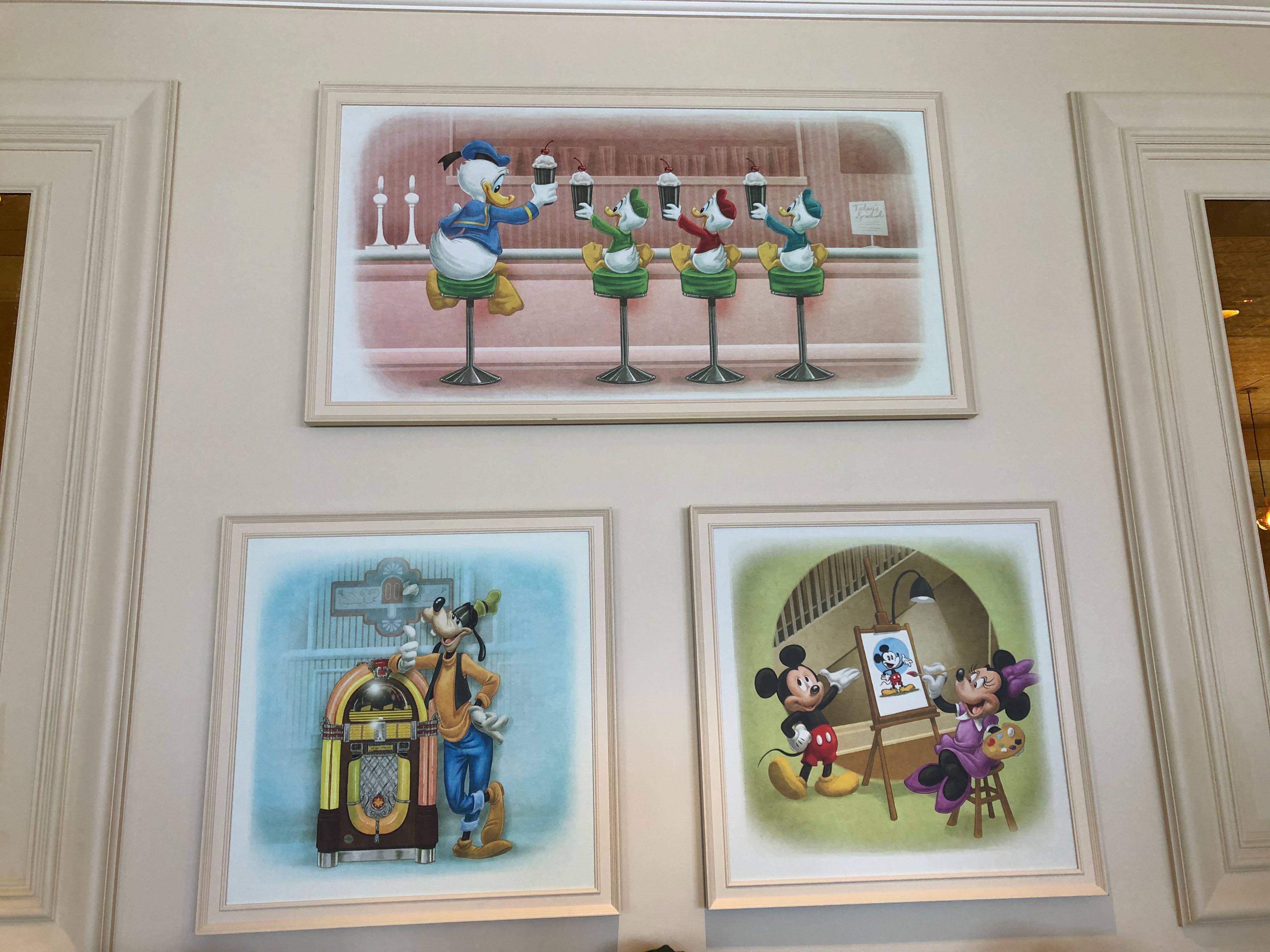 To decorate the space, the walls are now lined with adorable character art, showing classic characters like Donald and his nephews, Mickey, Minnie, Goofy, and Pluto.