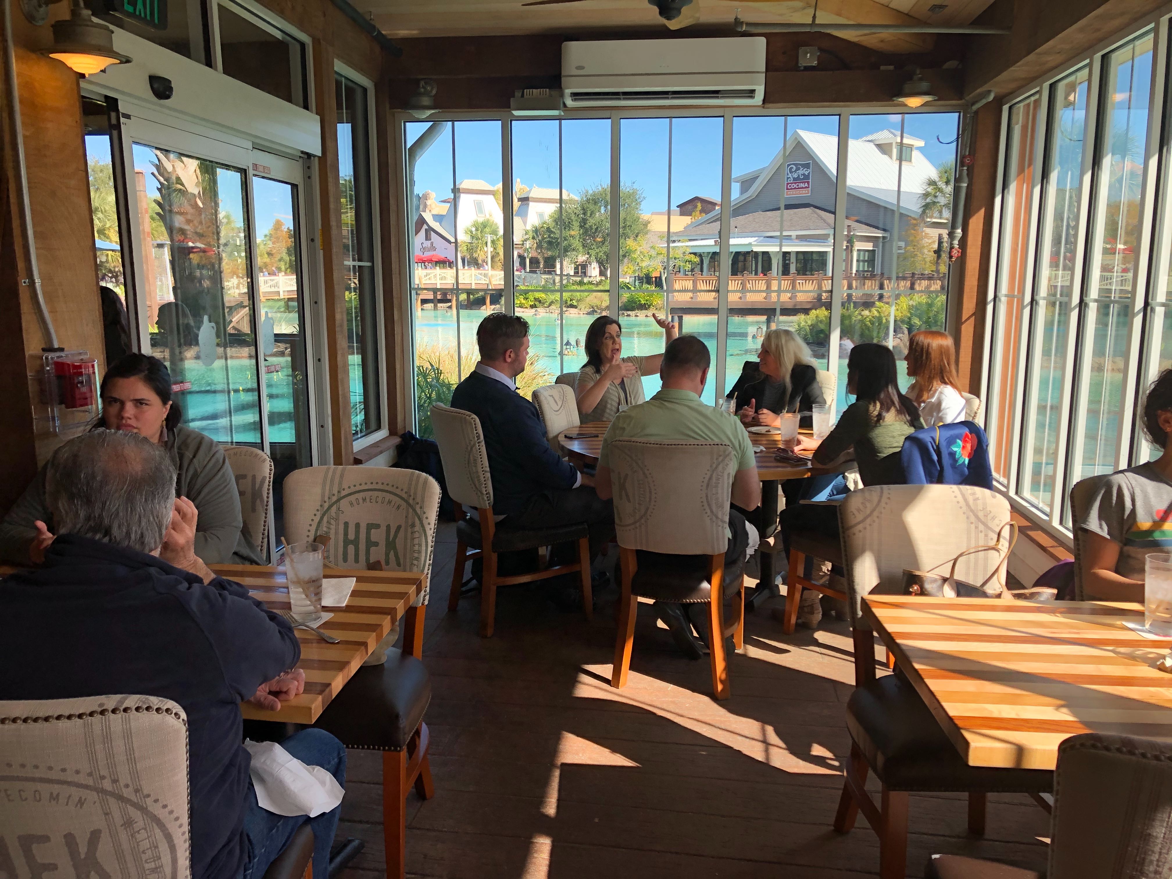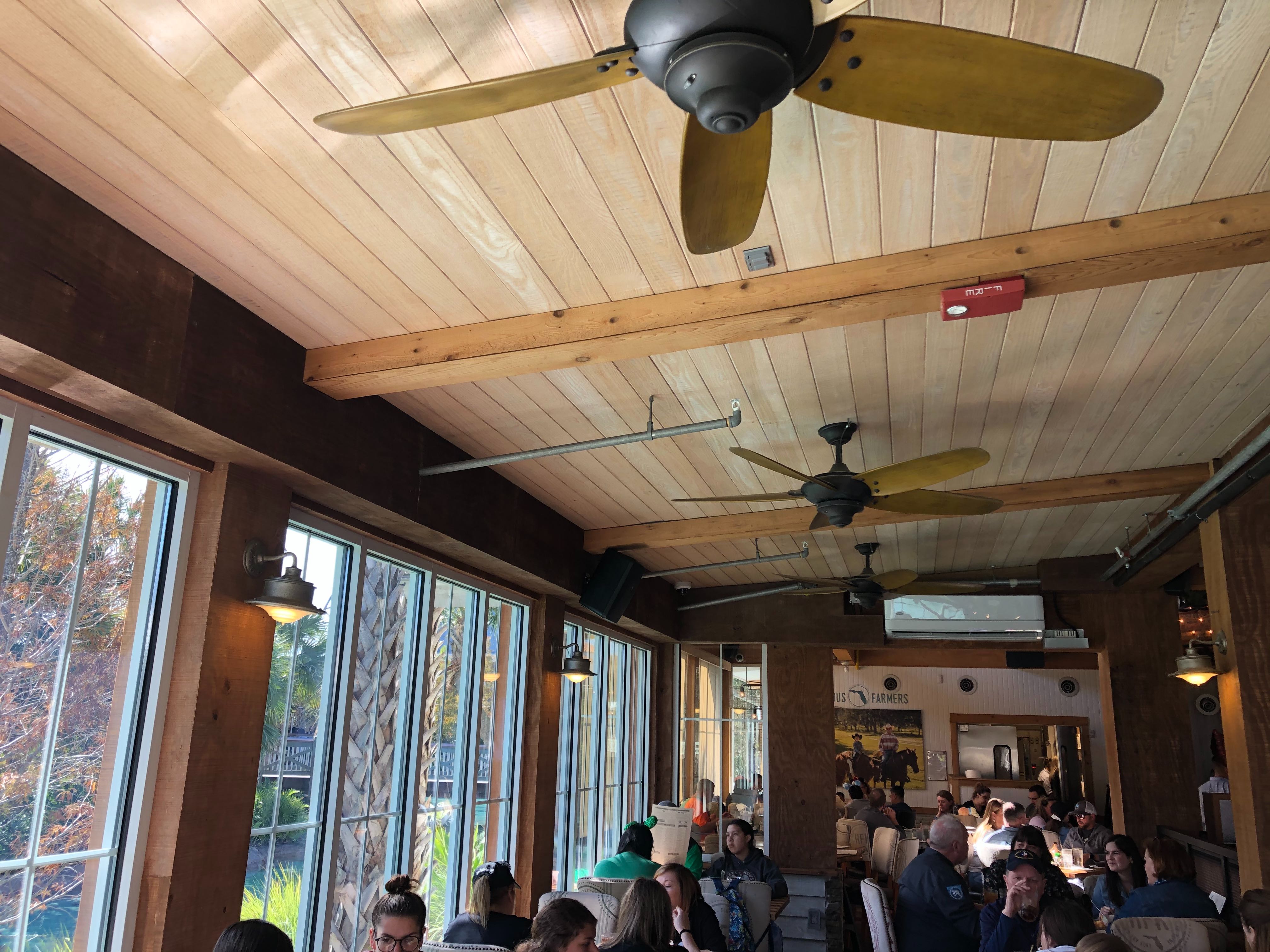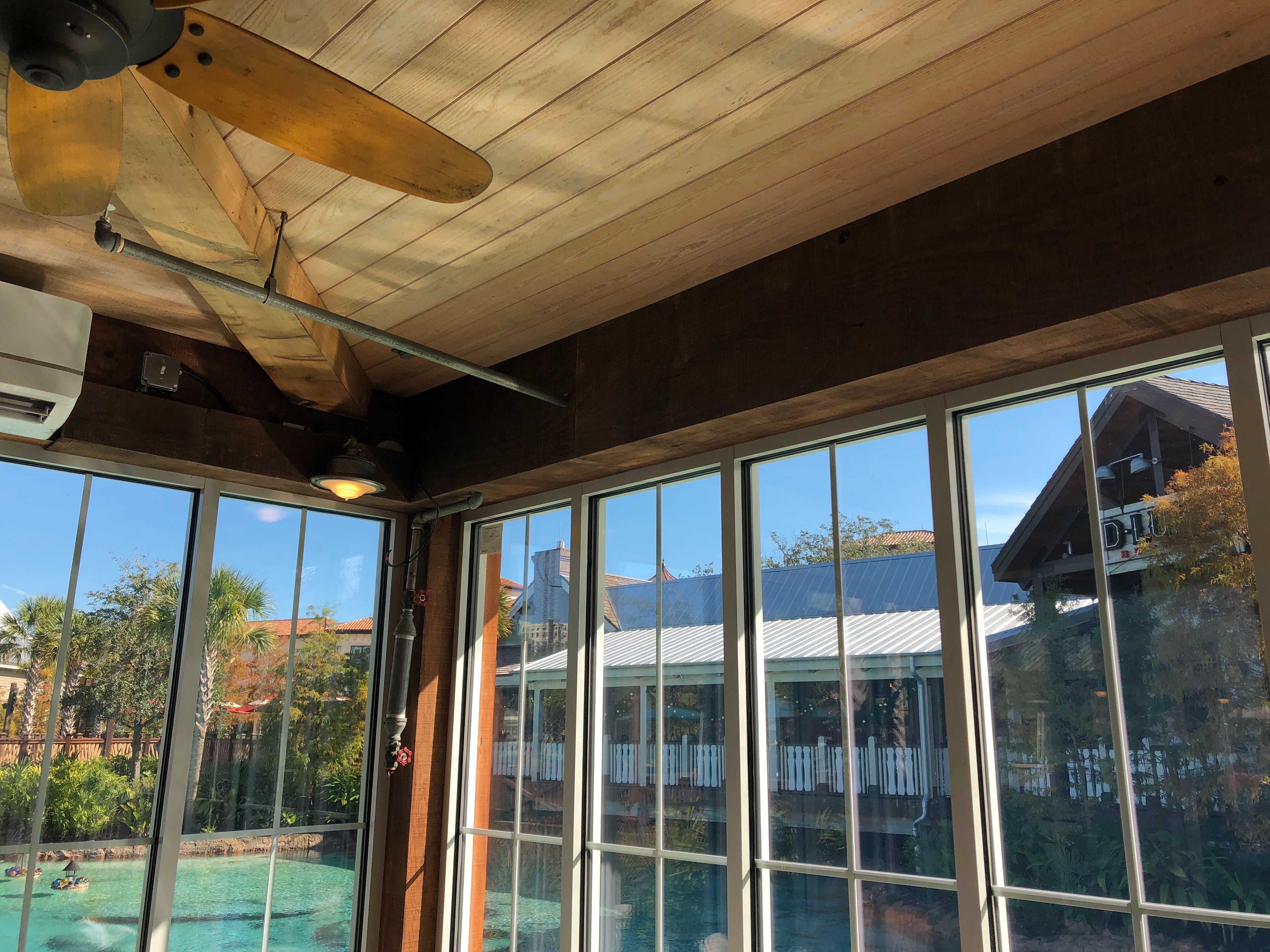 Florida is pretty warm most of the year, but for a few short weeks, we experience our version of “winter”. As the cold weather sets in, we notice portable heaters popping up around outdoor seating areas in various restaurants. Chef Art Smith’s Homecomin’ Florida Kitchen has transformed their patio seating area just in time for winter. The windows are now enclosed, keeping in the warmth (or air conditioning!) while still allowing guests a beautiful view of Disney Springs. Take a look at the changes to the patio.