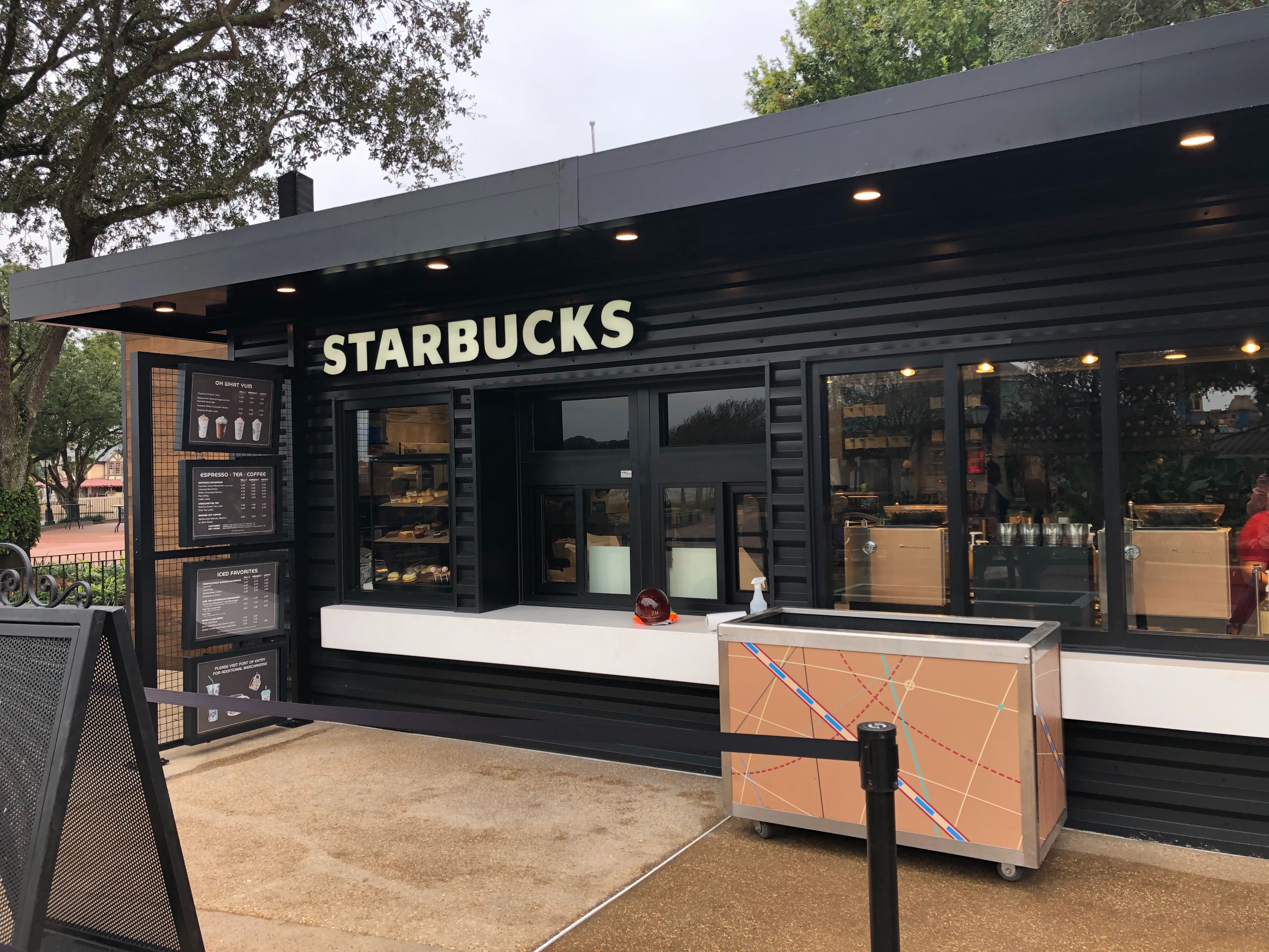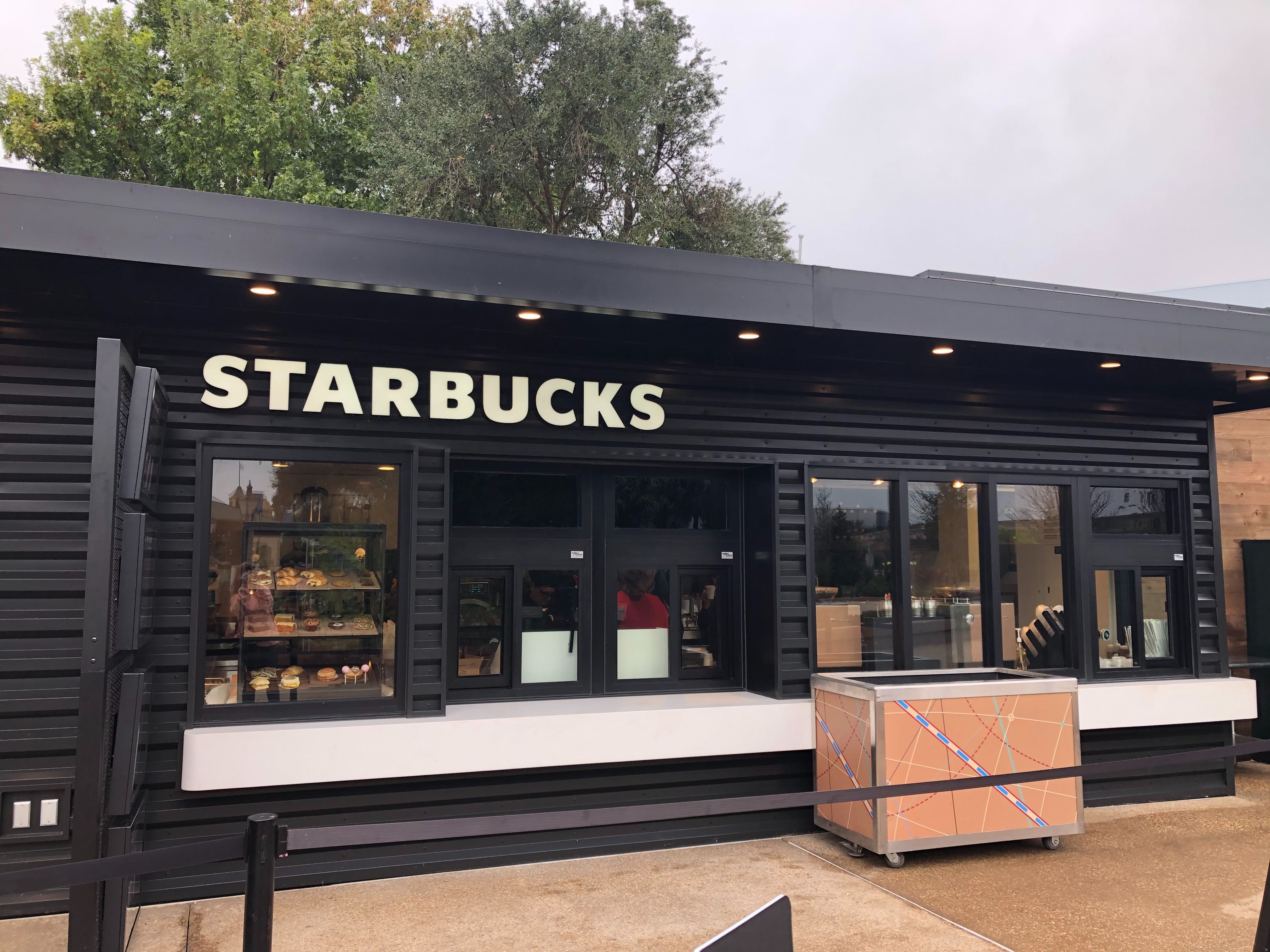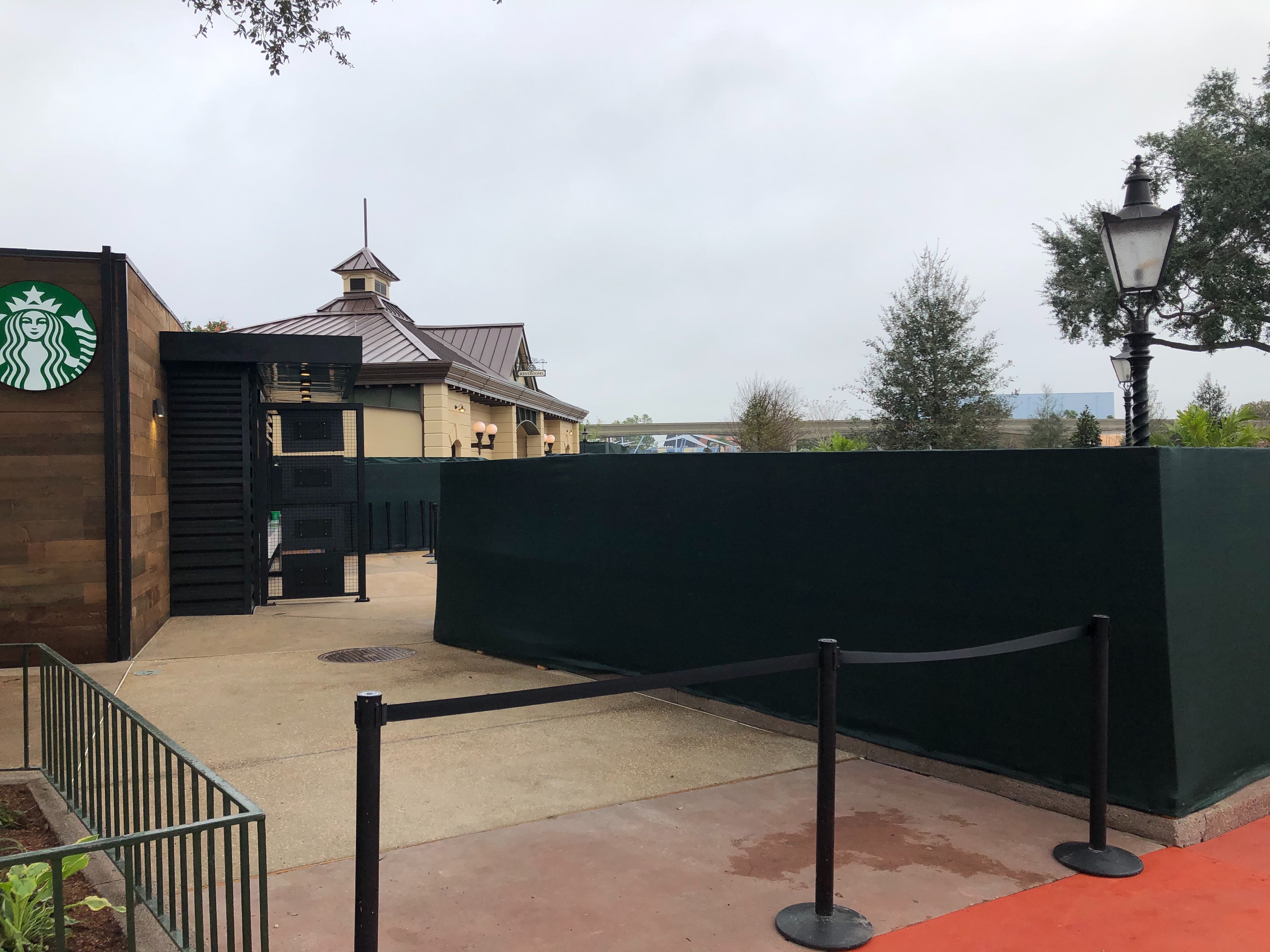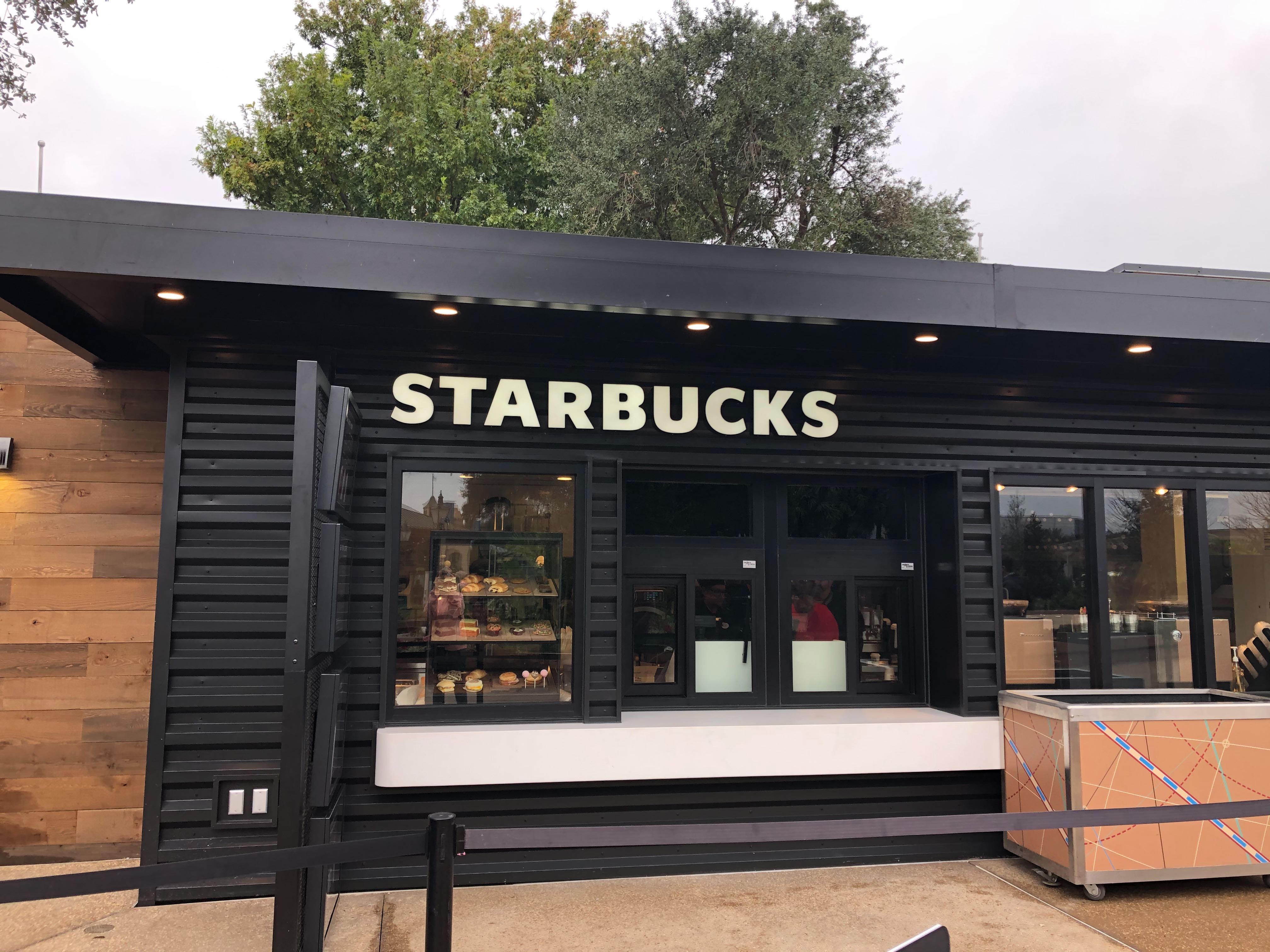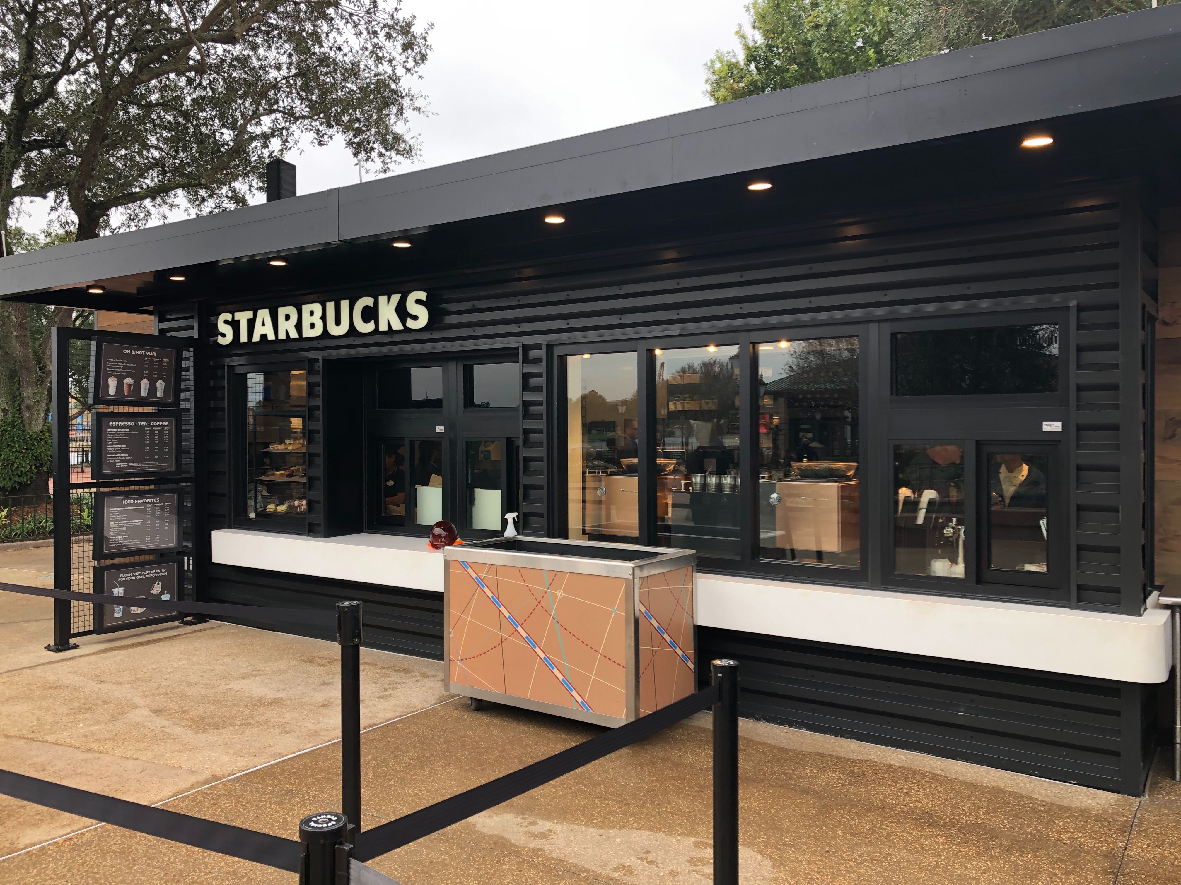 Starbucks’ former EPCOT location (Fountain View) closed in early September this year to make way for the new Festival Center and World Celebration, one of the park’s new neighborhoods. To fill the caffeine void, a “temporary” Starbucks location has been constructed on the Rose Walk pathway between Refreshment Port and the new restrooms near the entrance to World Showcase.