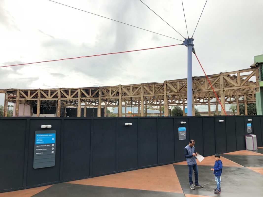 The building now stands completely bare, a jarring sight in plain view of guests. With no back walls or windows left, you can see right through the entire space to the other side of Future World.