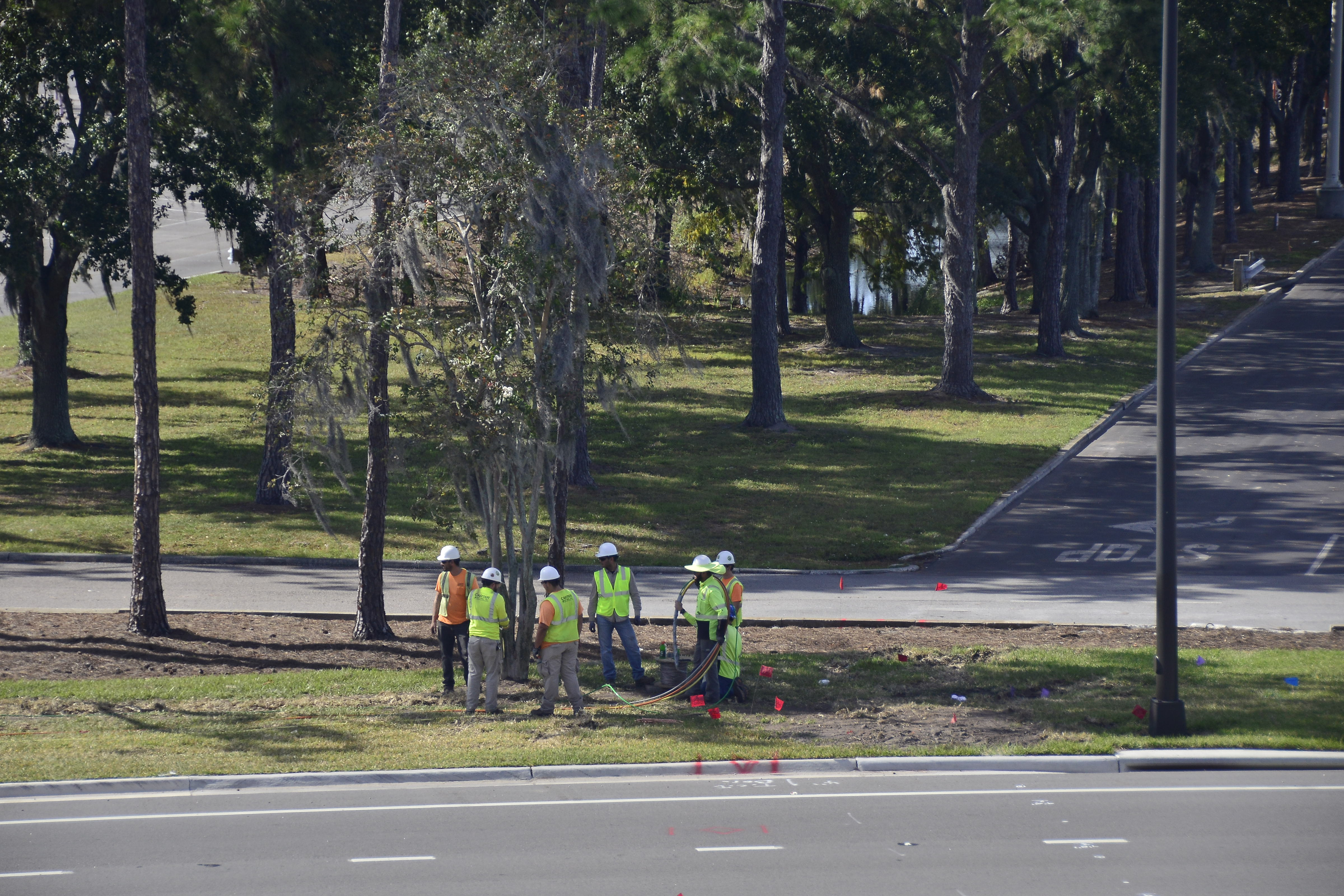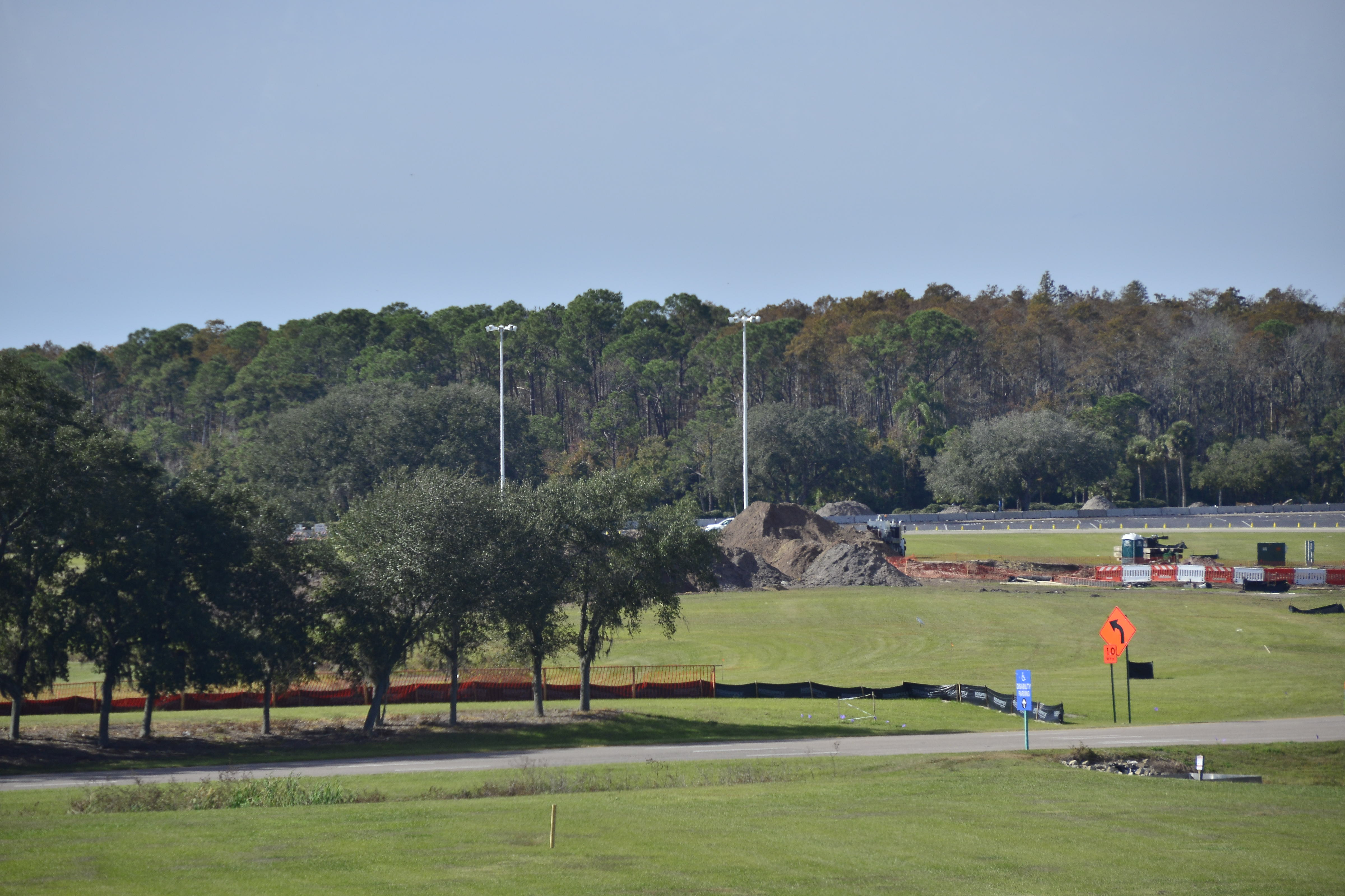 Total guess: That doesn’t look like “piping”. It looks like large gauge electrical cable. Maybe they’re building a new parking lot for electric cars (EVs). They have a couple chargers at each park’s parking lot but they’re almost always in use. With their push for sustainable energy an EV parking lot would be welcome. Also, the workers in the picture are wearing vests from “Carter Electric” – a large electrical contracting company in Orlando specializing in high voltage installations.