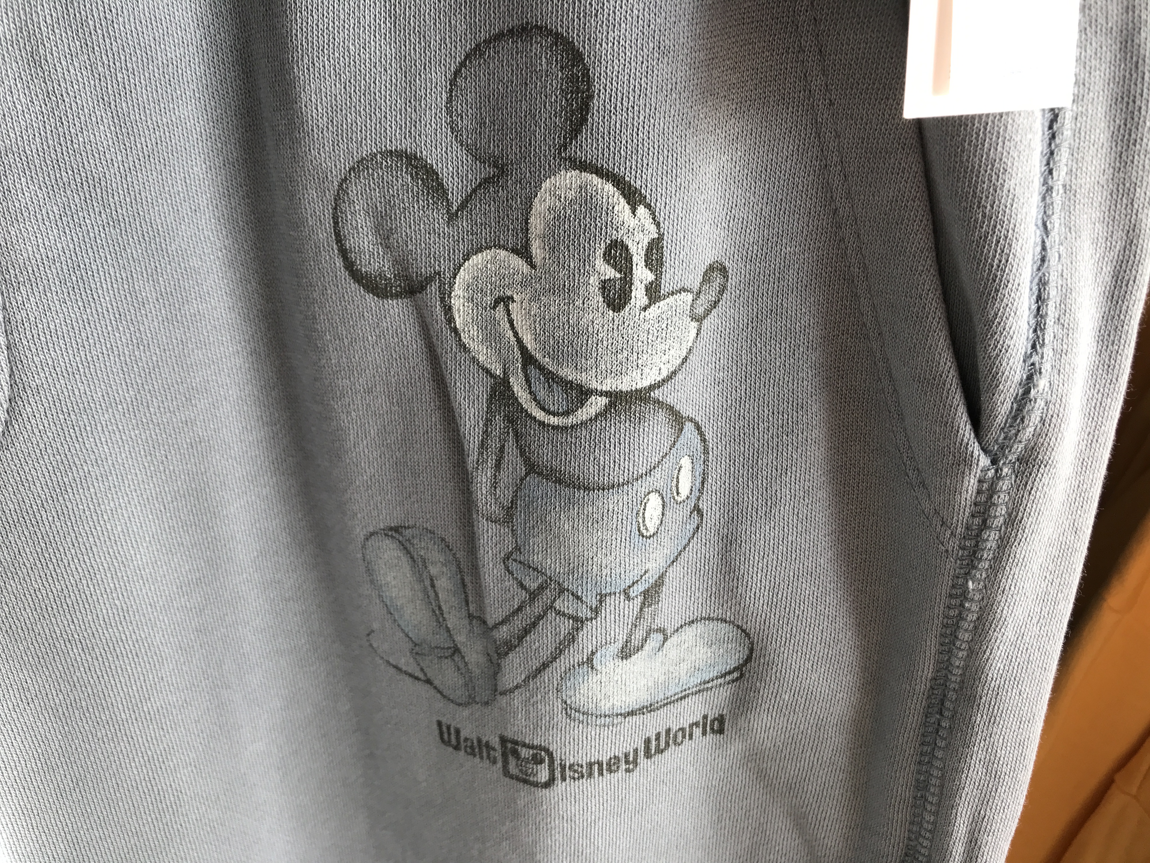 If you’re looking for something to relax in while you lay on the couch and binge Disney+, these faded blue sweatpants will do the trick. The sweatpants are jogger-style and feature an image of Mickey Mouse.