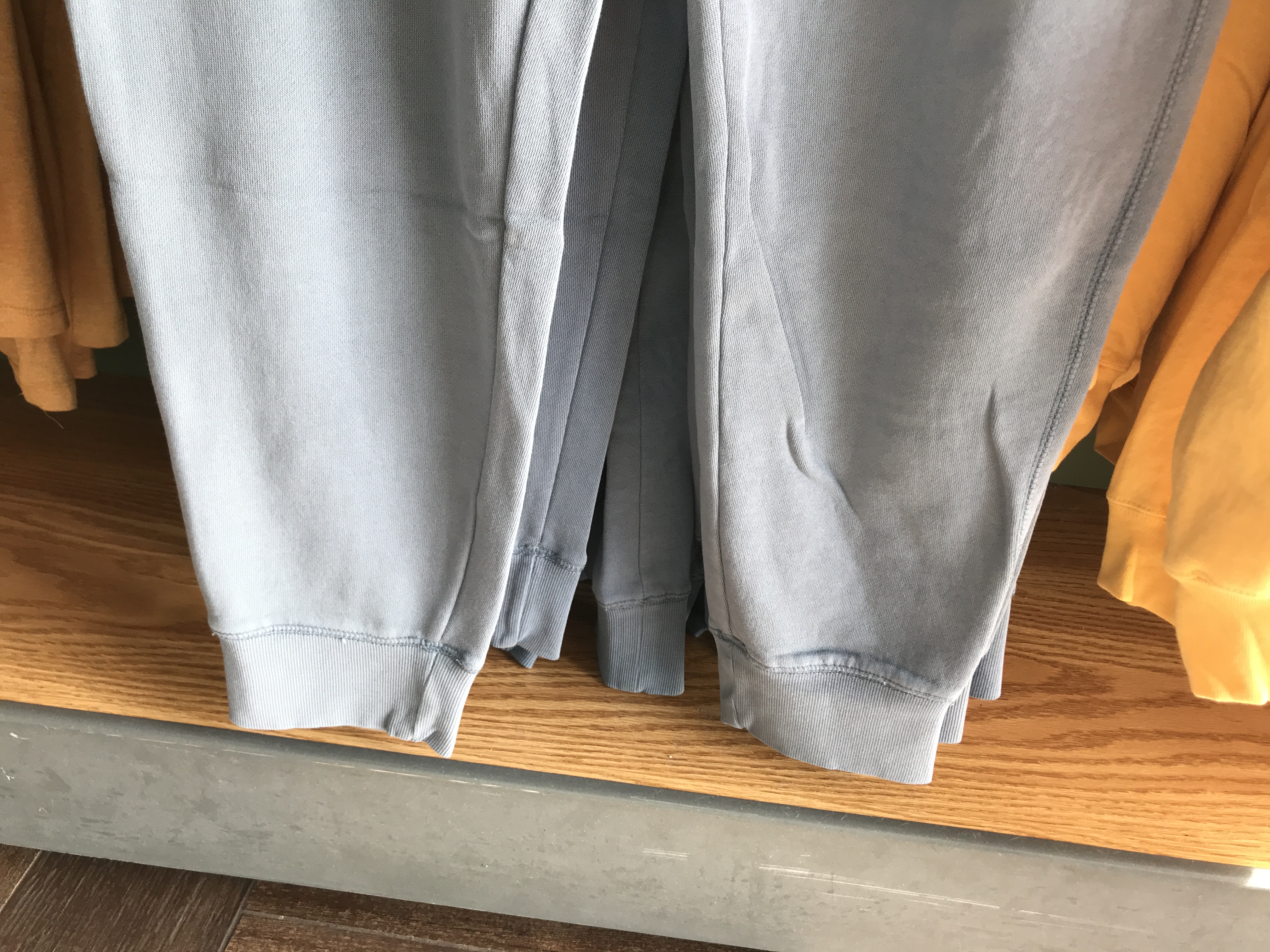 The bottom of the pants are cuffed around the ankles. These sweatpants are $44.99 and available at Port of Entry.