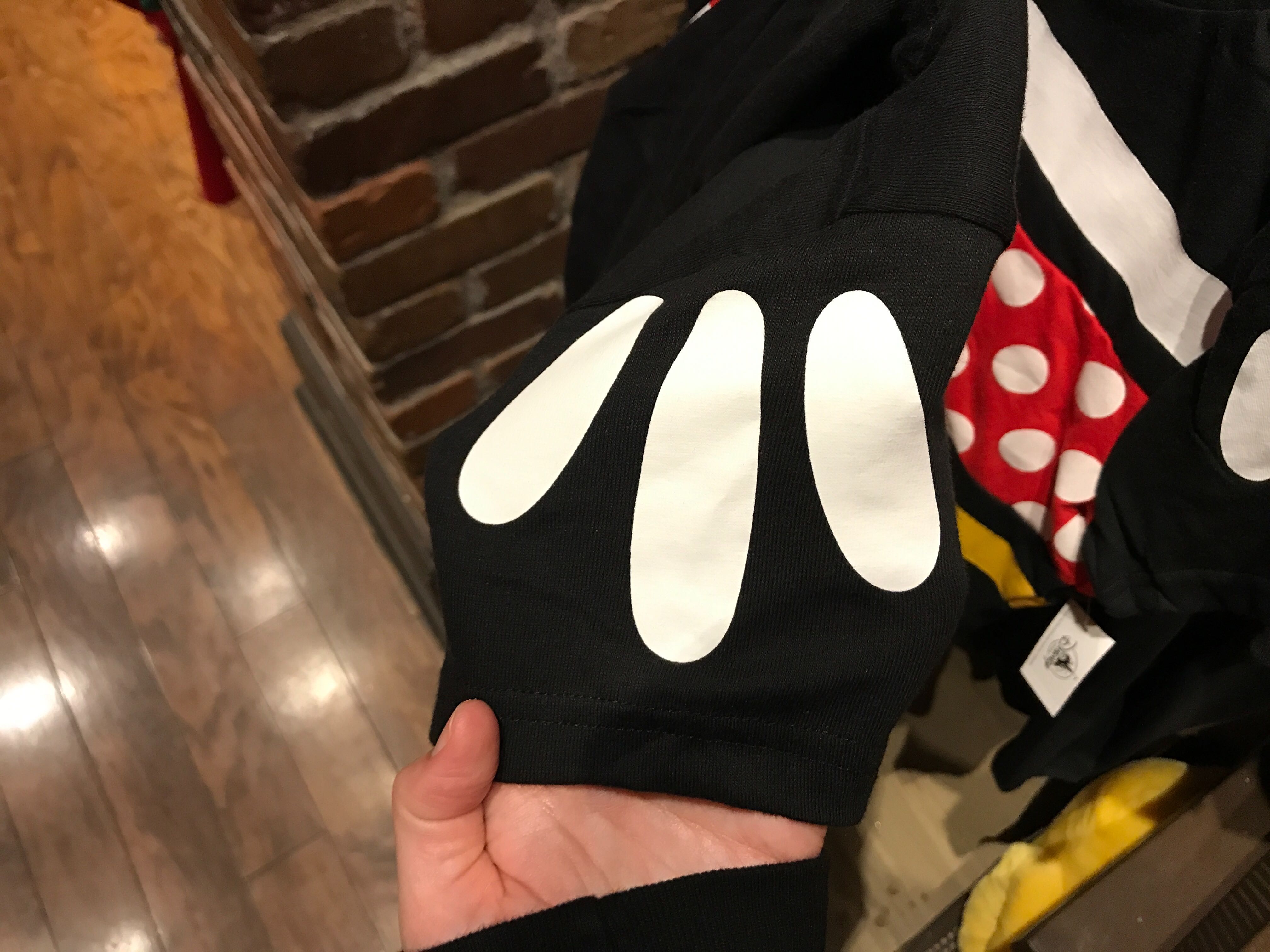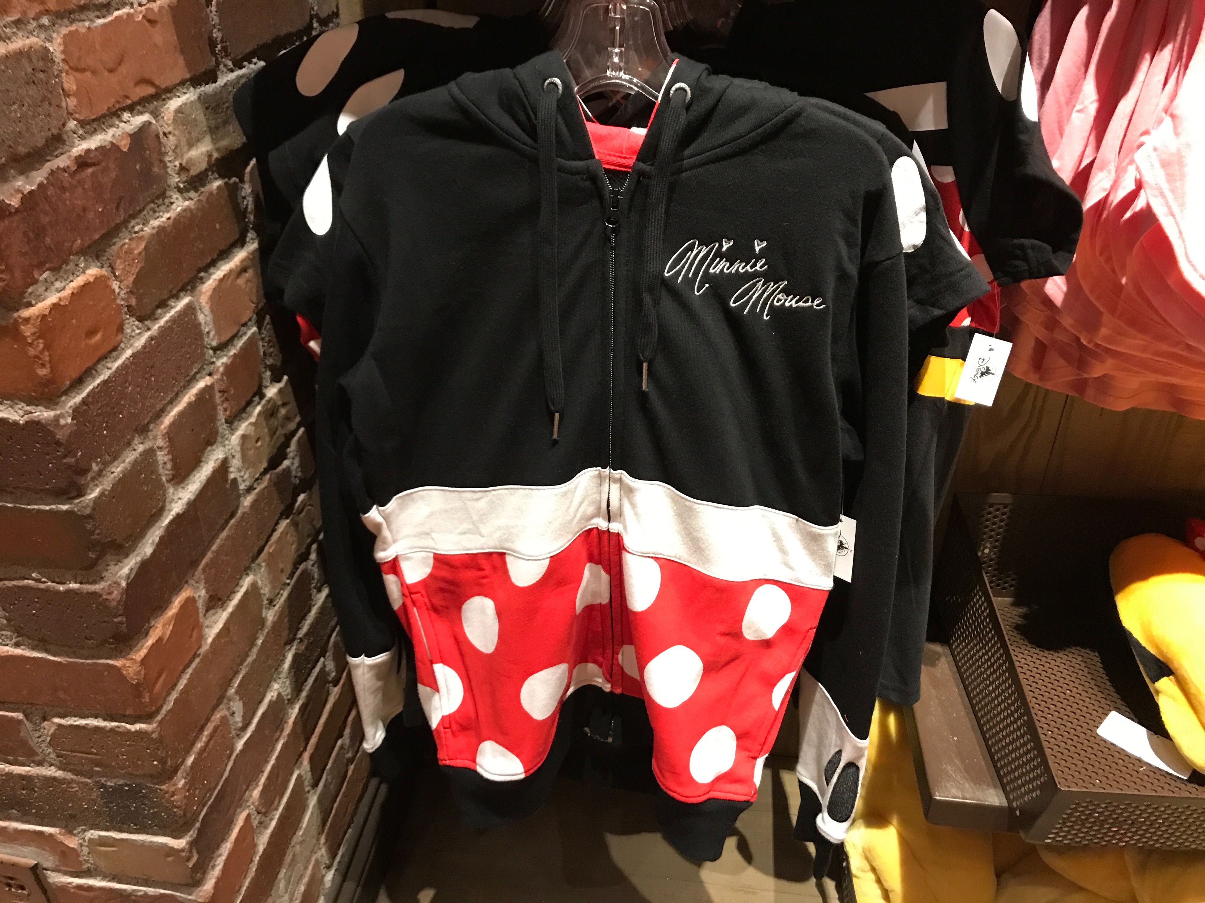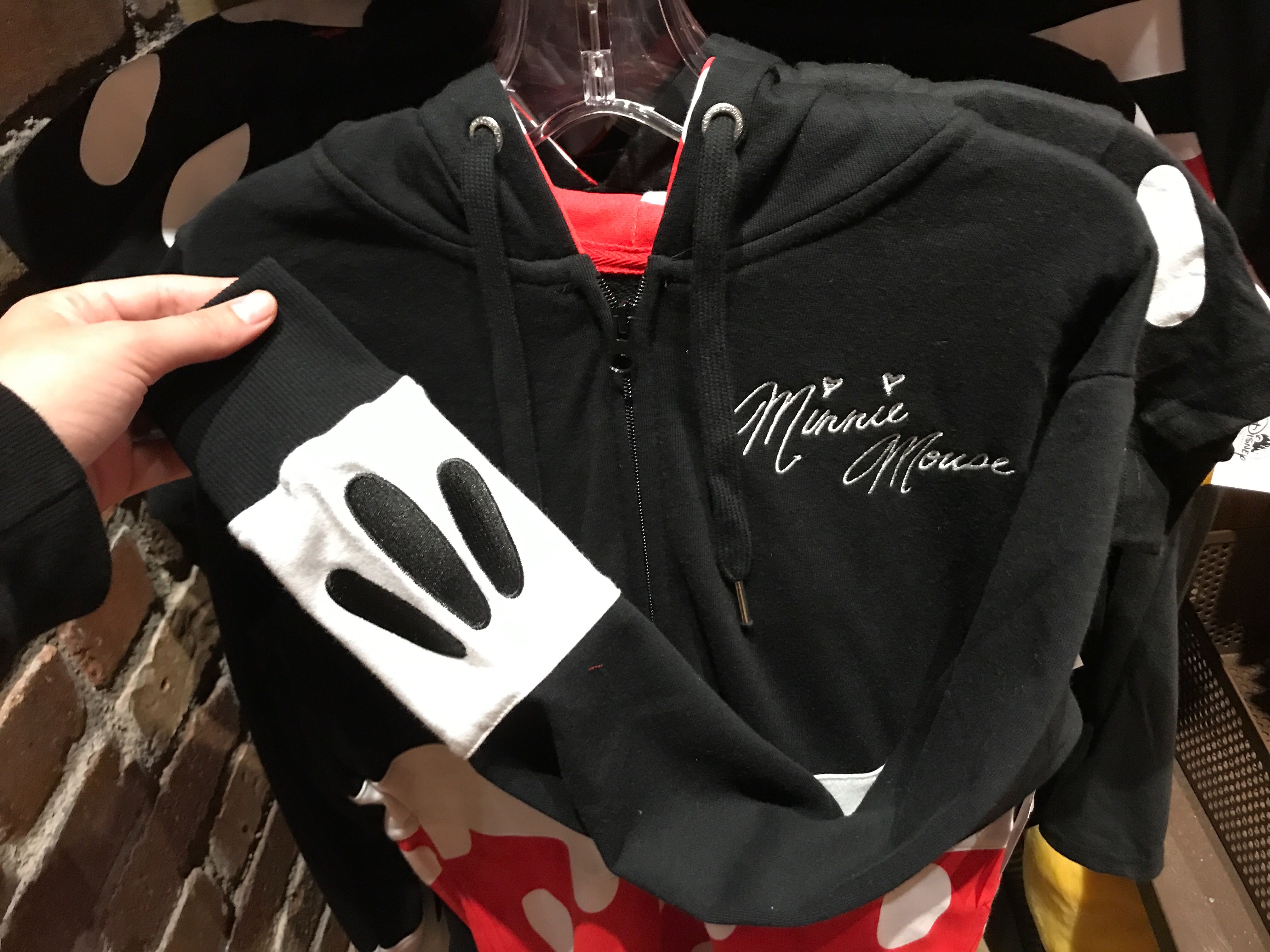 The bottom of the sleeves also feature the same pattern from the short-sleeved hoodie, which mimics Minnie’s white gloves.