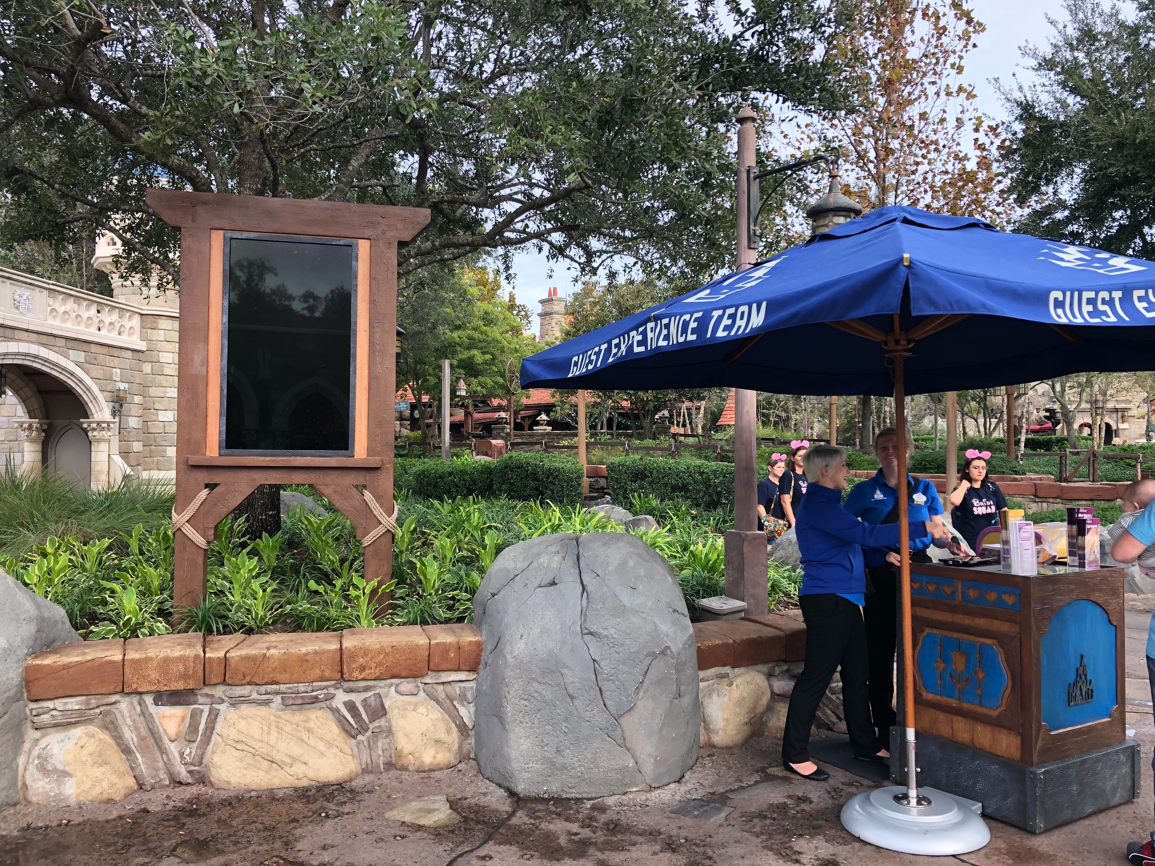 Over by Enchanted Tales with Belle, near the Guest Experience Team desk is a new wood-framed digital tip board.