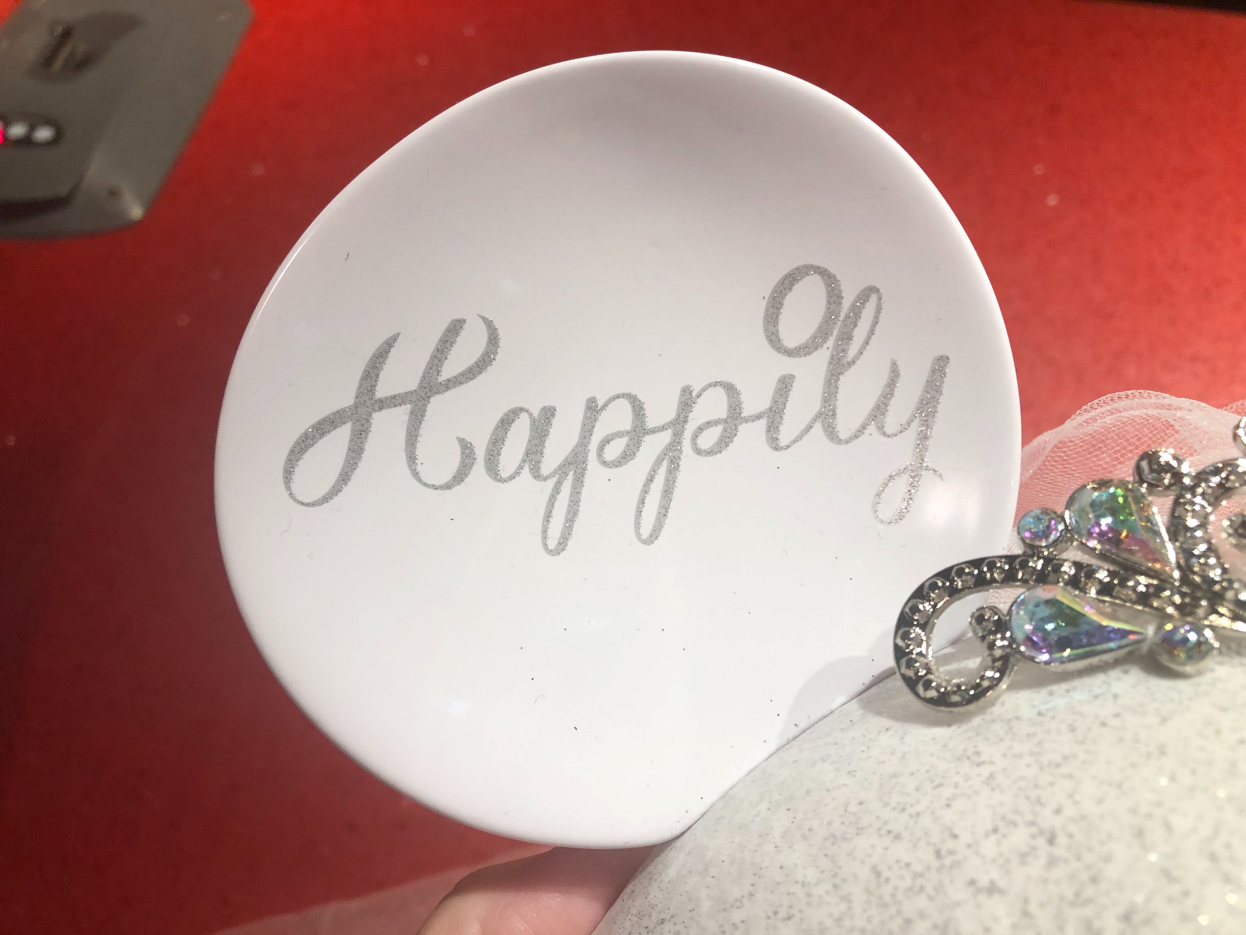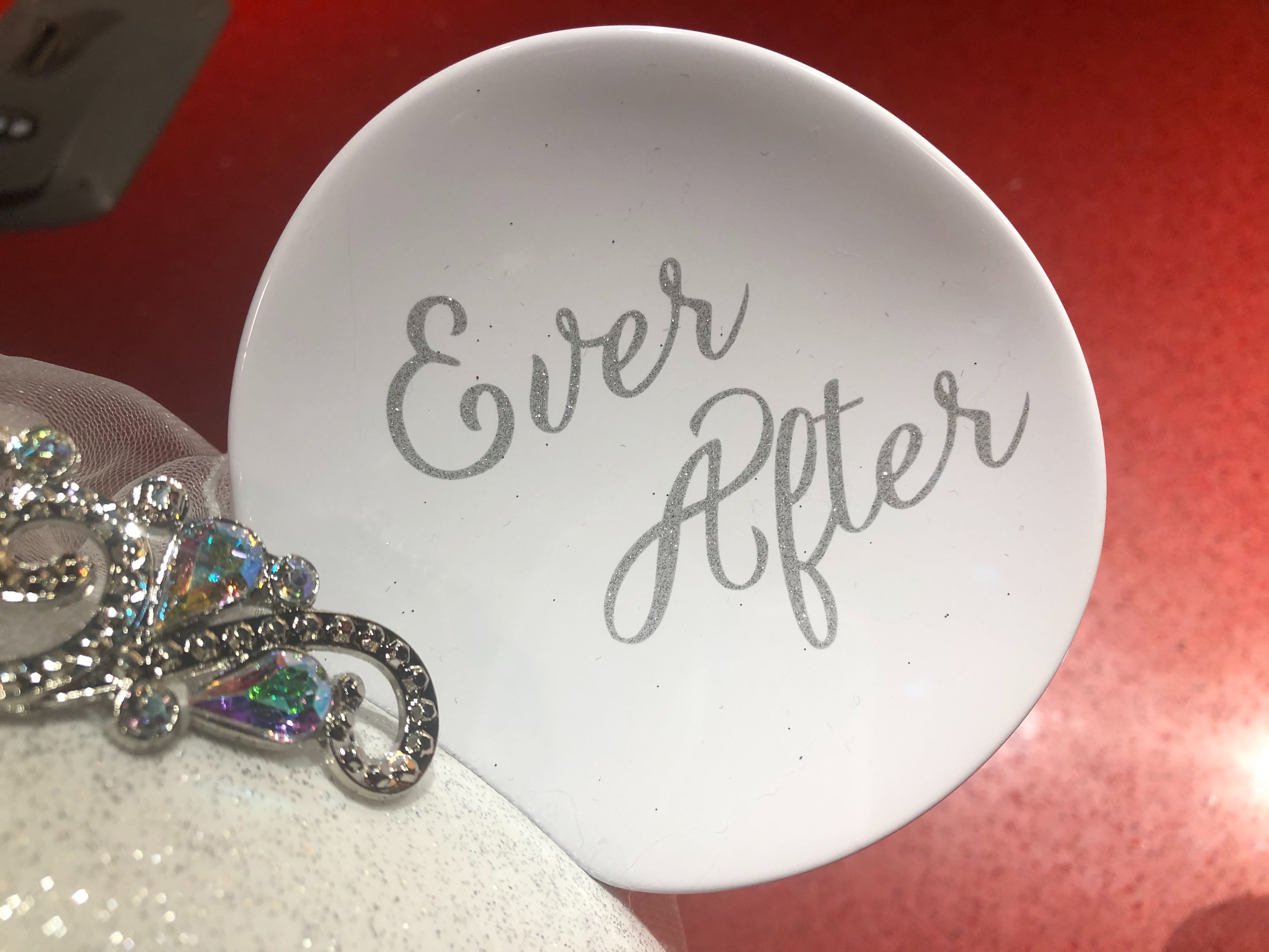 The ears are thin plastic, so they are a bit fragile. The lettering on the “H” in “Happily” looks like it’s missing the top portion of the letter. At first, we though it was scratched, but it’s the same on every pair. It honestly looks like a bit of a misprint and the glittering letter was slightly cut off. Maybe nobody will notice.