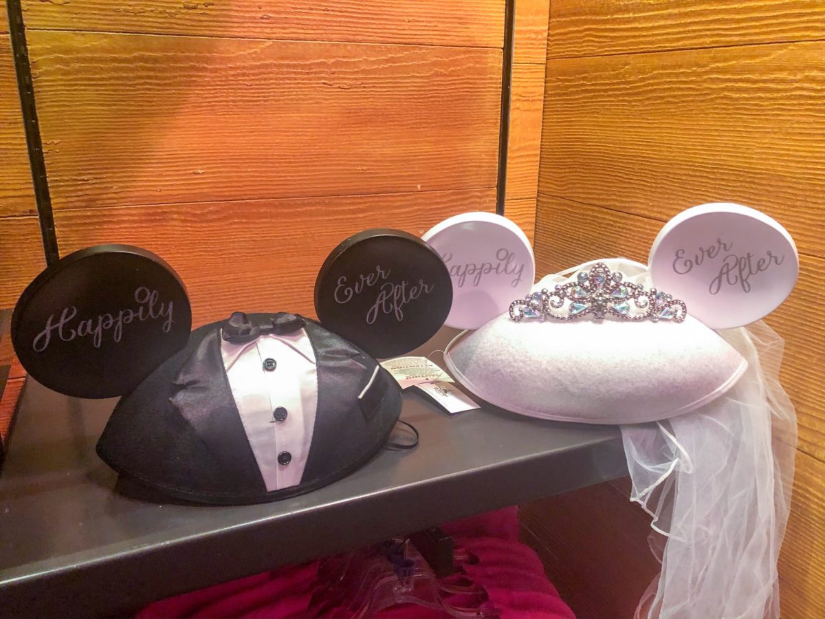 Here is a look at the older version of the bride and groom ear hats. These are still available around property, and even found the old pair and new pair on the shelves next to each other. They may phase out the older style, so if you’re not a fan of the new pair, be sure to grab the old ones while you can.