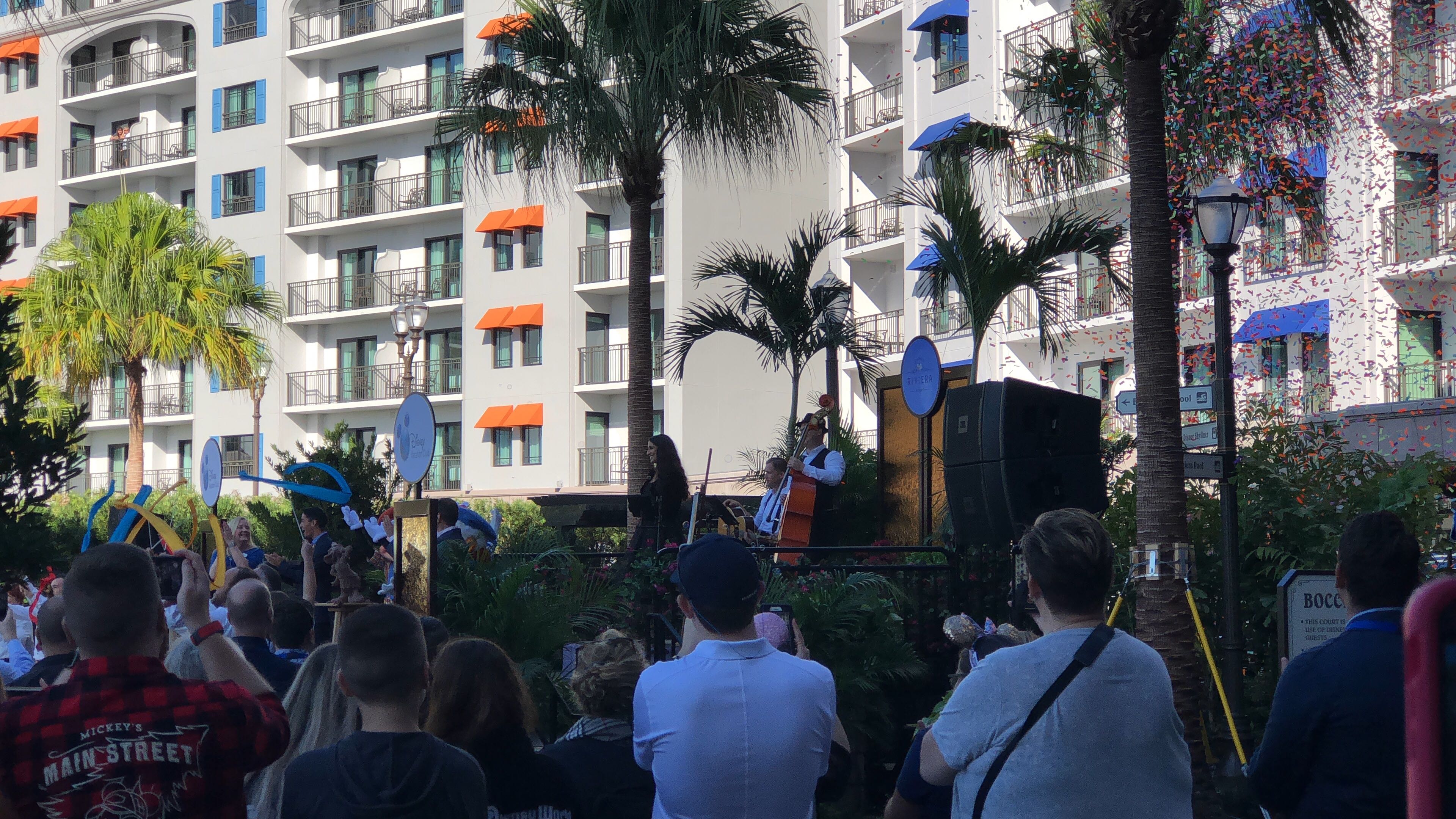 A large crowd turned out this morning to check out the beautiful new Disney Vacation Club resort. Musicians performed for guests as they awaited the start of the dedication ceremony.
