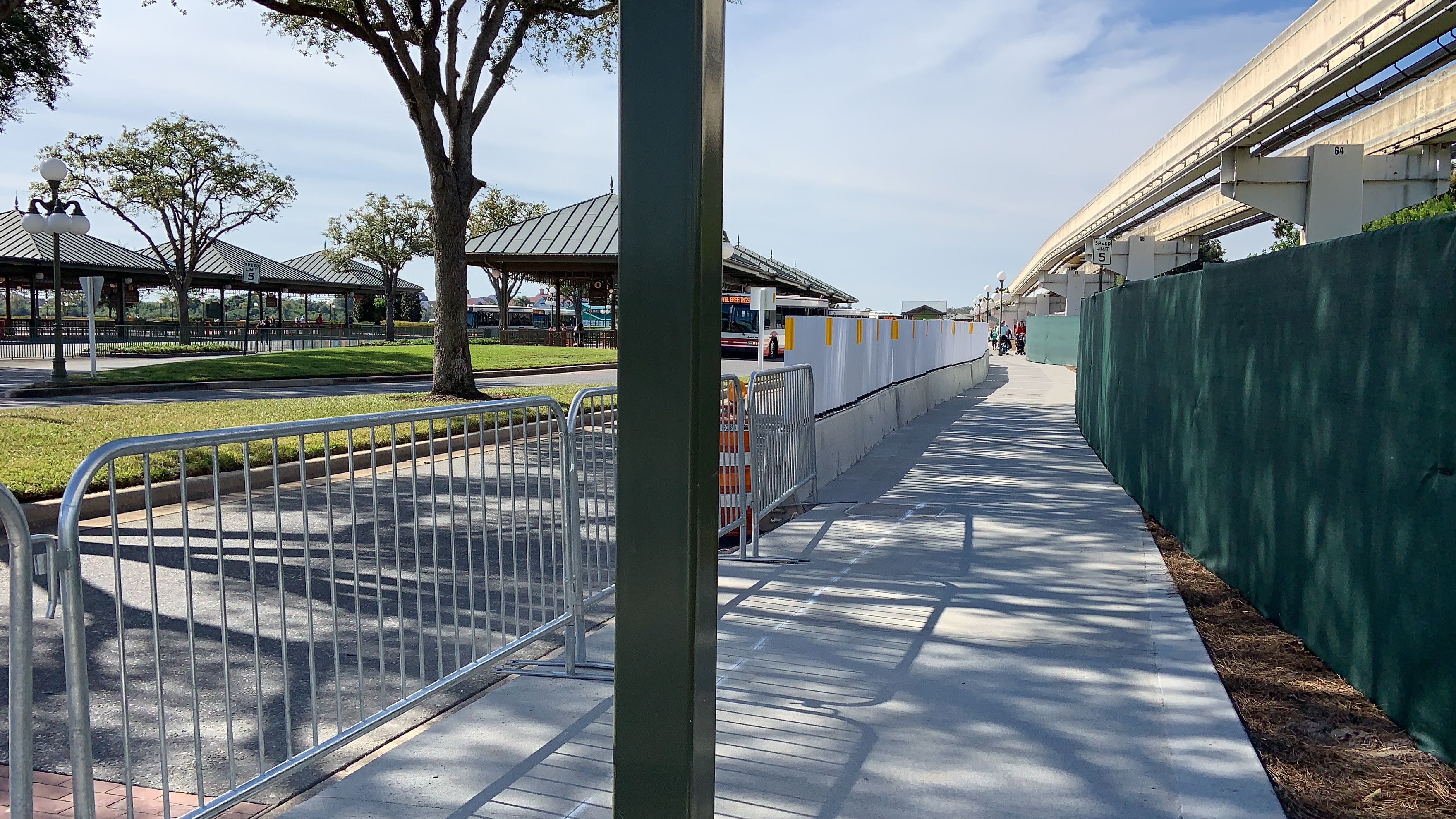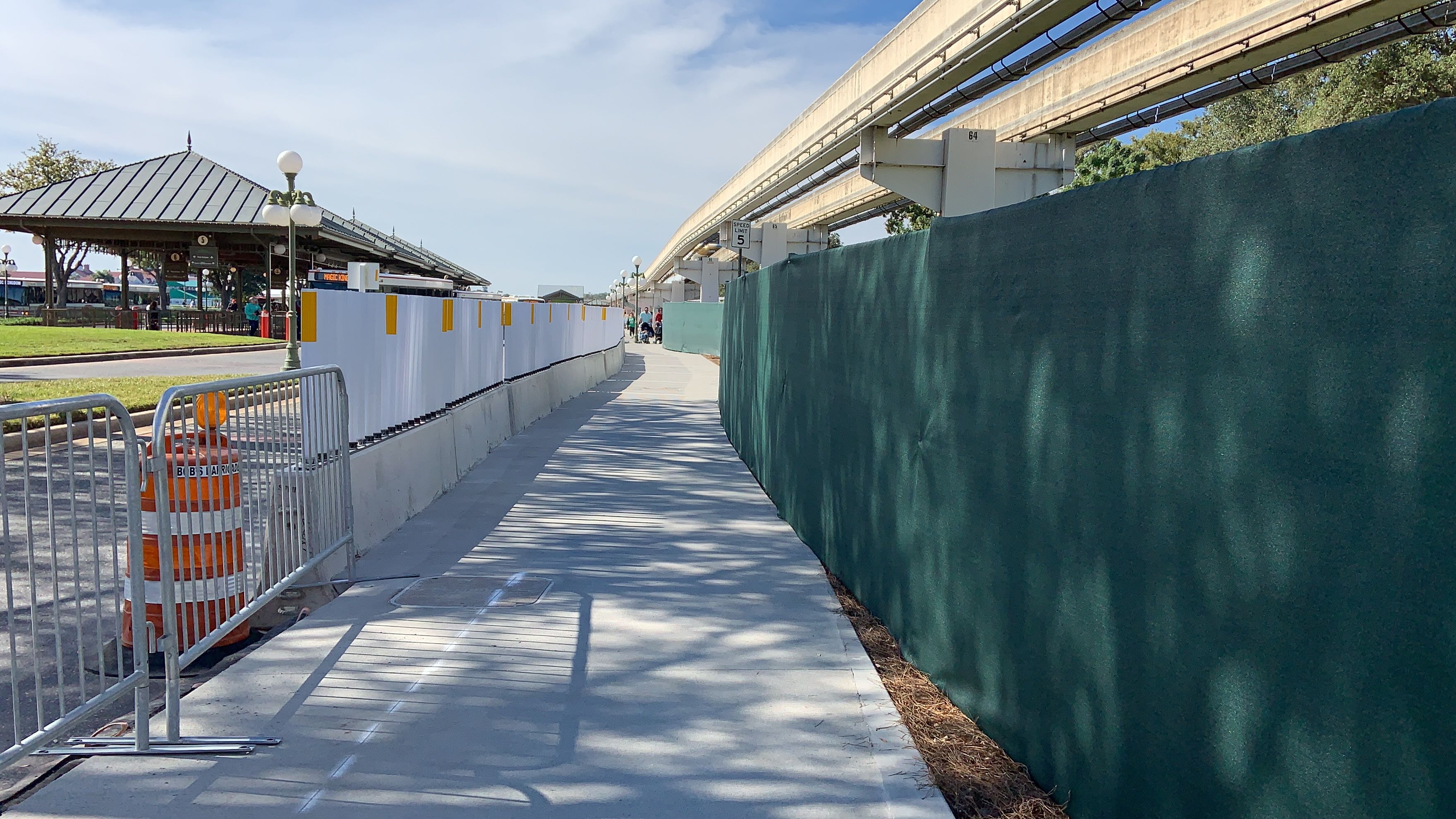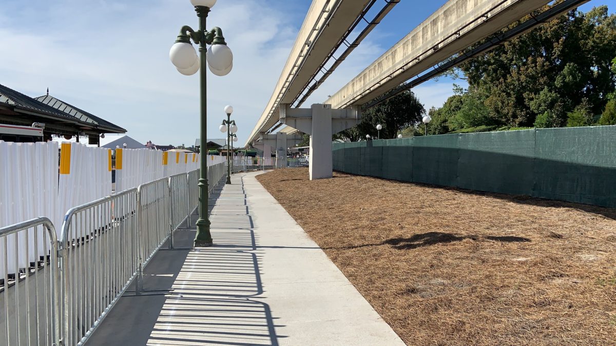 Guests looking to use the walkway leading from Disney’s Contemporary Resort to the Magic Kingdom will notice that a new sidewalk has just opened for guests to use. Construction on the new walkway began back in early November as part of an extension of the current arrival experience enhancements taking place at the entrance to the park, and may be a temporary solution while the new permanent security checkpoint is being built. Let’s take a walk down the path and check out the current state of things.