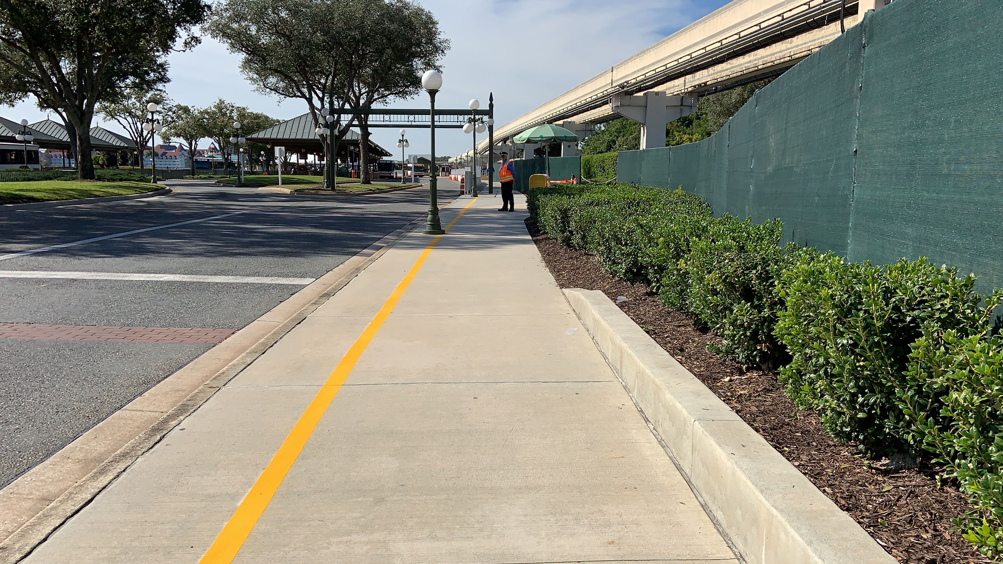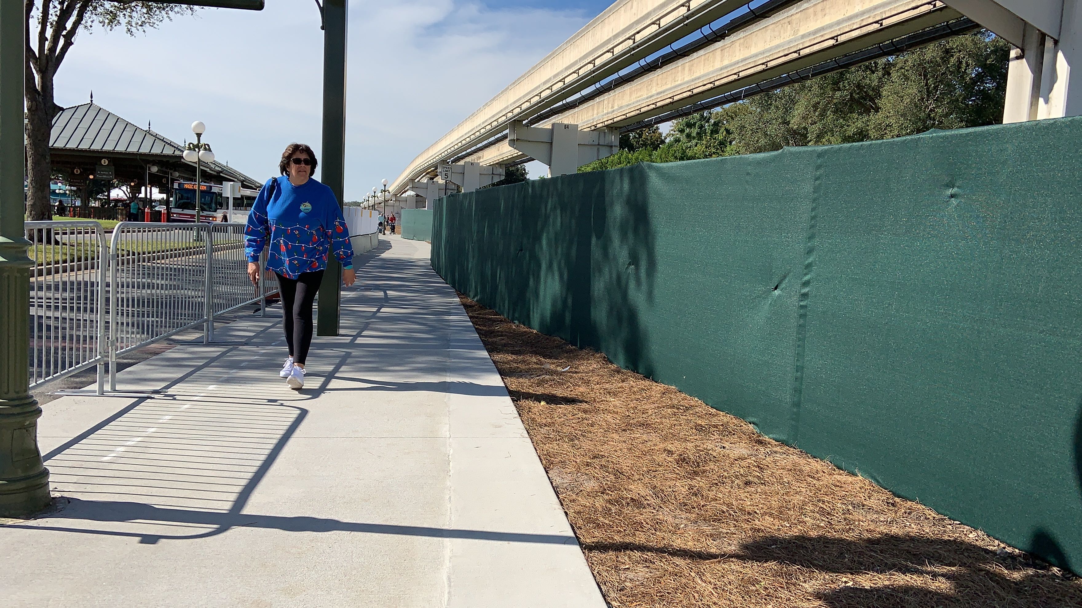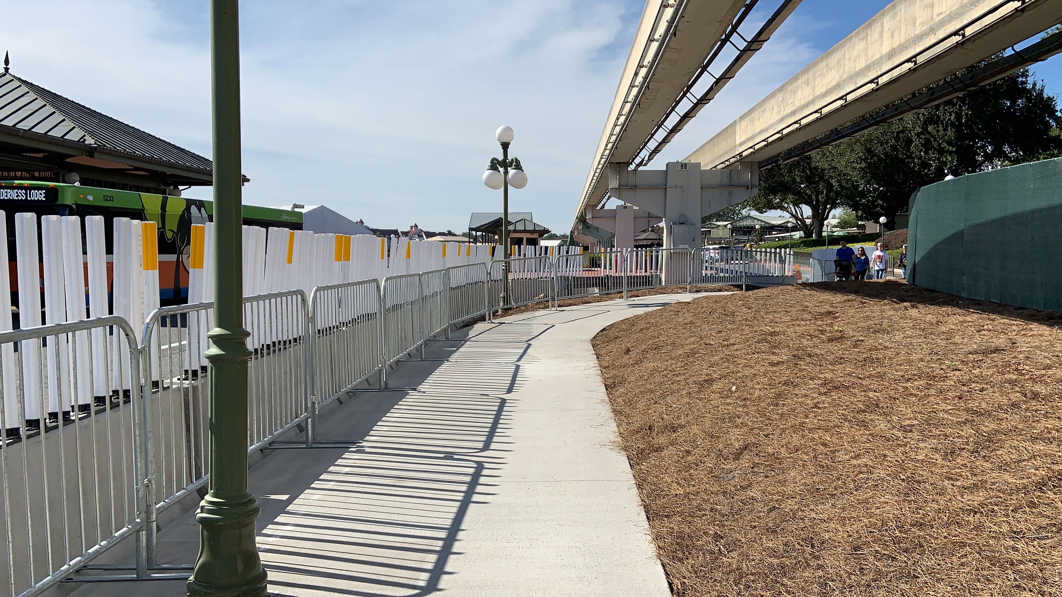 Guests looking to use the walkway leading from Disney’s Contemporary Resort to the Magic Kingdom will notice that a new sidewalk has just opened for guests to use. Construction on the new walkway began back in early November as part of an extension of the current arrival experience enhancements taking place at the entrance to the park, and may be a temporary solution while the new permanent security checkpoint is being built. Let’s take a walk down the path and check out the current state of things.