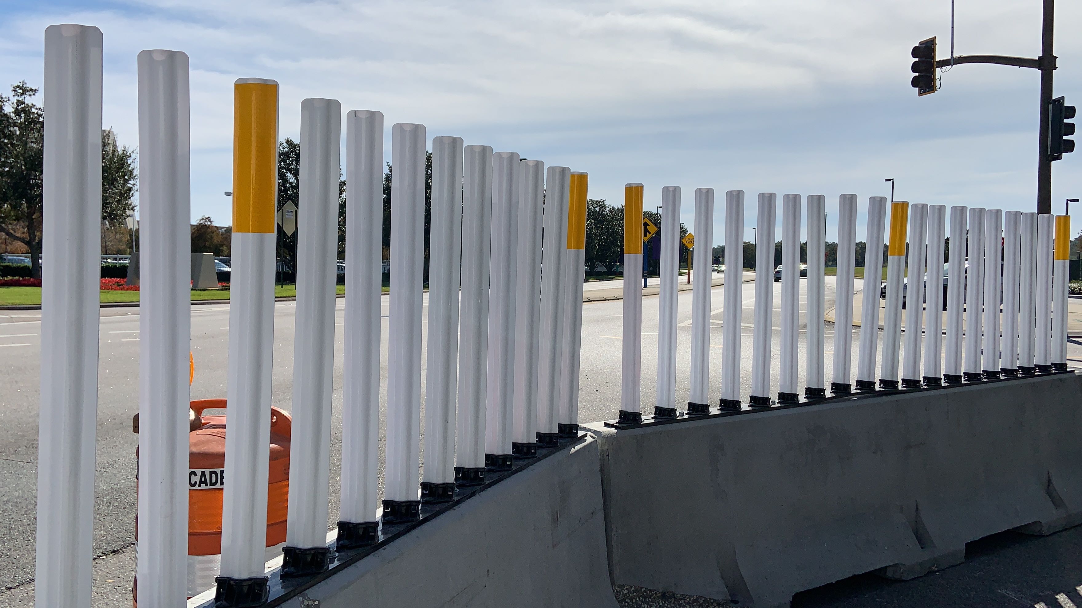 The fencing doesn’t reach all the way down, though. This area leading to the security checkpoint just has barricades.