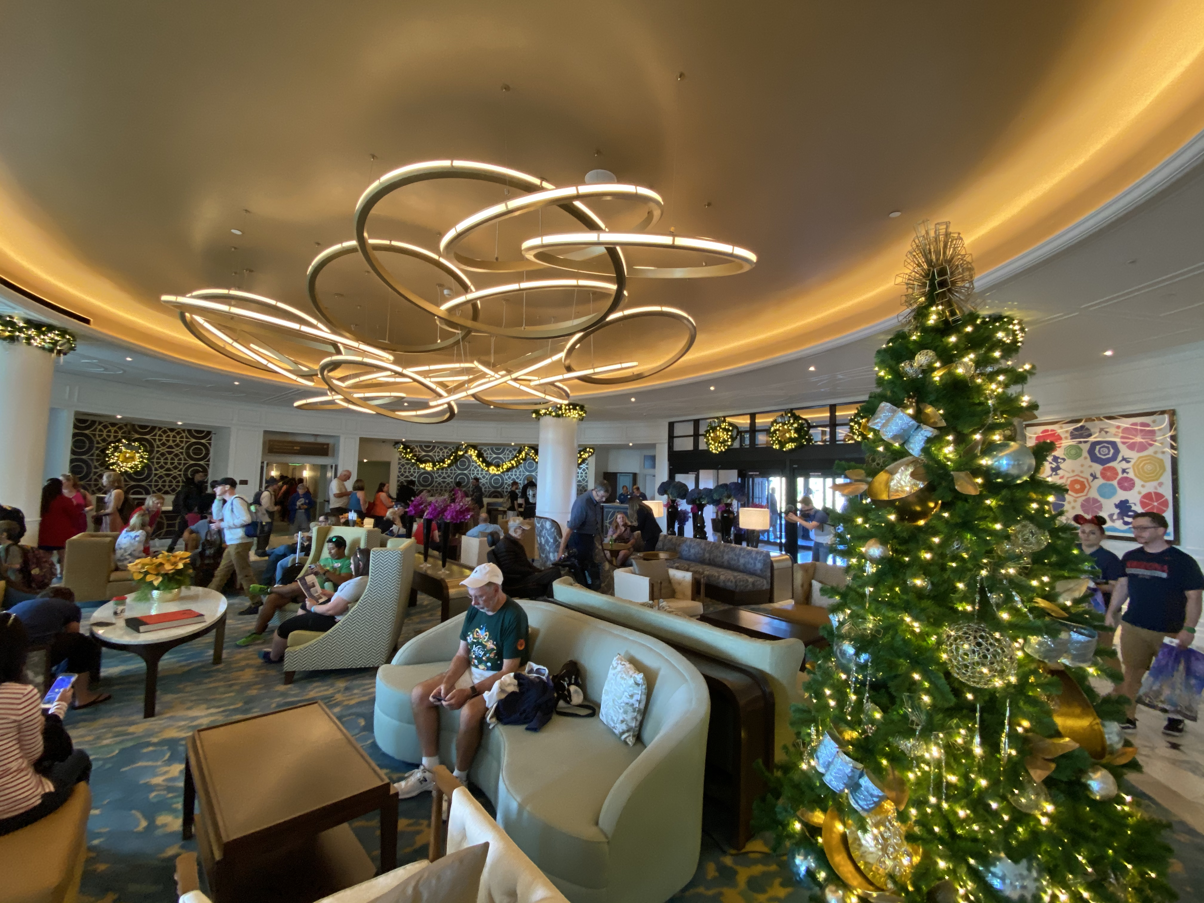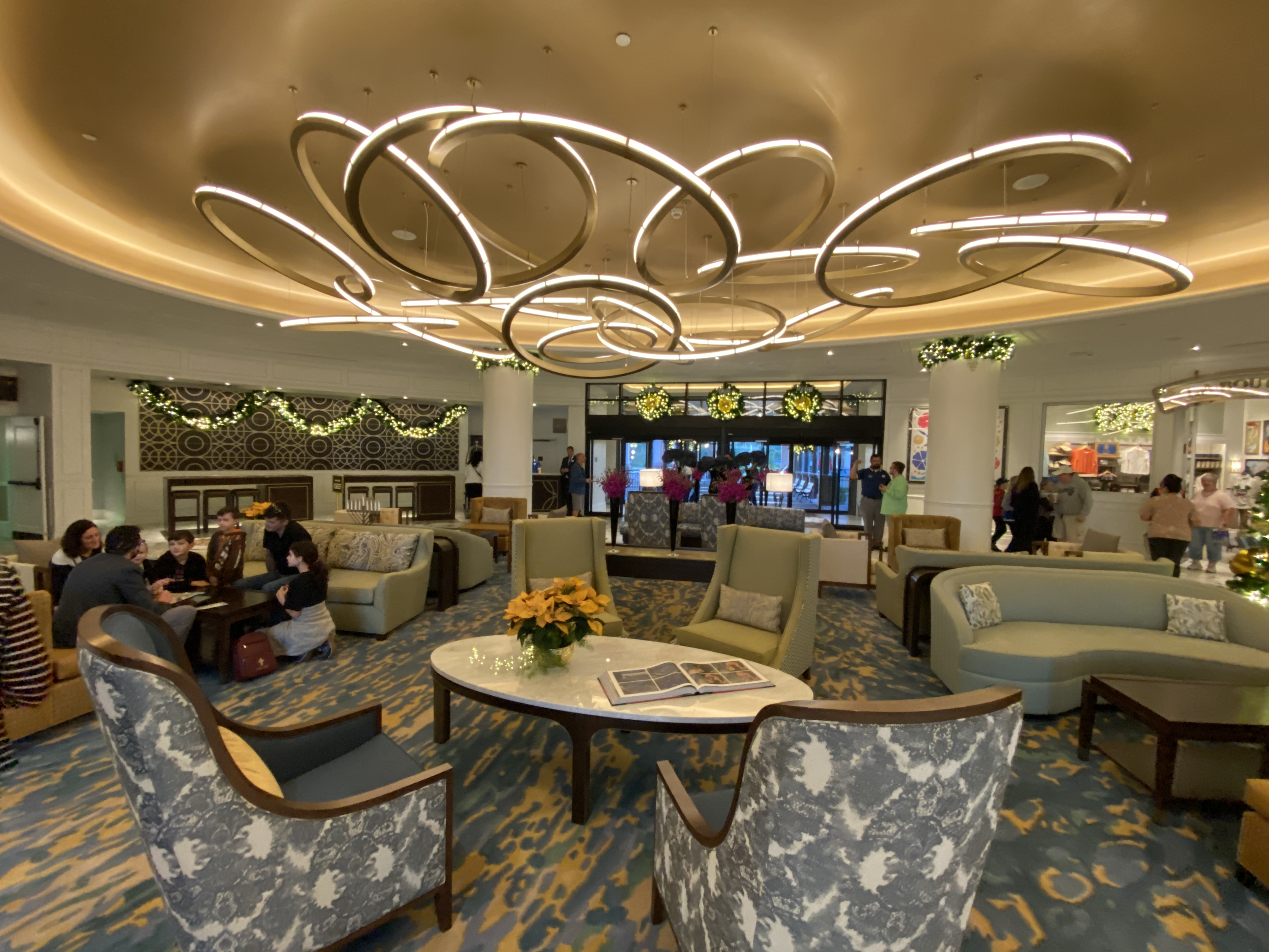 The small, yet intimate lobby is decked out for the holidays, with plenty of garland, wreaths, a menorah, and even a Christmas tree.