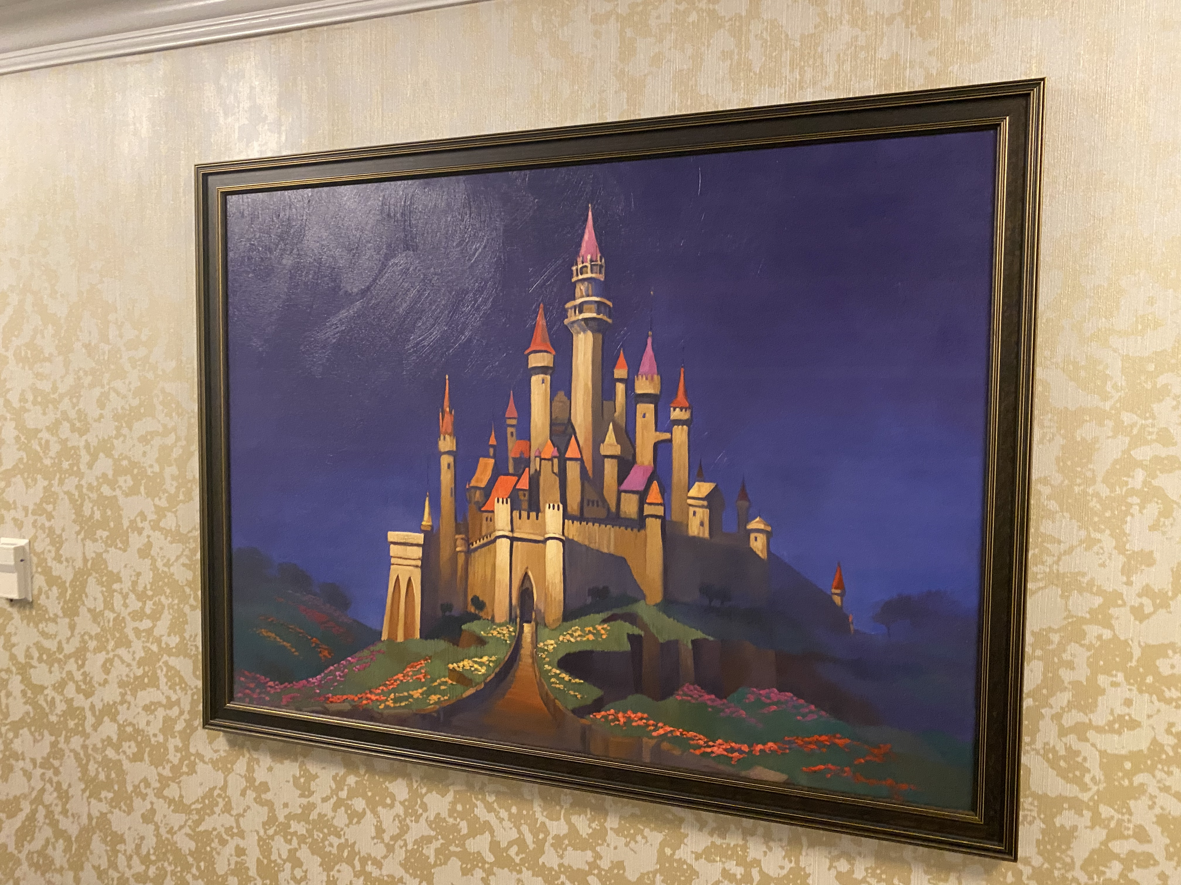 As you walk down the halls, the walls are lined with beautiful Disney artwork (available for purchase at the Art on Demand kiosk in La Boutique on the second floor lobby) and fancy French moulding.