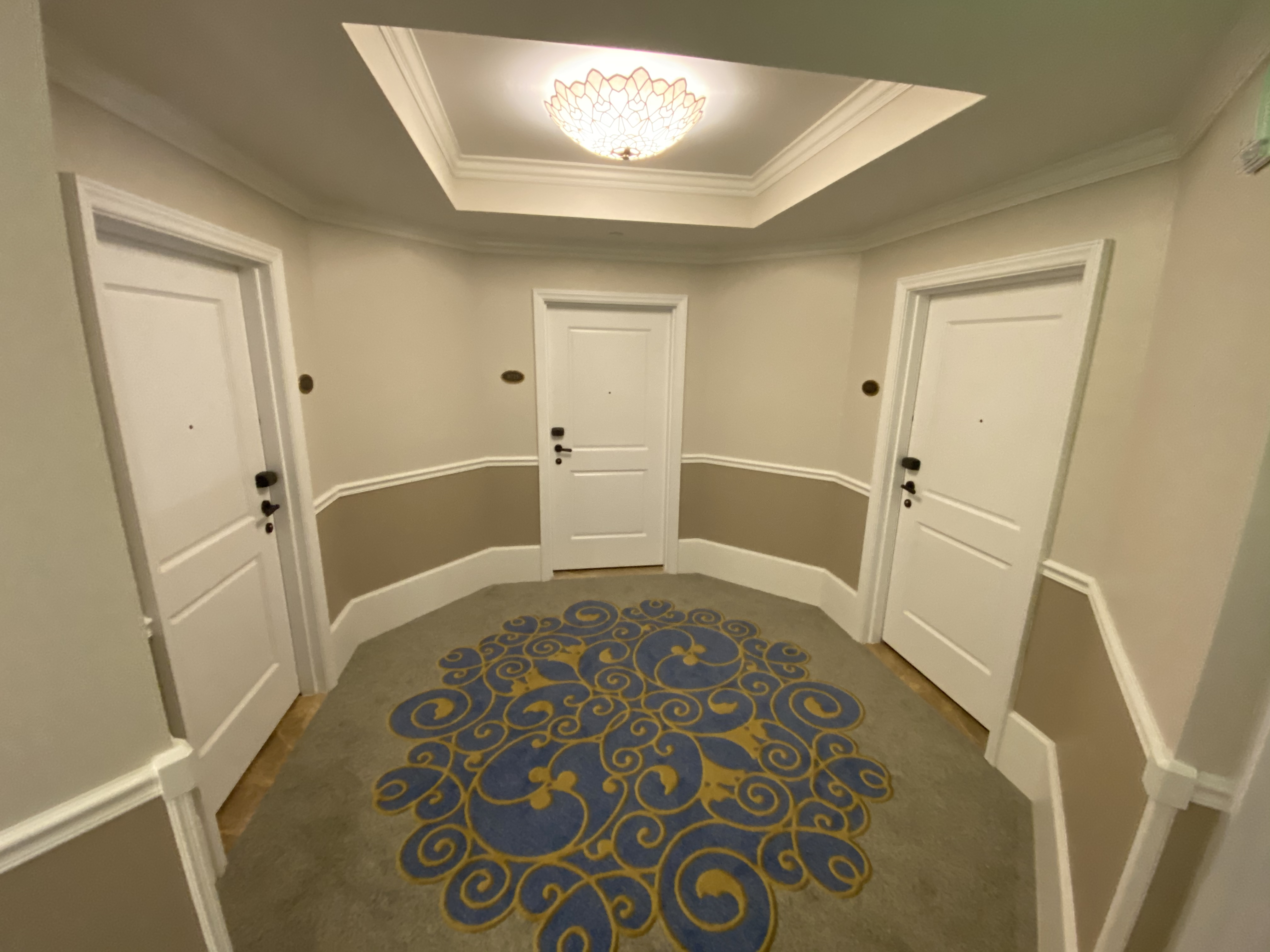 Hallways housing Tower Studios lead out to circular bays with three doors, each leading to a separate Tower Studio. There are also a set of handicap accessible Tower Studio rooms––if you’ve stayed at one, feel free to let us know! It’ll be interesting to see how they managed to meet clearance codes within such a tight space.