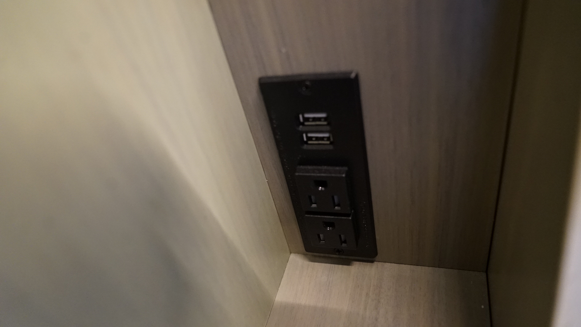 These cubbies also feature USB ports and electrical sockets, making them ideal for charging your phone overnight and keeping a book, ear plugs, and maybe even a bottle of water handy.