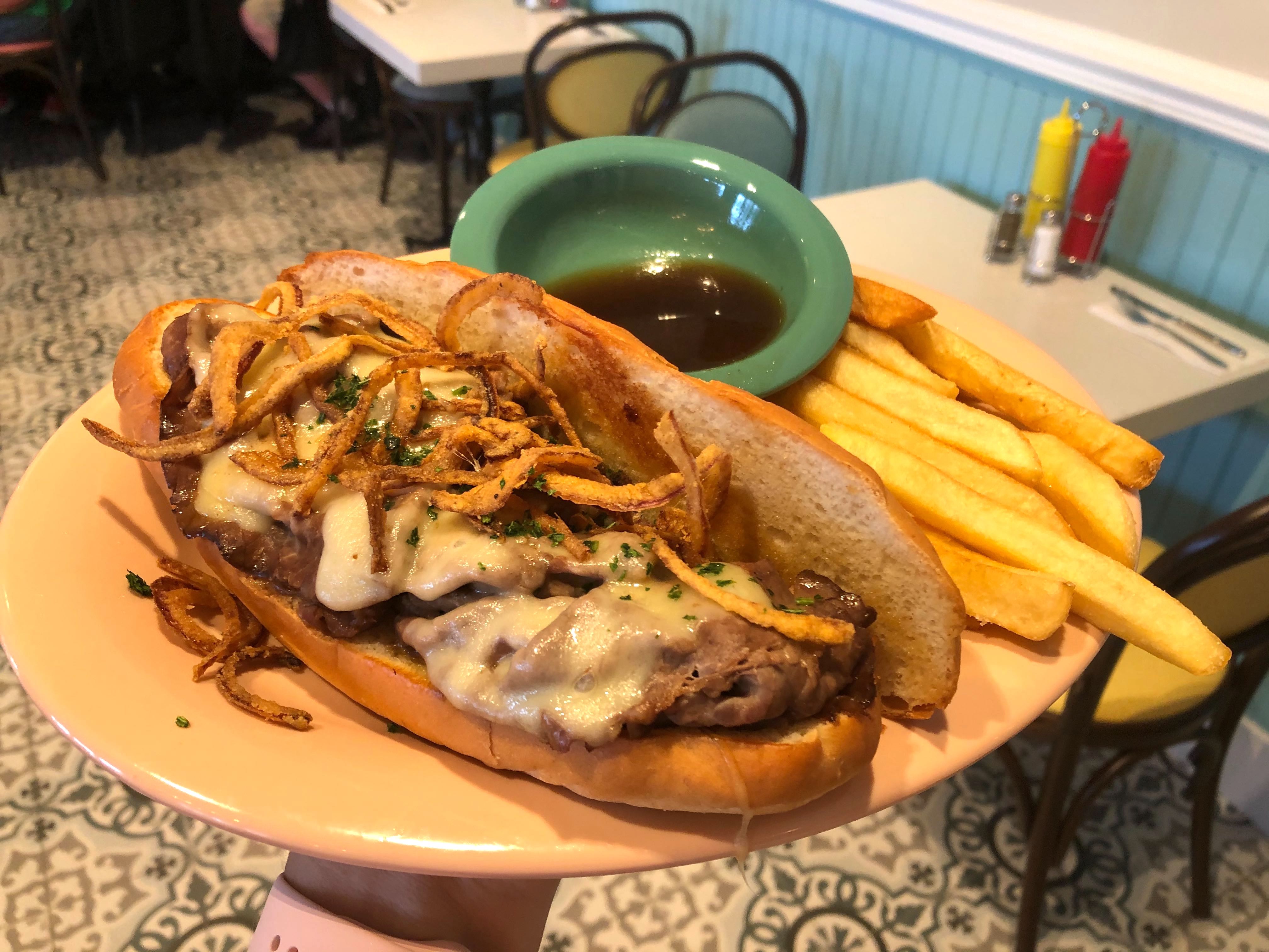 The French dip is fantastic. The roll is so soft on the outside and just slightly grilled on the inside. The meat is topped by cheese and crispy onion straws.