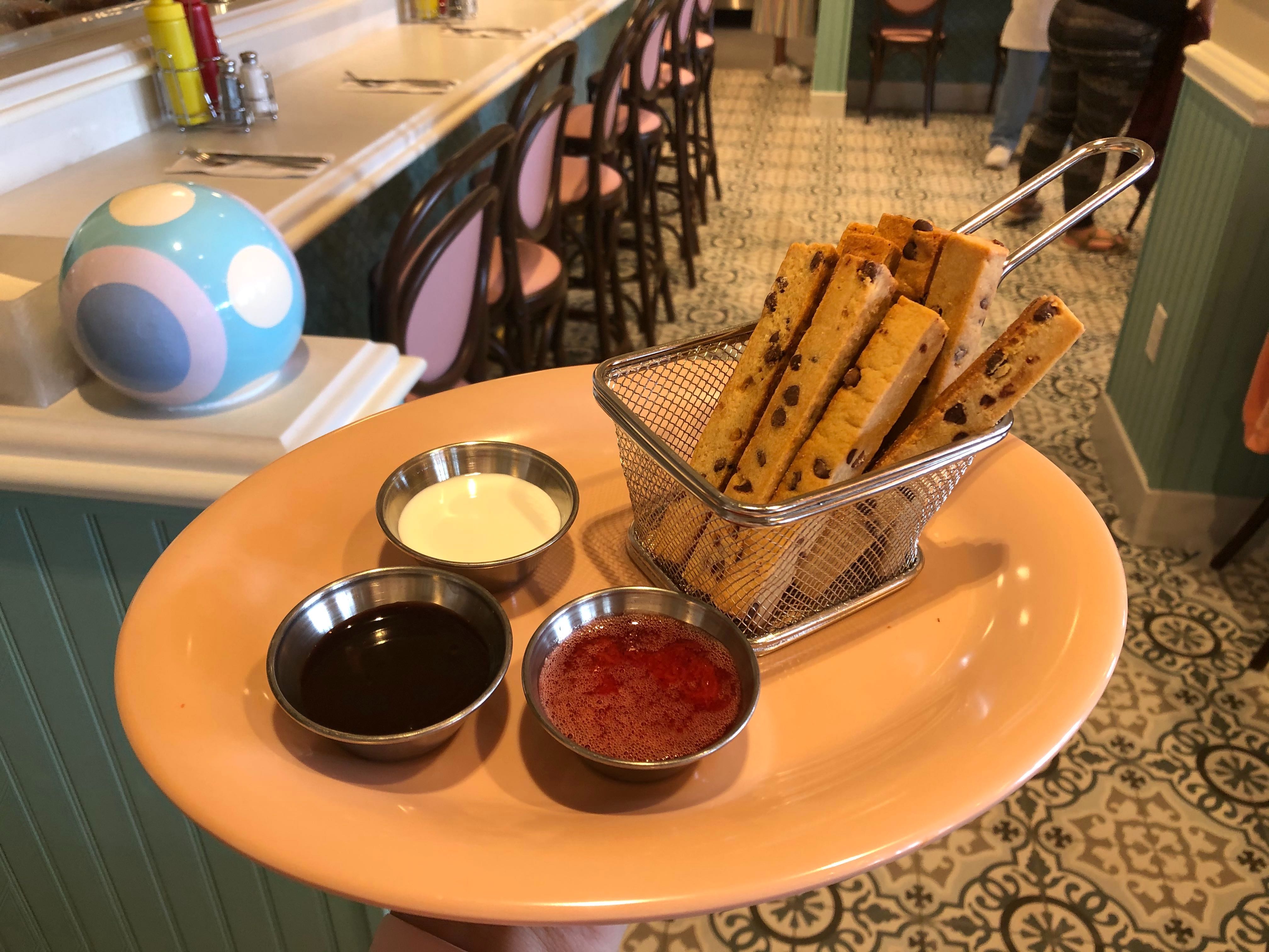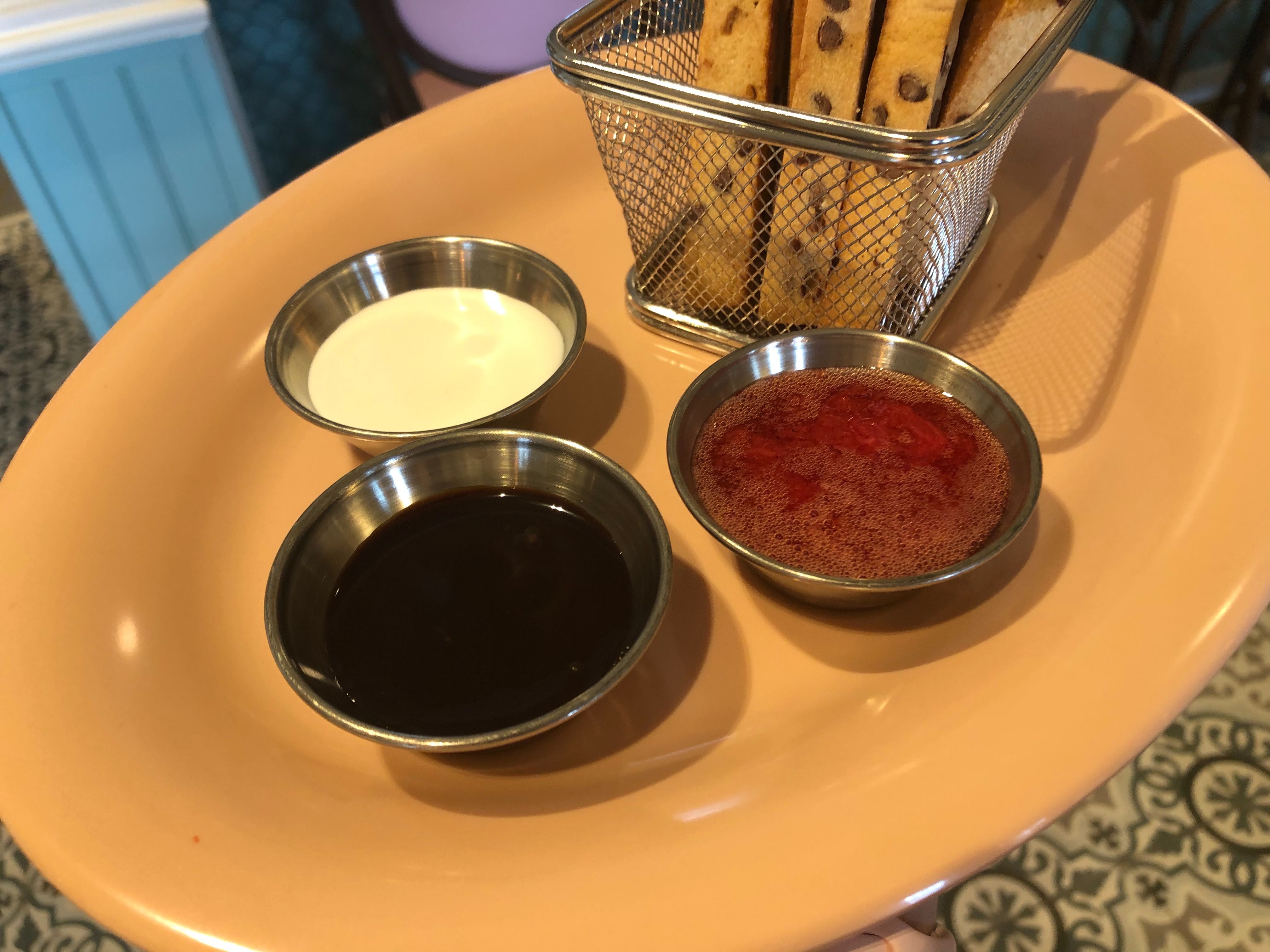 Okay, they’ve knocked it out of the park with this dessert. Last thing on our table was the cookie fries, which come with three dipping sauces.