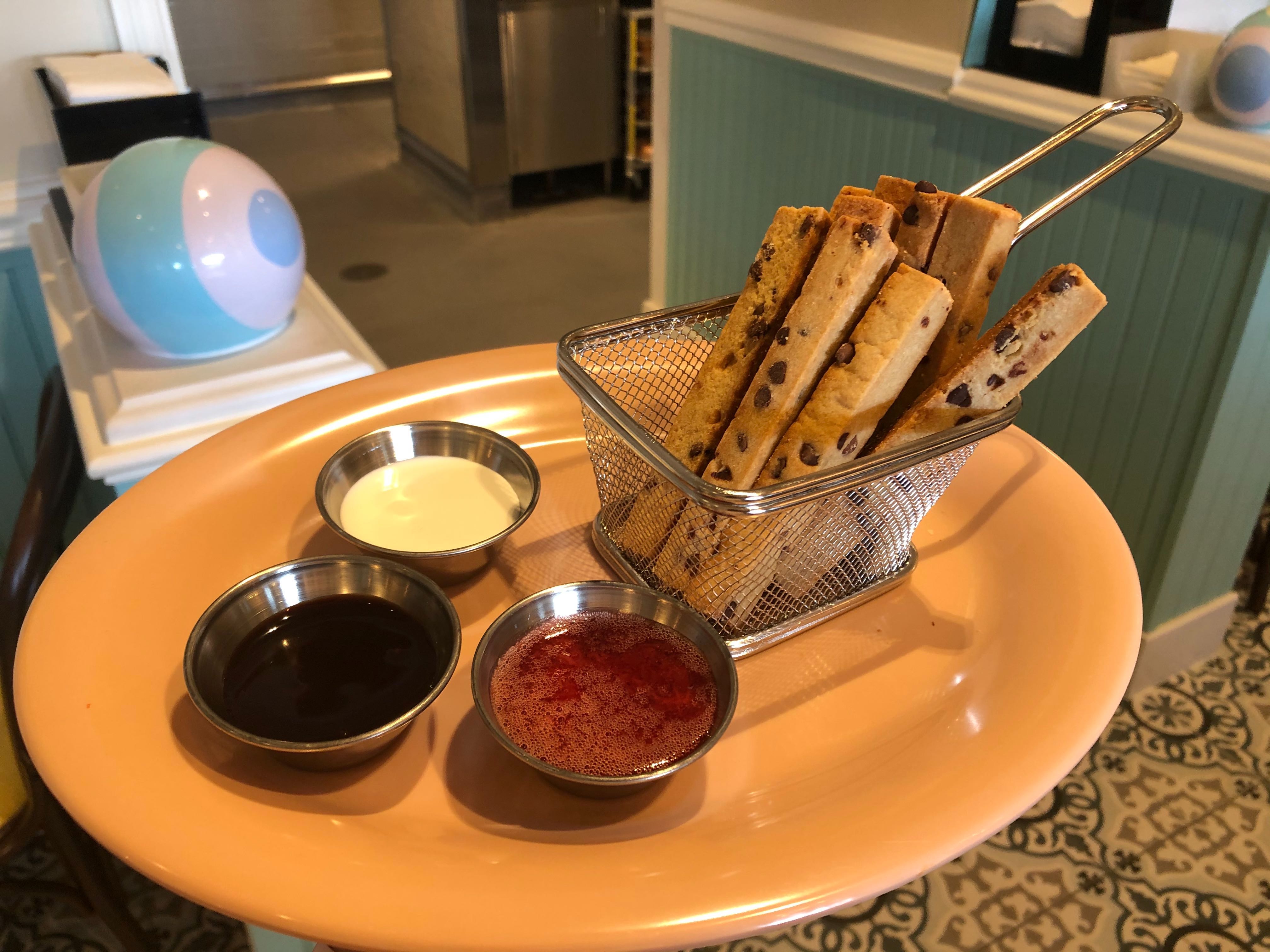 We opted to try some of the newer options, namely the French Dip, Loaded Tots, Cookie Sticks, and Cotton Candy Stormalong Shake. The amazing chef here later came by and offered us the new Beaches & Cream Salad to try, too!