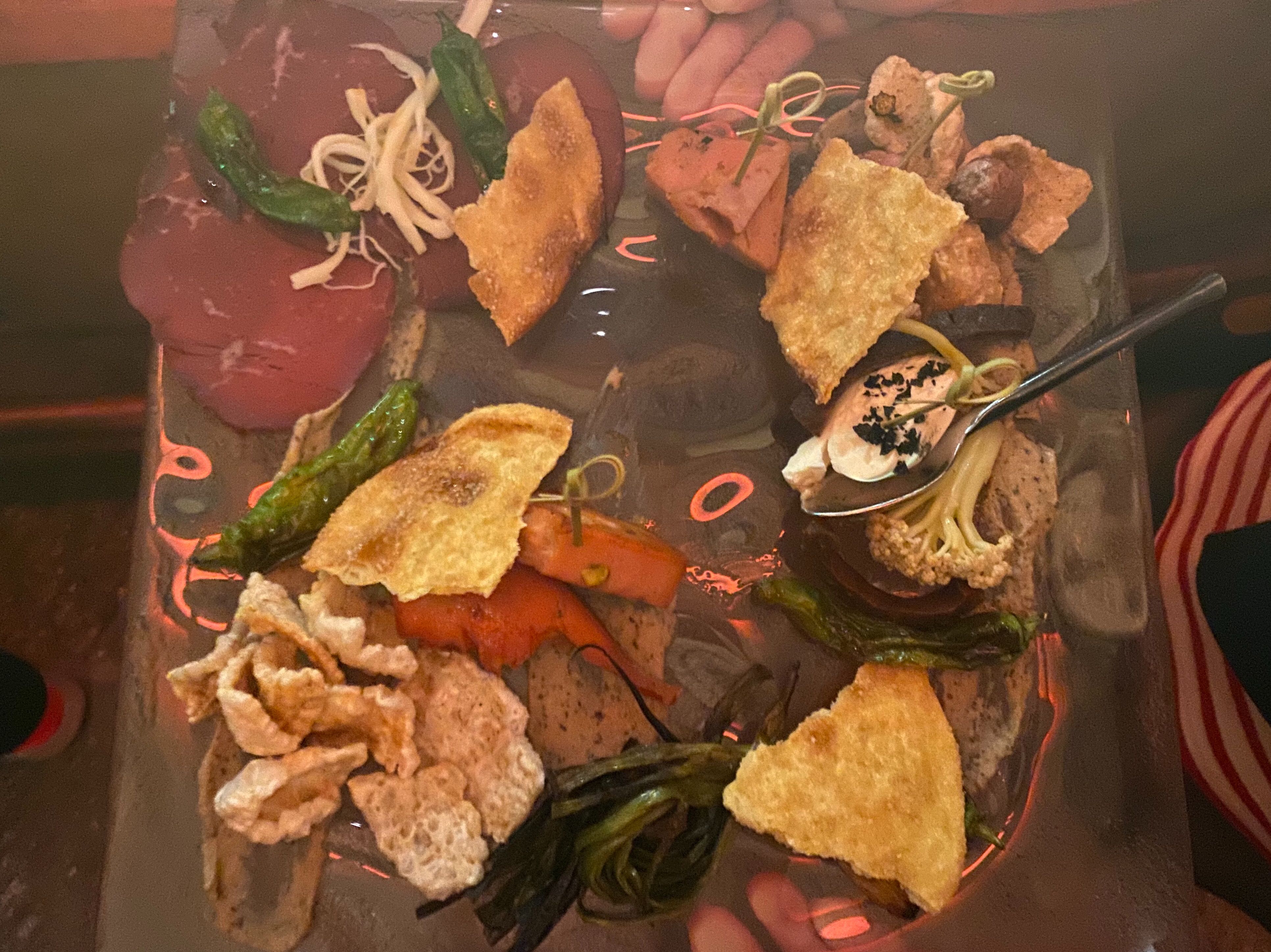 This beautiful assortment of meats, cheeses, and veggies is served on a much different plate now. It’s also spread out more, but there is certainly a wide variety. Mortadella, Spam, and chorizo are surrounded by a unique selection of crispy pork rinds and chips. For cheeses, we’ve got a spoonful or burrata and a chunk of pulled mozzarella. There’s a few veggies mixed in, such as roasted scallions and pickled cauliflower. The scallions were disappointing, but the pickled cauliflower was delicious.