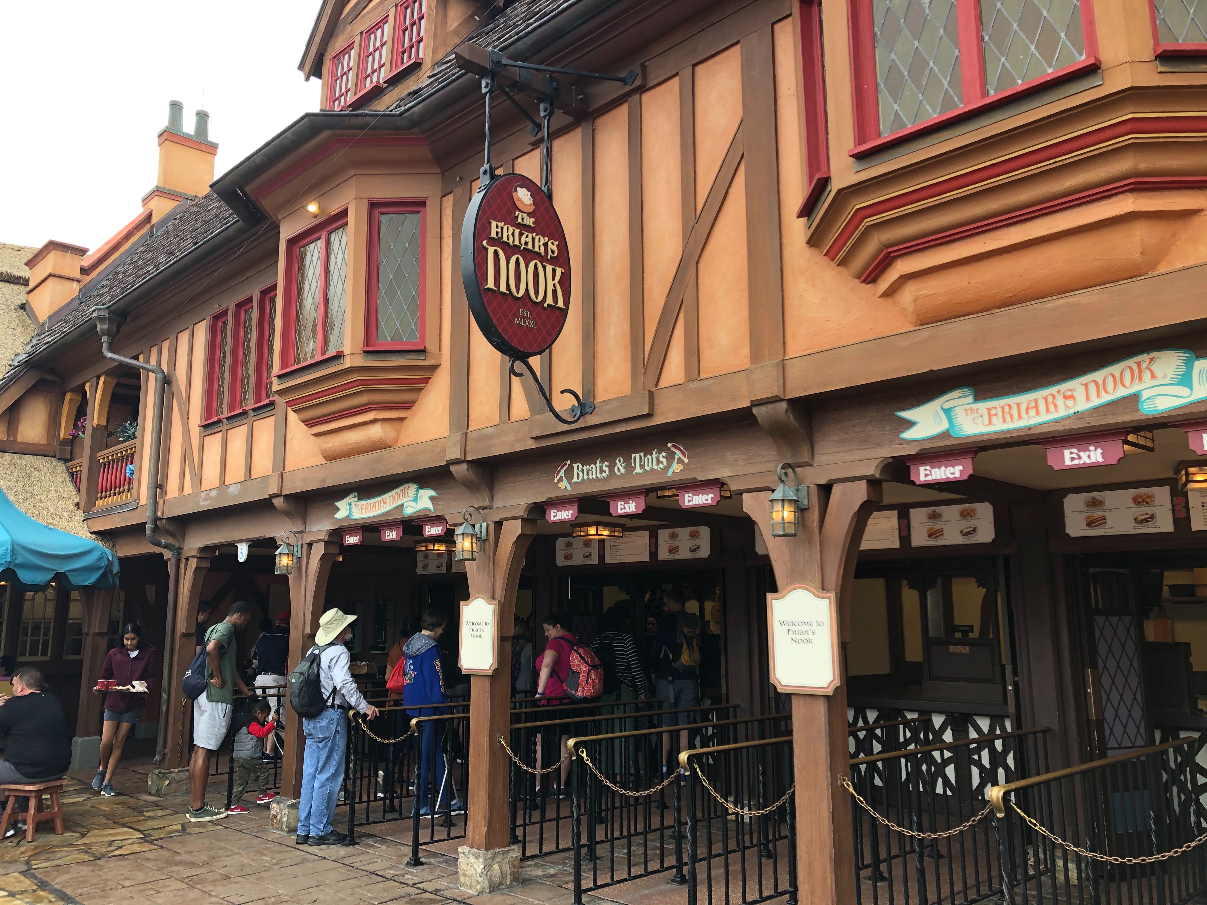 Breakfast is available starting 30 minutes from park open. With a 7:00 AM open today, the Friar’s Nook was open and ready for business at 7:30 AM. You’ll notice below that there are doughnuts on the menu… these are apparently made in-house as they were still waiting for them to rise! Breakfast––and only breakfast––is available until 11:00 AM.