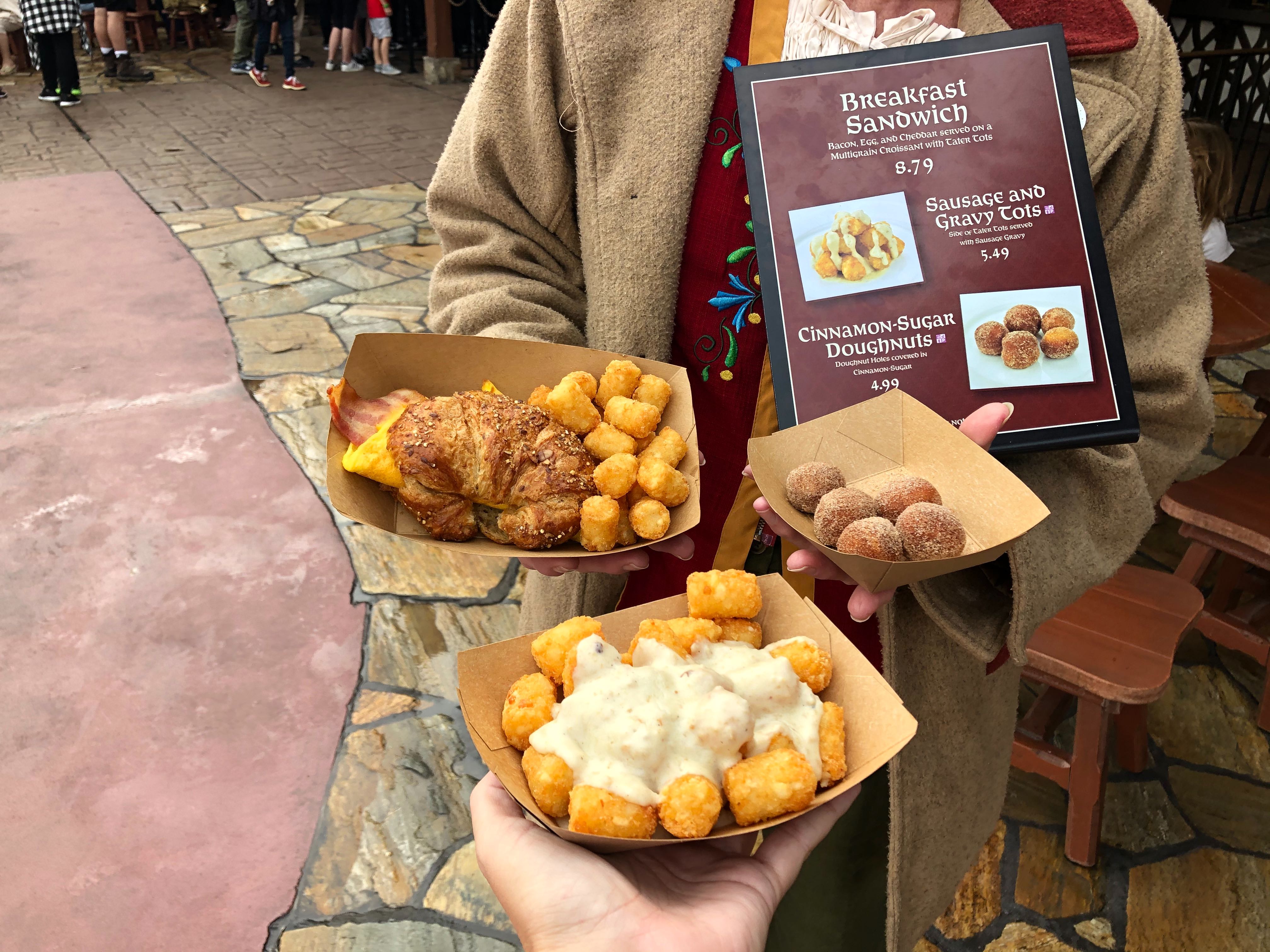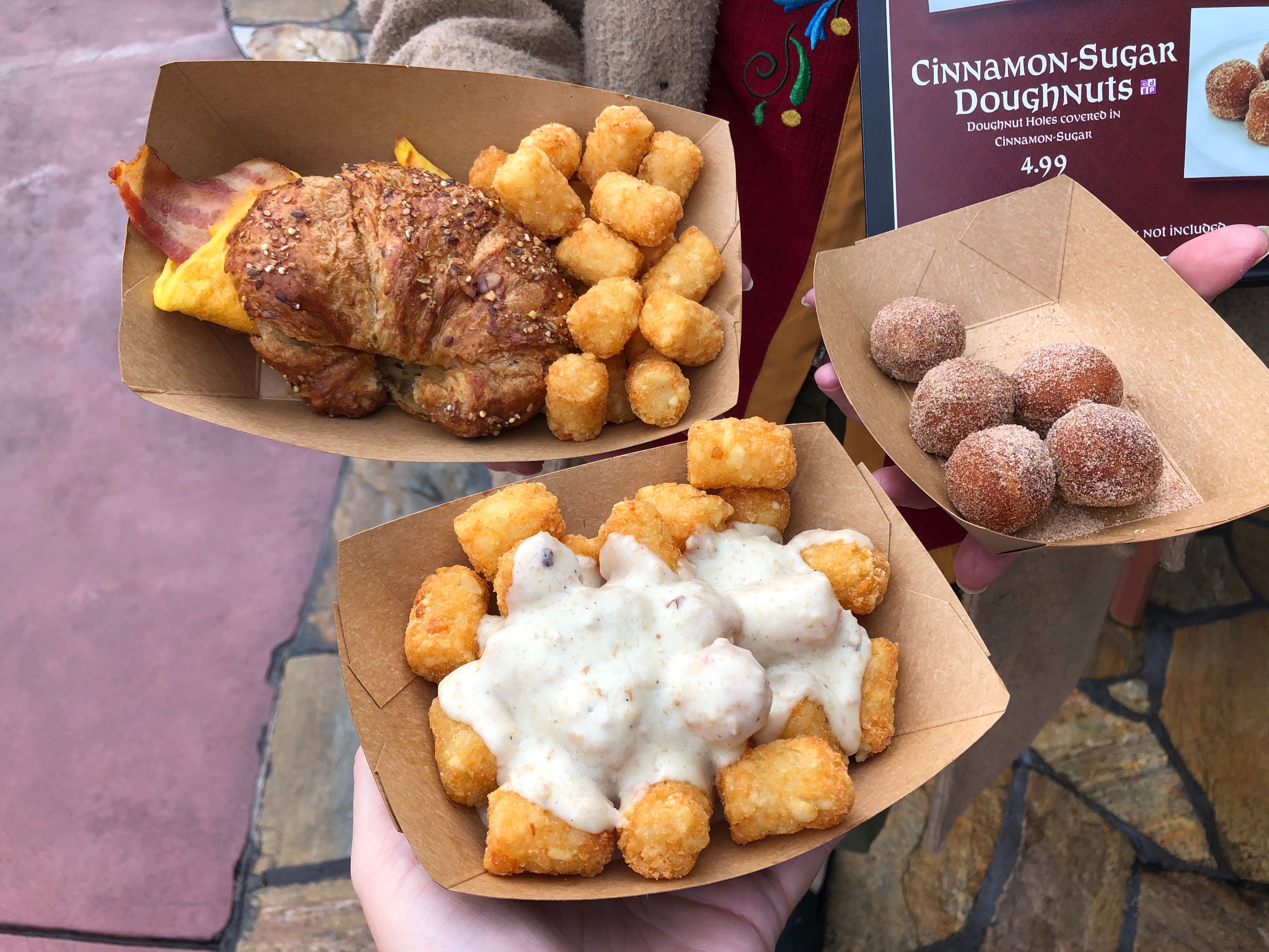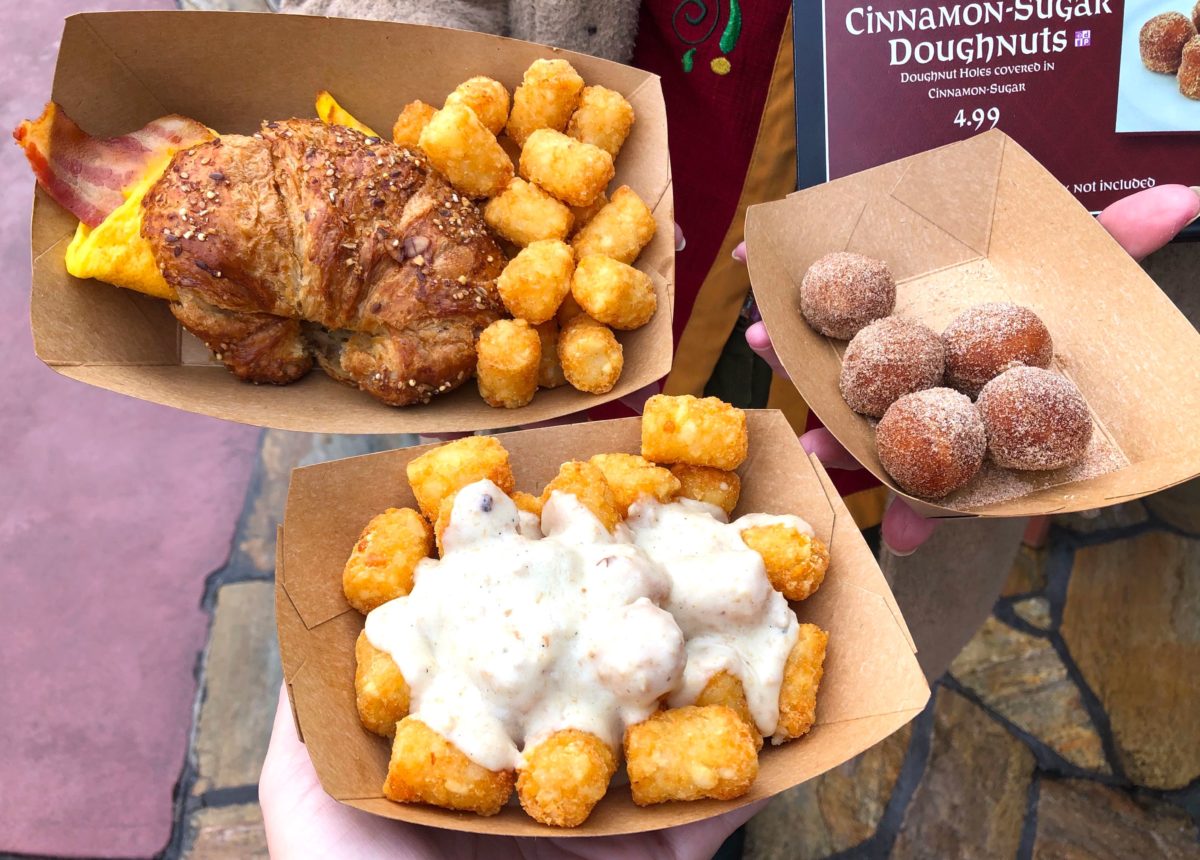 REVIEW: New Limited Time Breakfast Offerings (Sausage Gravy Tots, Cinnamon-Sugar Donut Holes, and Croissant Sandwich) at The Friar’s Nook in Magic Kingdom
