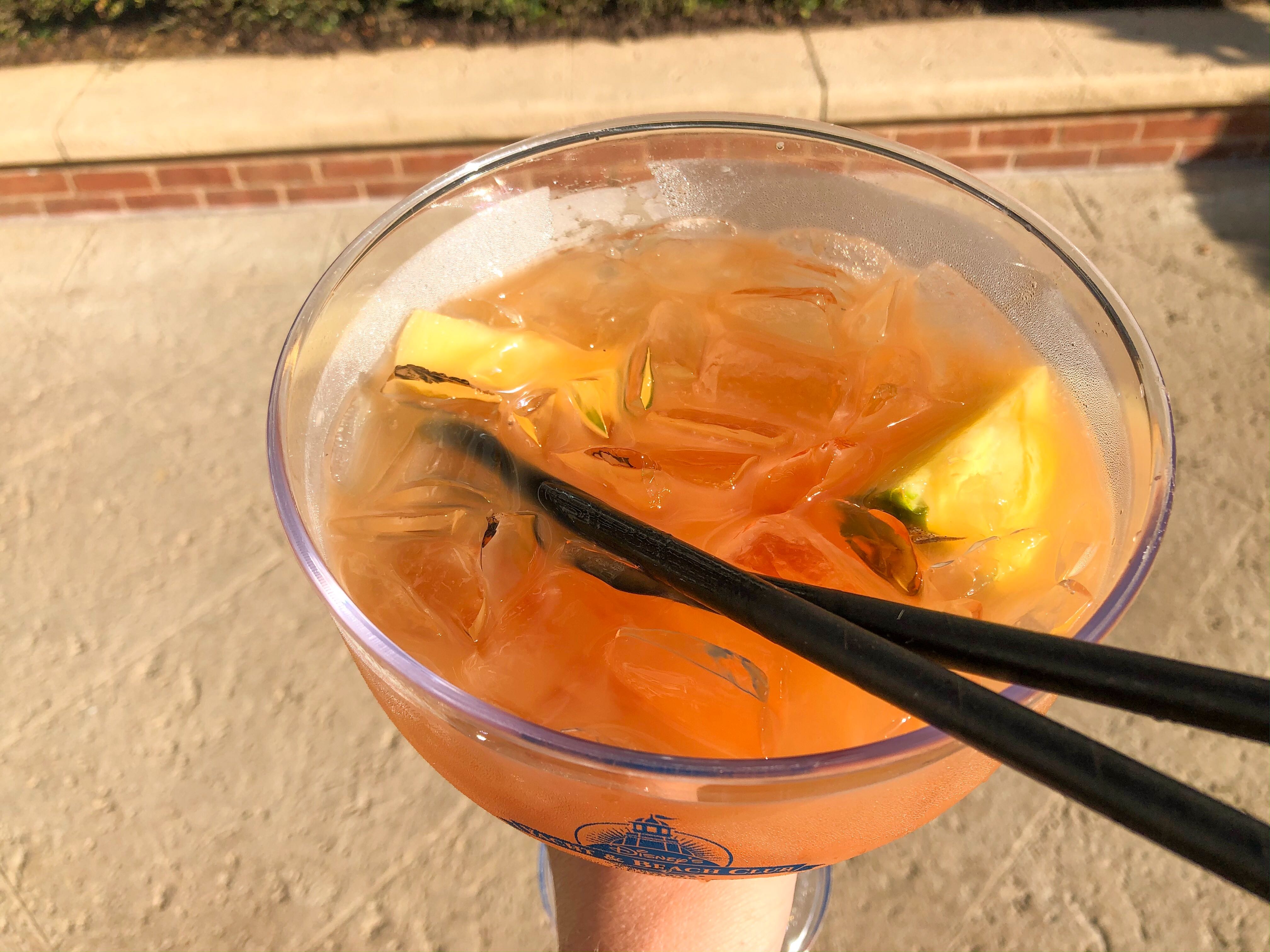 The drink is excellent, and we got quite a few compliments and inquiries as to where to obtain such a beautiful drink. The tropical flavors from the pineapple and orange juices were the main thing we tasted, but we felt a buzz pretty quickly thanks to the rum floater. It goes down easily, so remember to pace yourselves!