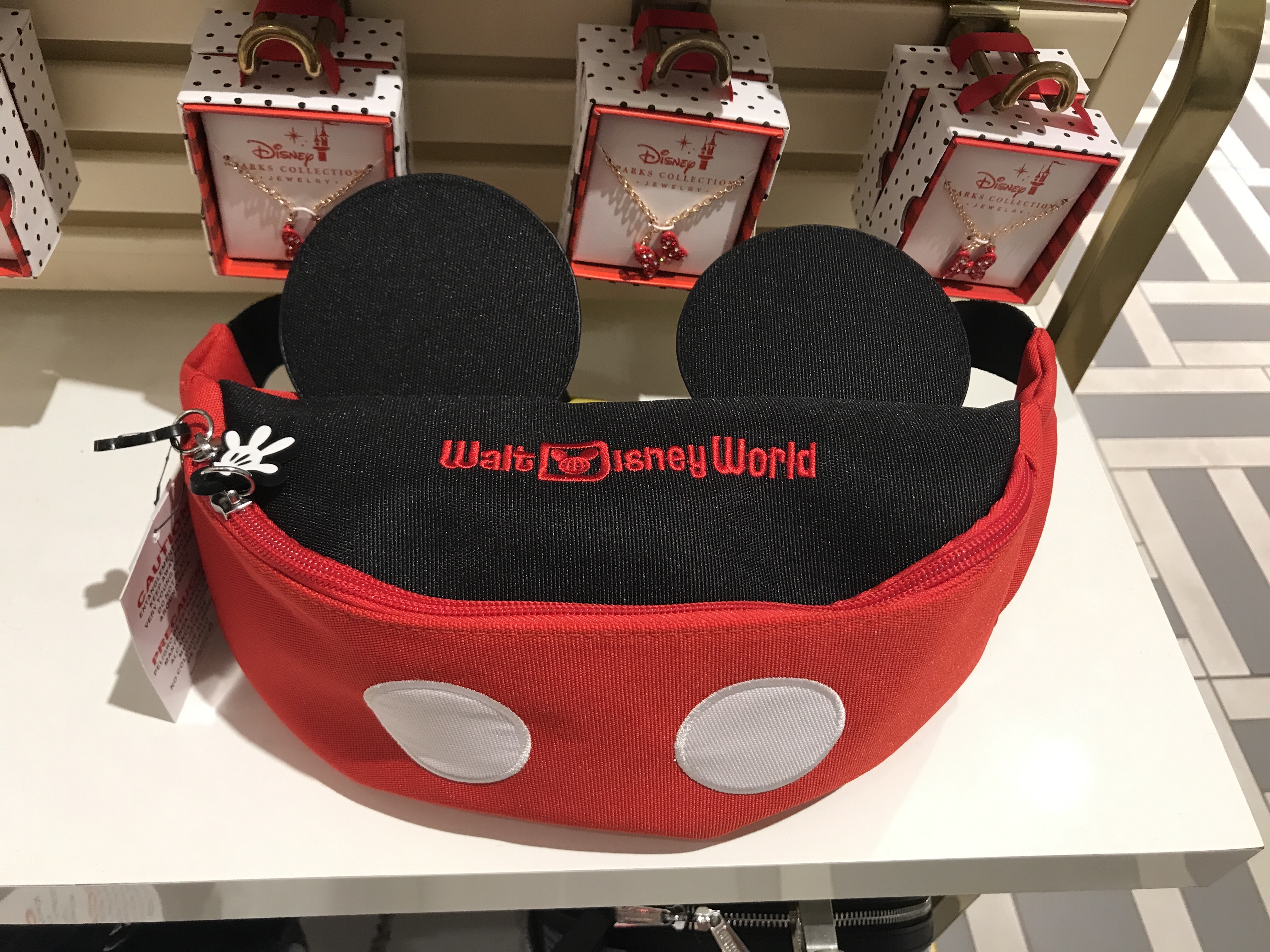 Mickey fanny packs were all over the park. The fanny pack is red and black, inspired by Mickey and his classic outfit. The red section of the bag has two white circles just like the buttons on Mickey’s signature pants.