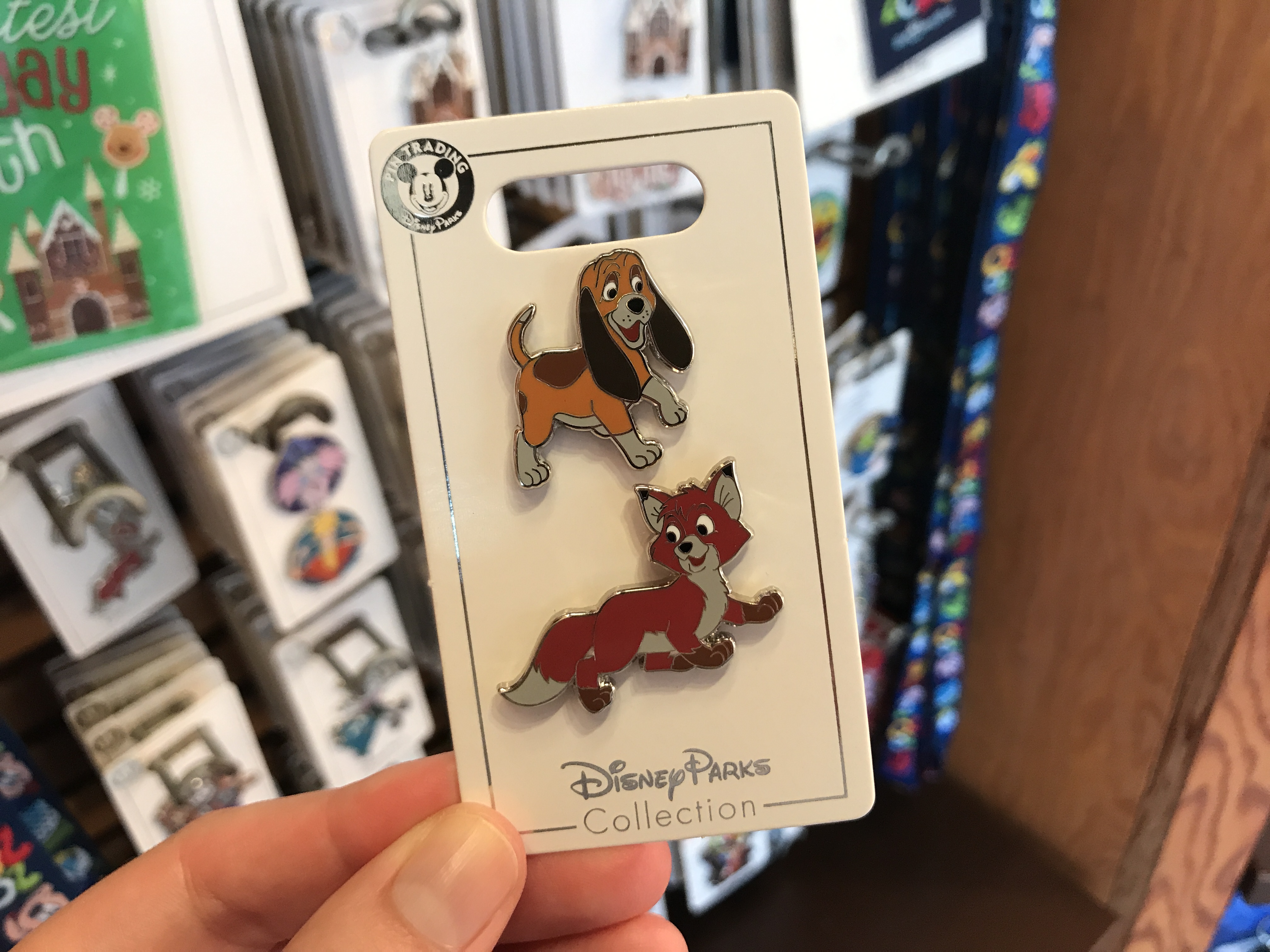 We also found a “The Fox and the Hound” pin set. It has two pins, one of Copper and the other of Tod. Both characters are in playful poses. It’s $15.99.