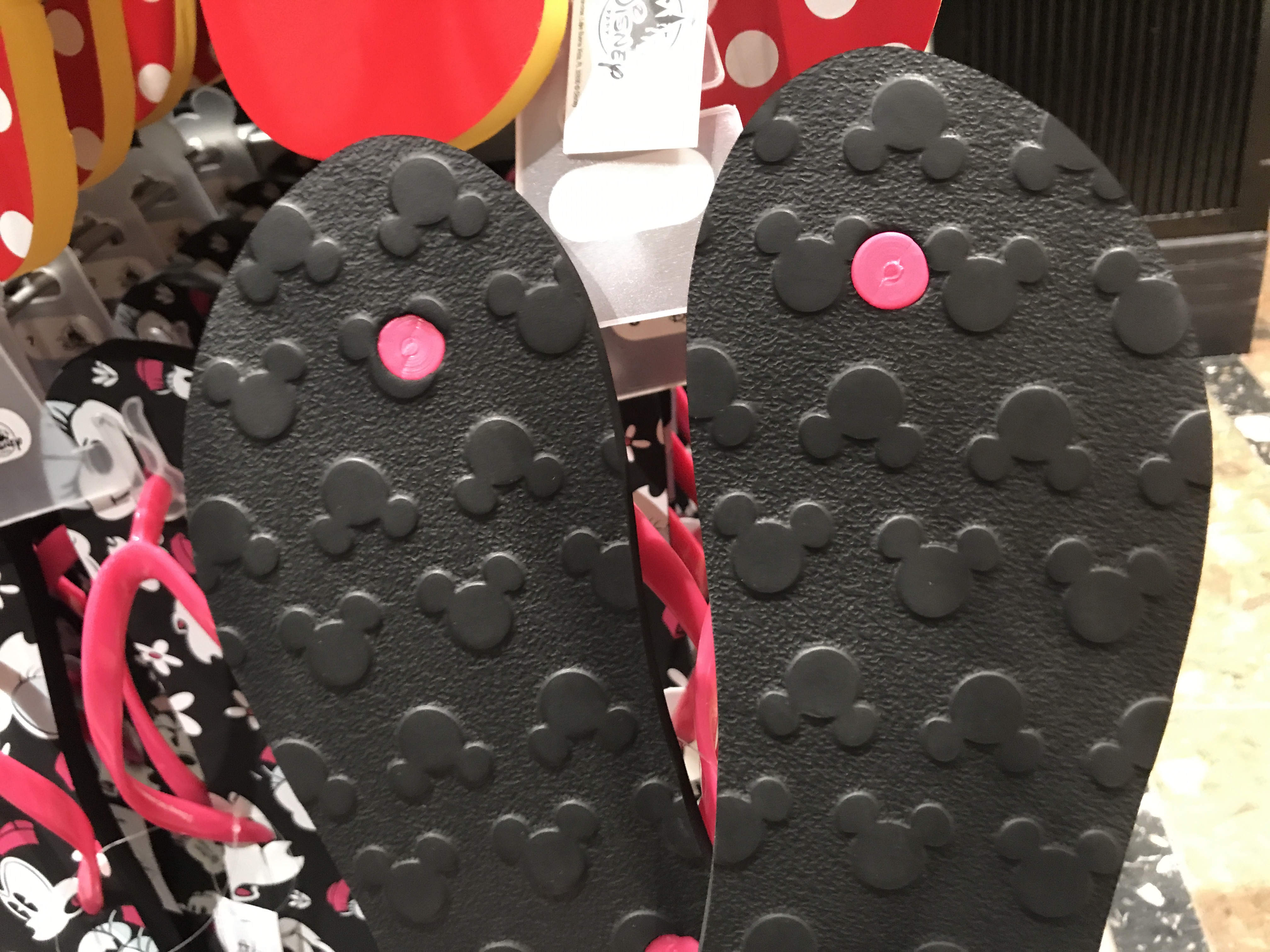 The soles of these sandals also have the Mickey patterns. Both pairs of flip-flops cost $14.99 each.