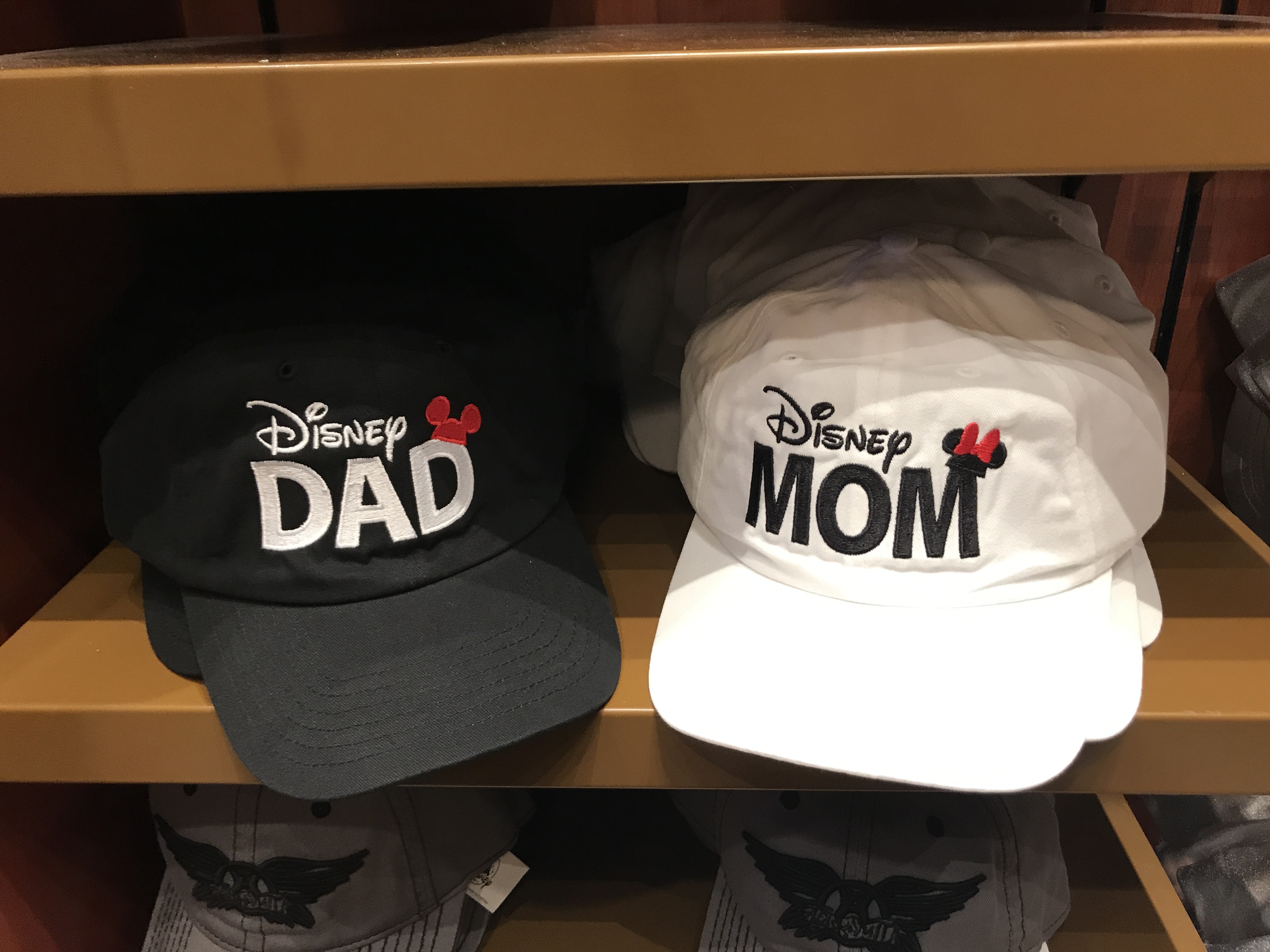 We also found these Disney Dad and Disney Mom hats. Word to the wise: for $27.99, they’re a waste of your money. The quality of these hats is awful… we’re shocked they’re being sold in park and not some third-party outlet store. It reminded us of the free promotional hats businesses give away.