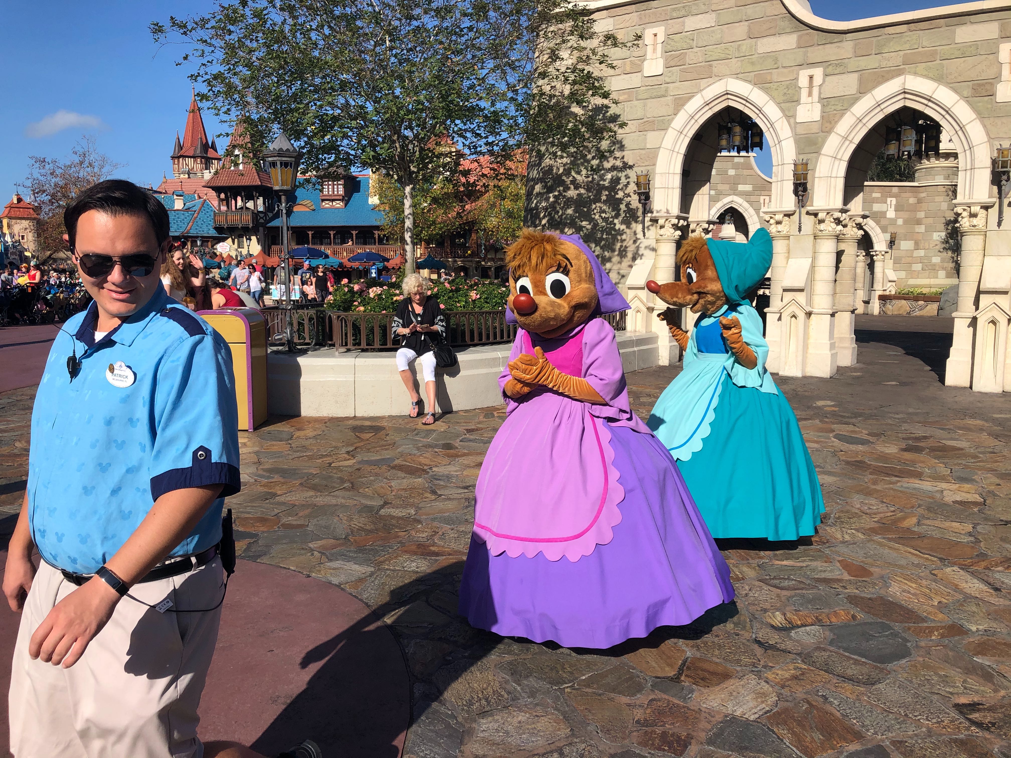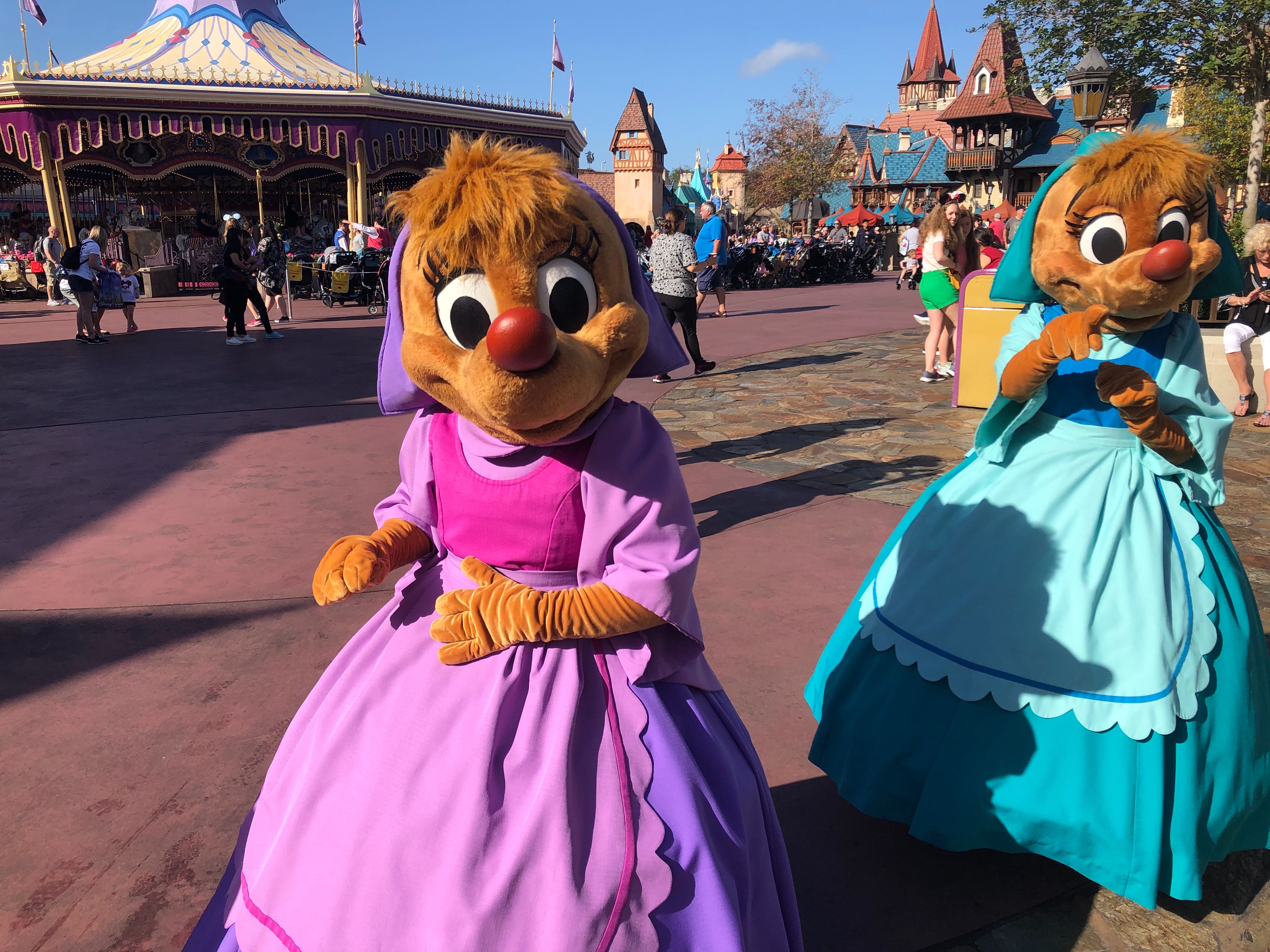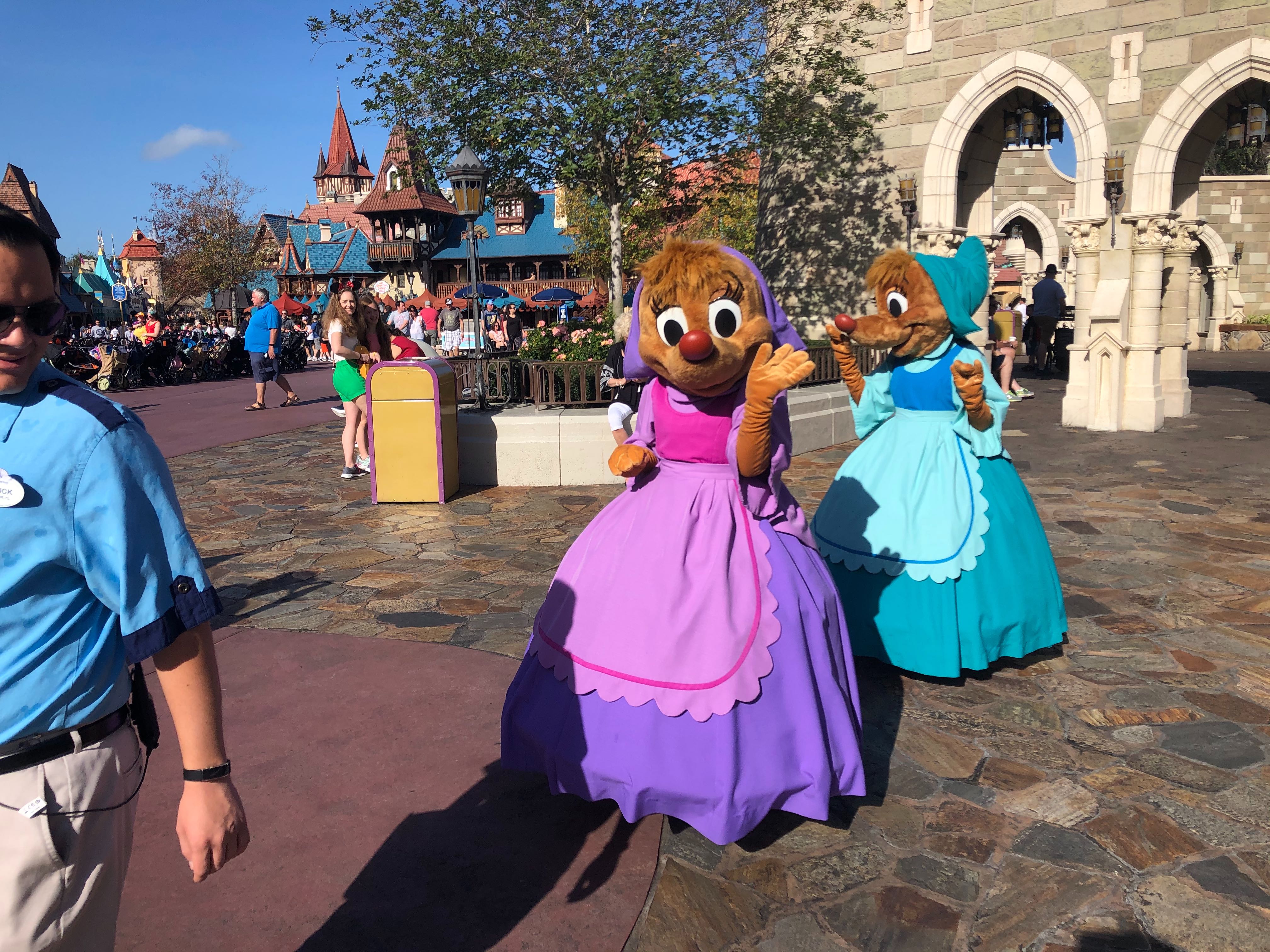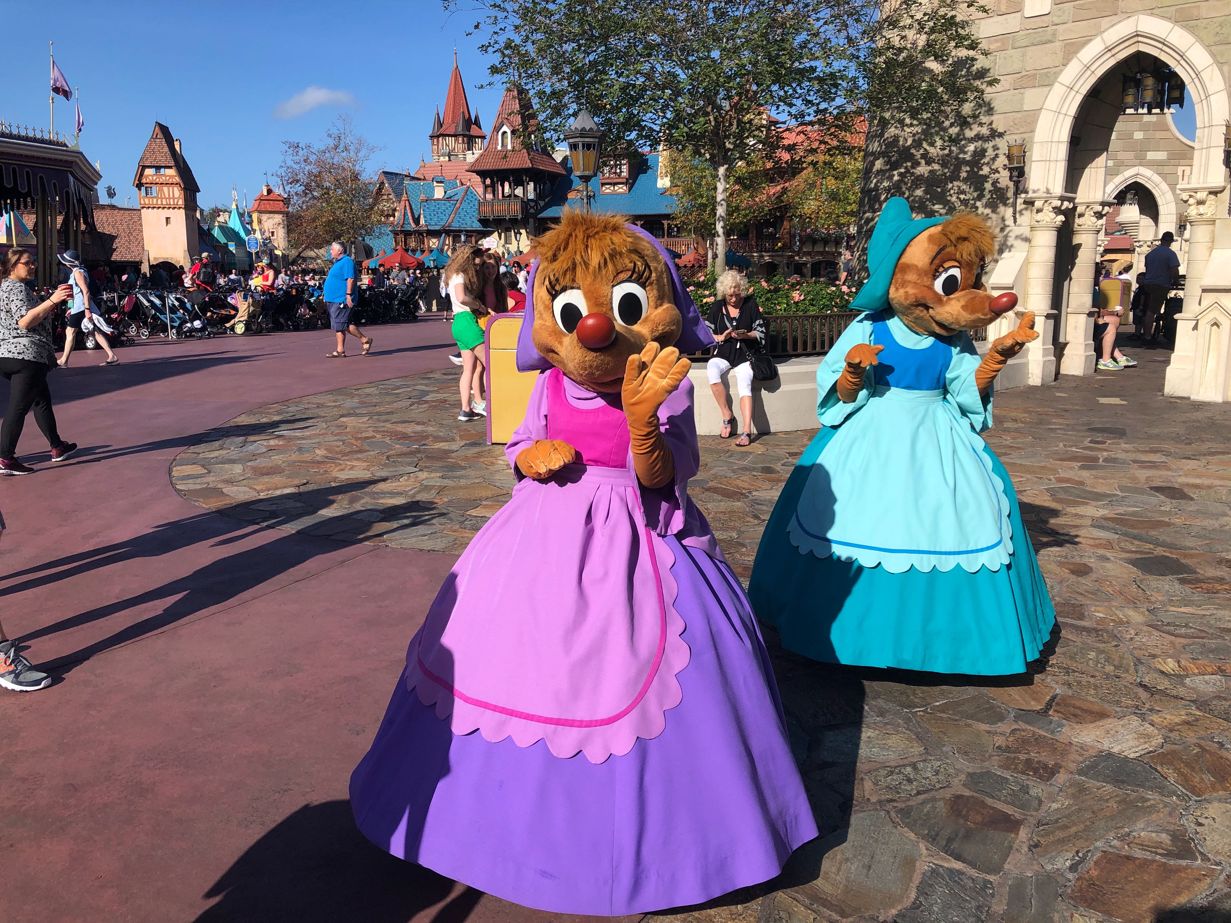 Over in Fantasyland, we spotted Suzy and Perla, the mice from Cinderella, meeting guests. They were meeting guests near Pinocchio Village Haus, in the location you can normally find Cinderella’s stepsisters and the Fairy Godmother.
