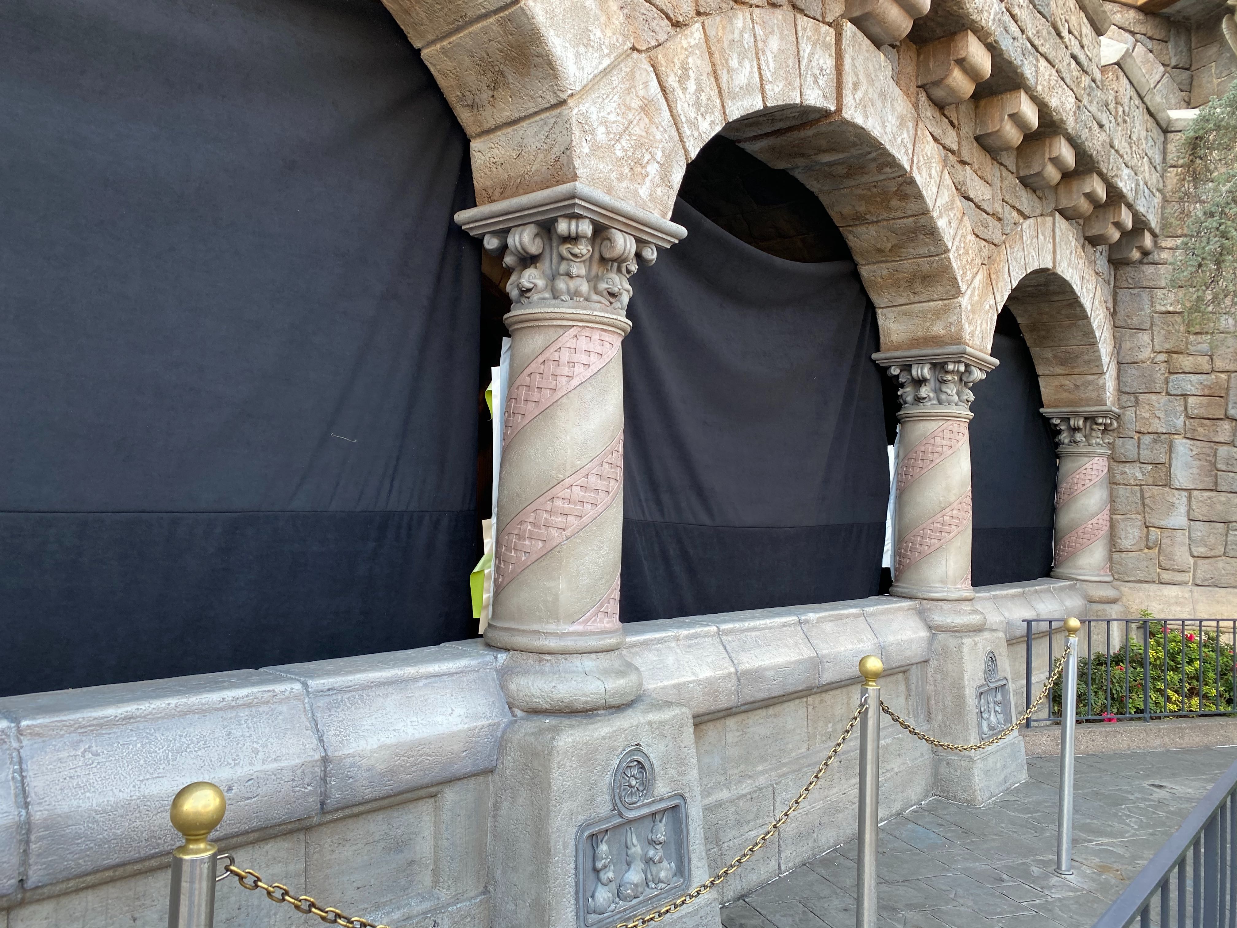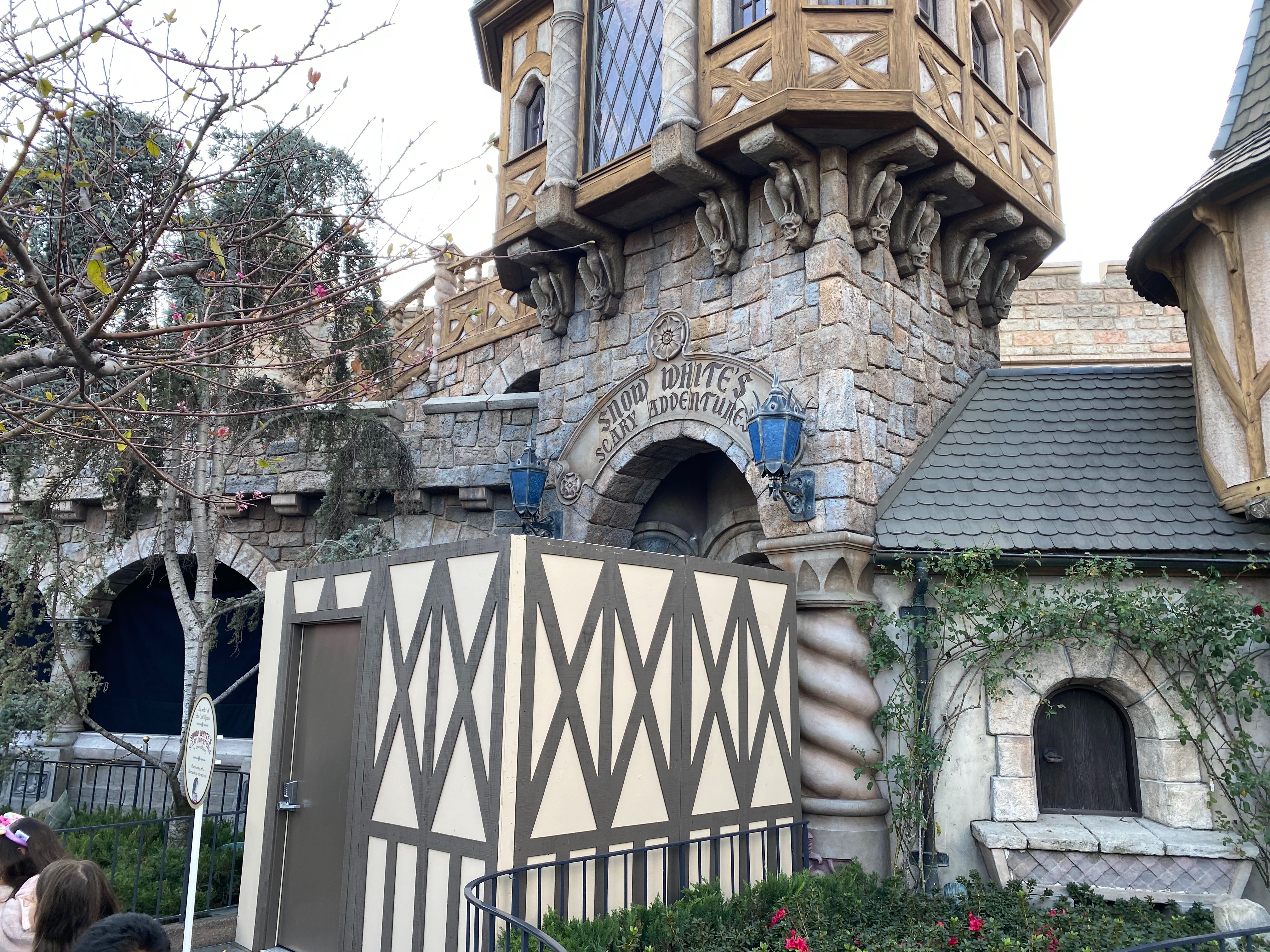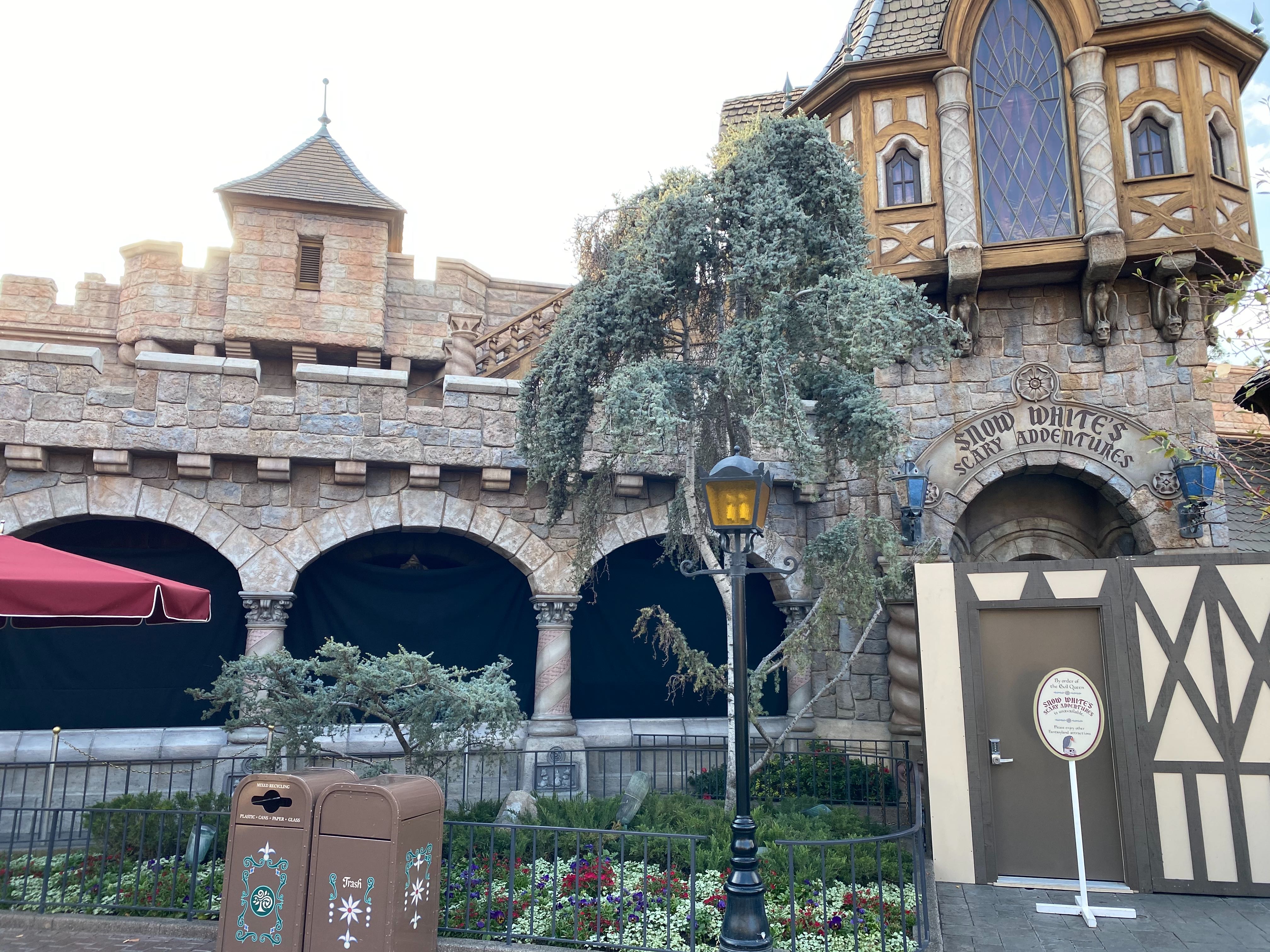 The queue is currently covered by tarps. When it reopens later this year, the ride will feature a new finale where Snow White wakes up thanks to true love’s kiss, and is reunited with her animal friends.