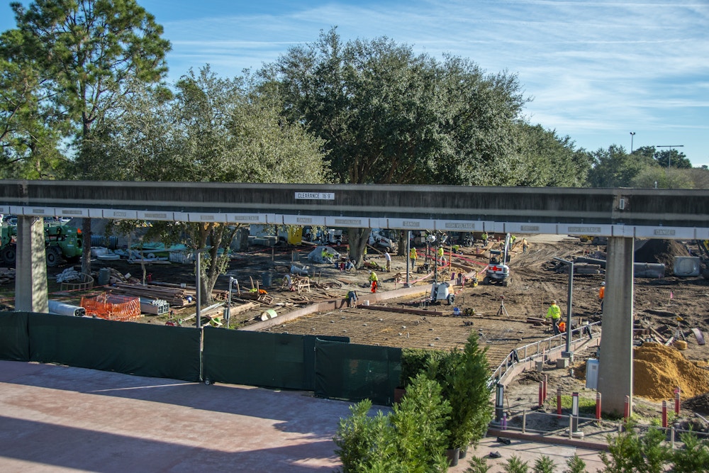 Work on the overhaul of EPCOT’s entrance continued this week, with phases of the project becoming more visible.