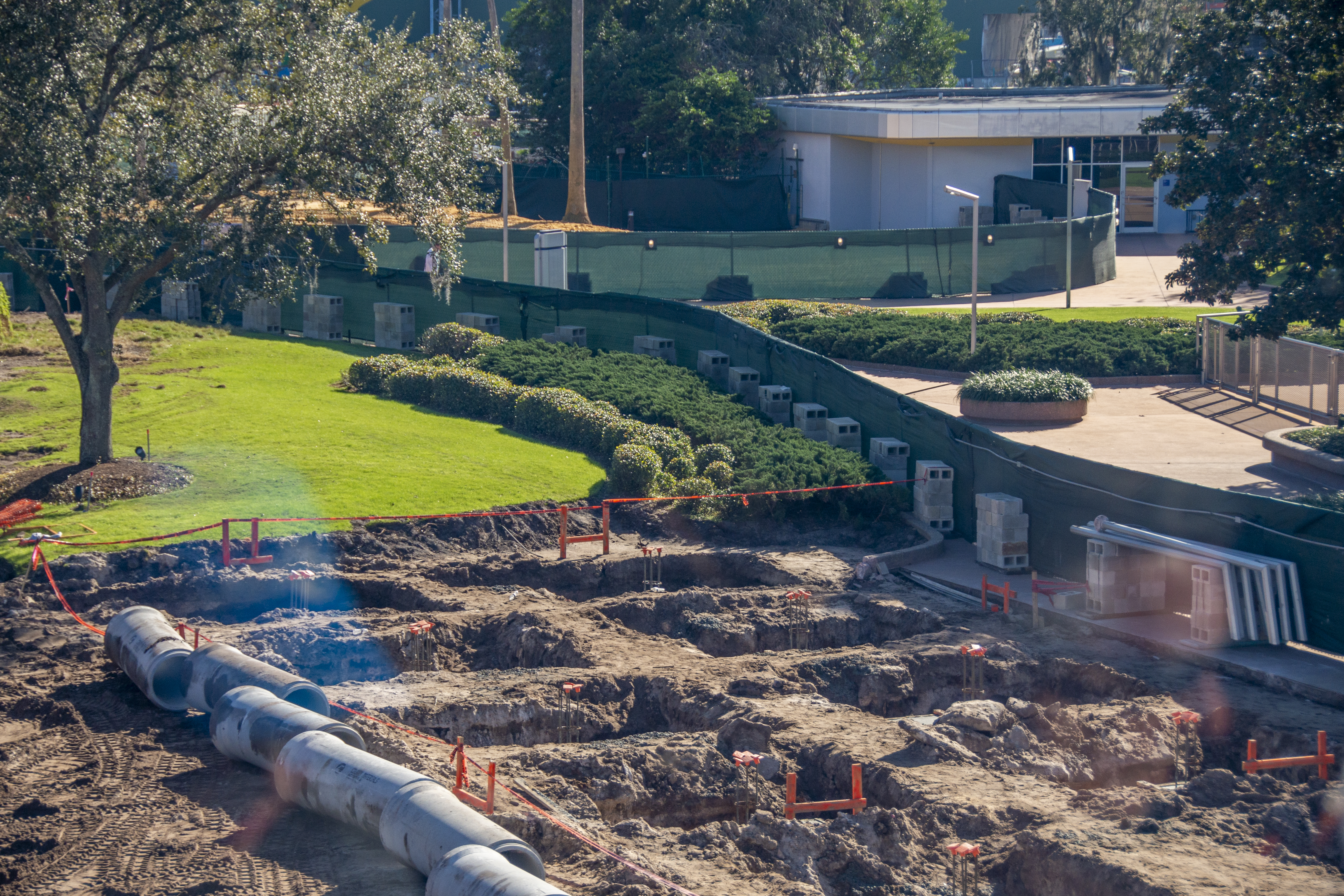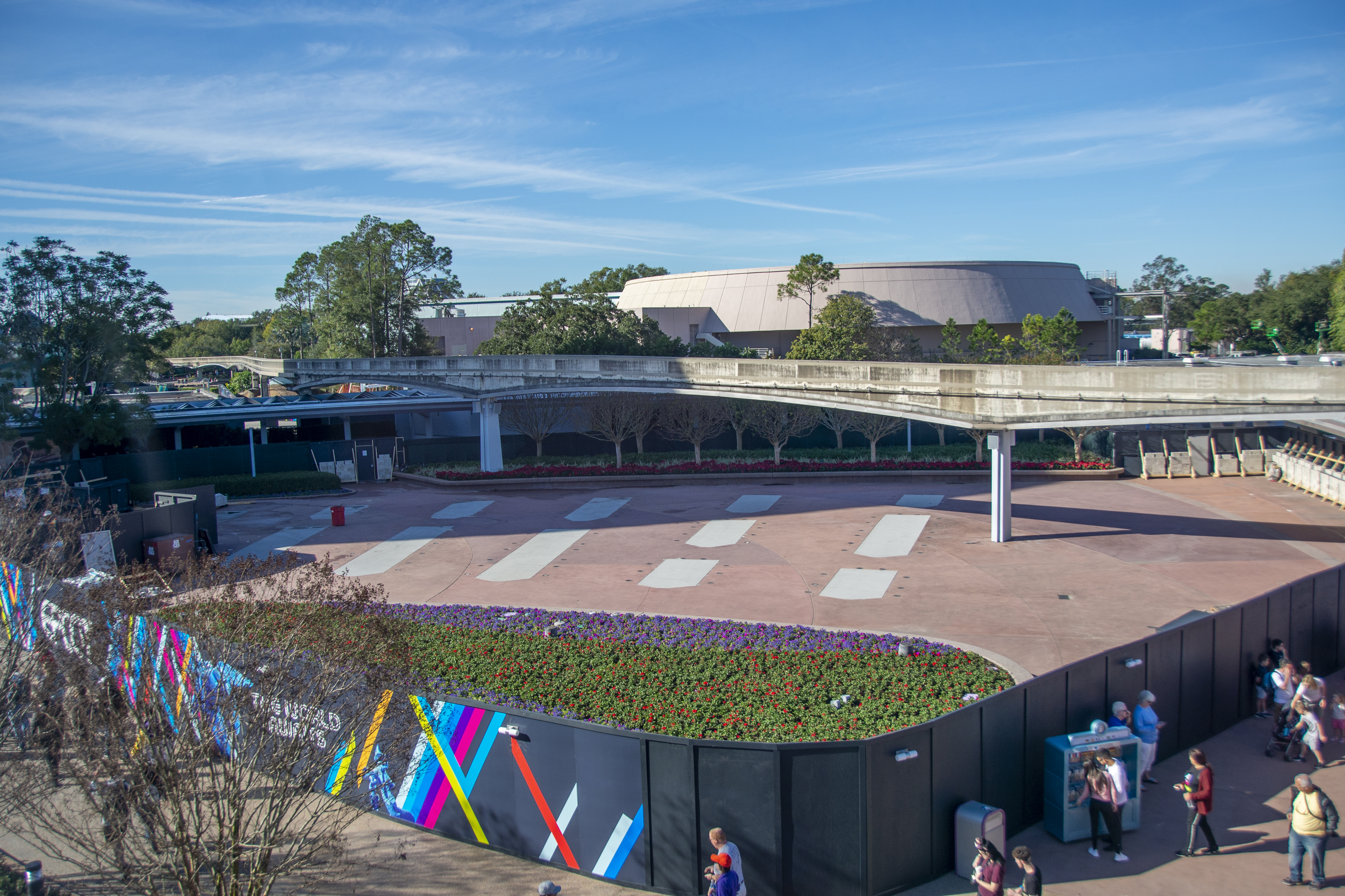 Work on the overhaul of EPCOT’s entrance continued this week, with phases of the project becoming more visible.