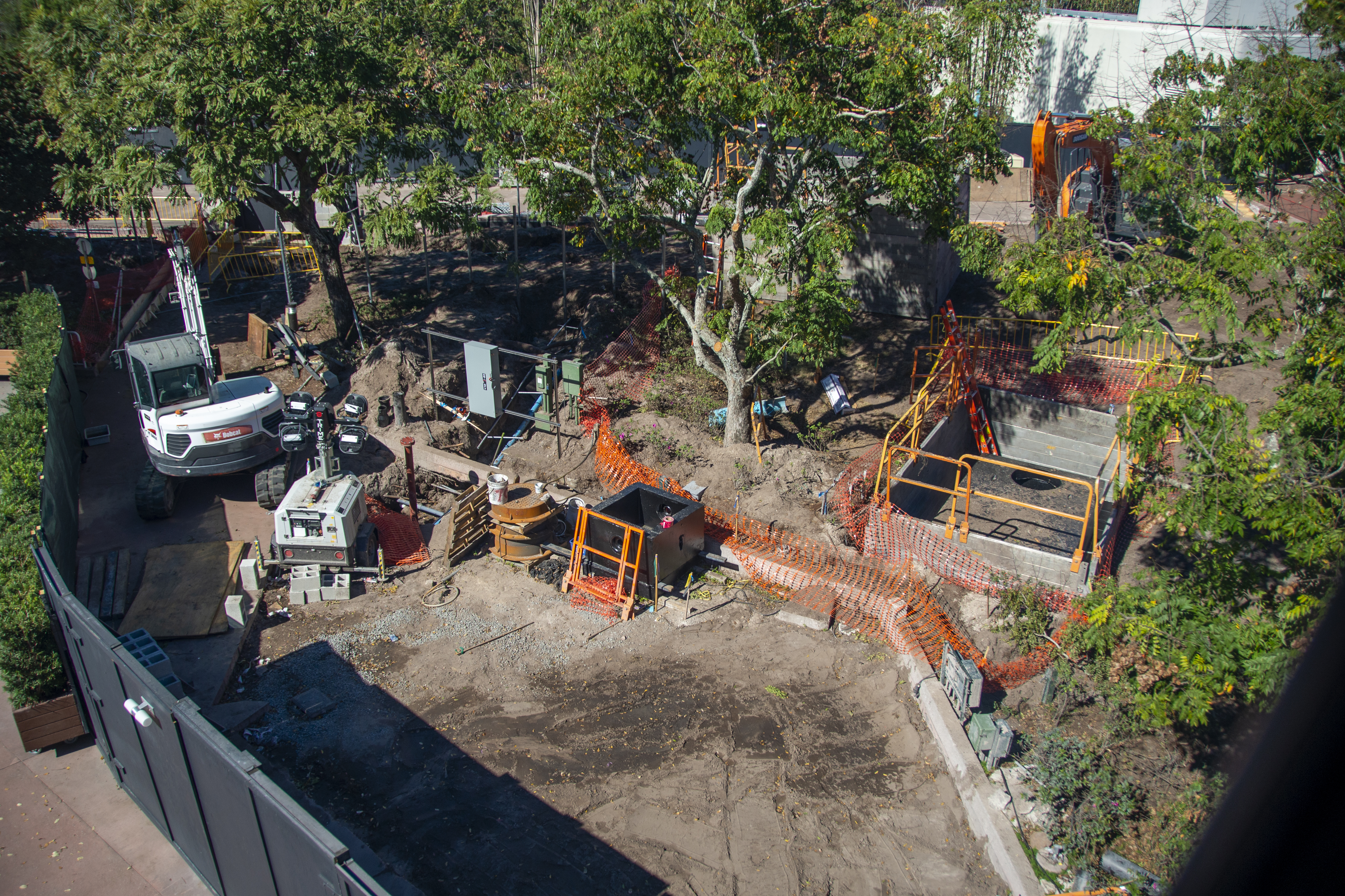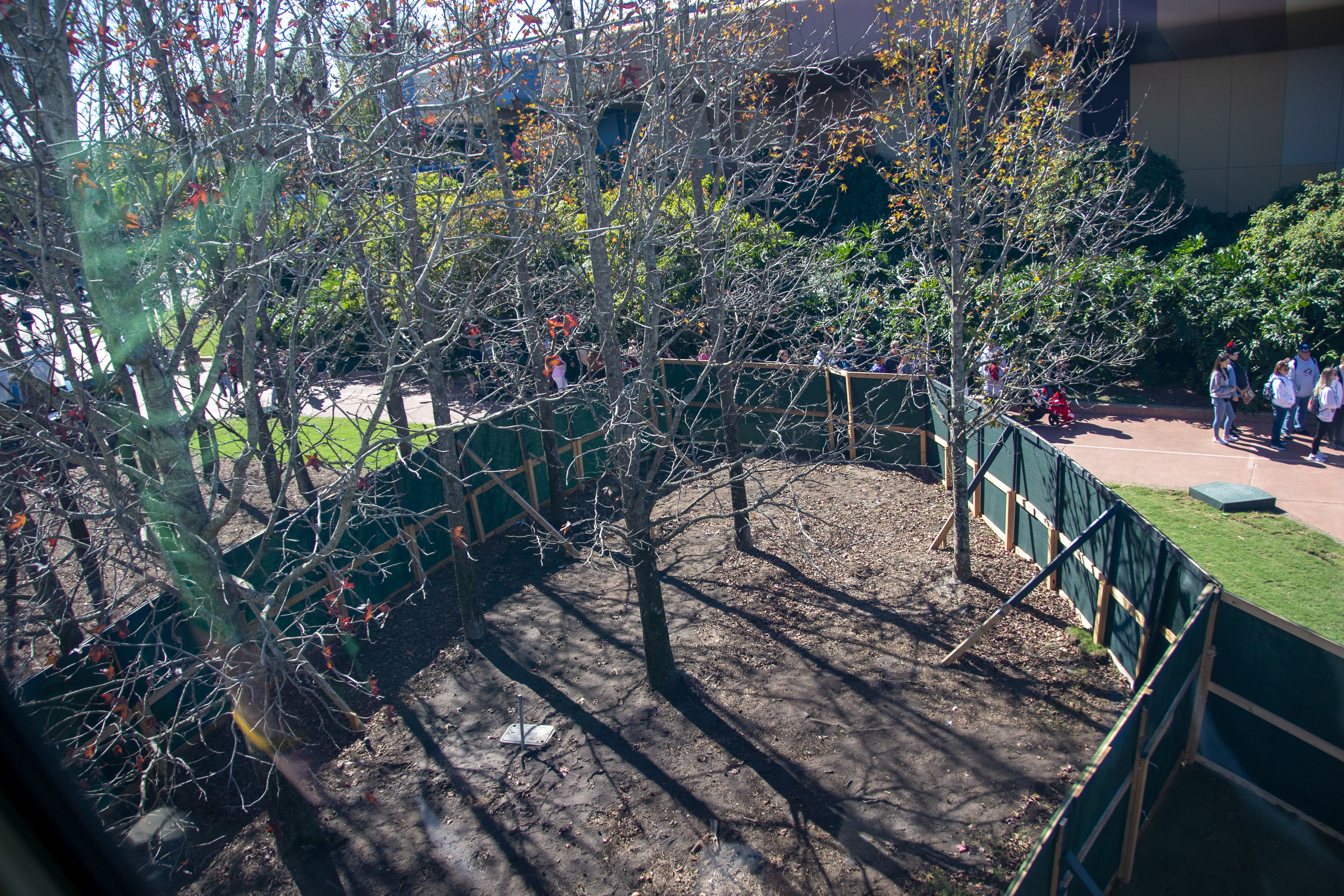 Behind the Innoventions East building that is temporarily home to MouseGear, work on the landscaping around these trees continues.